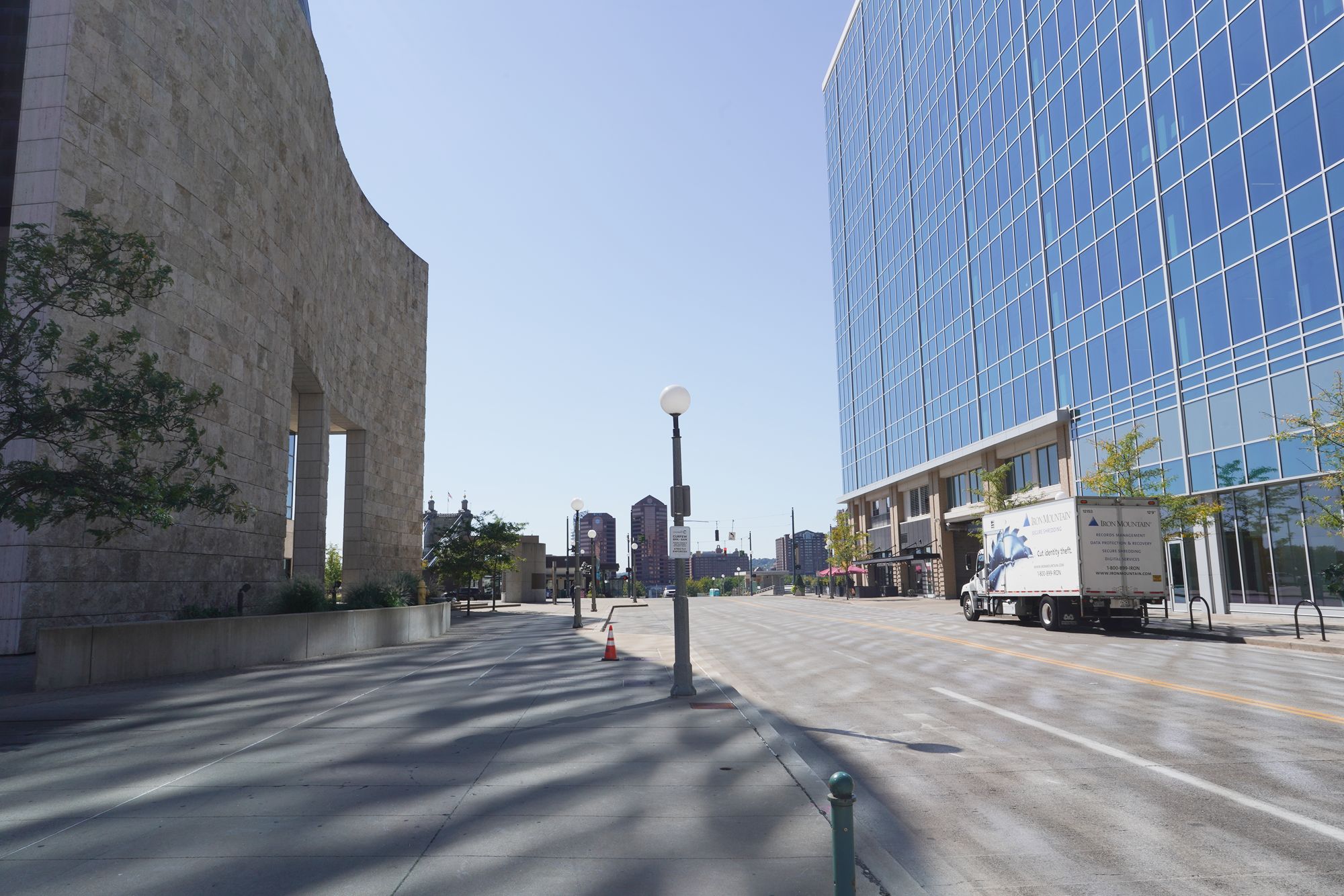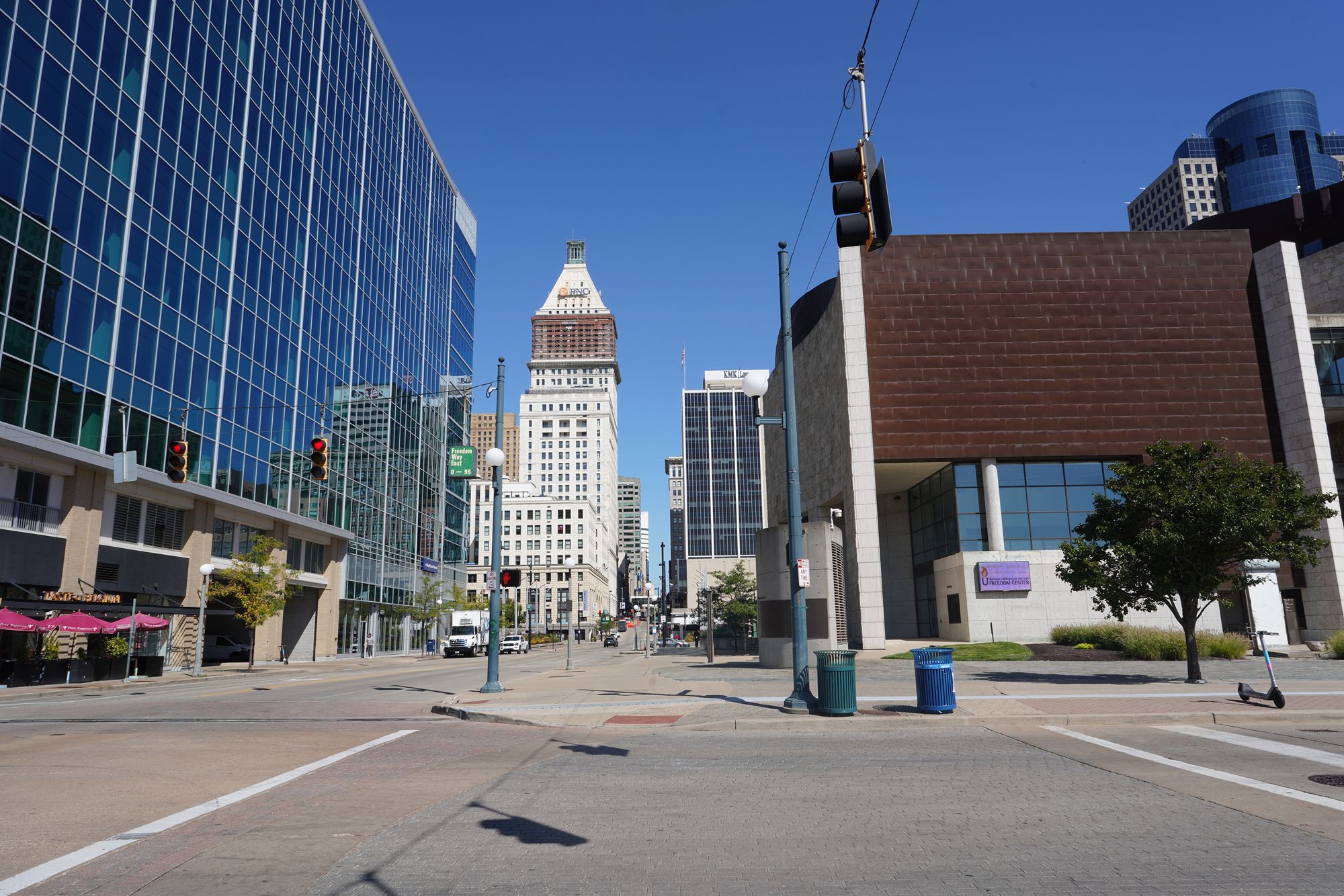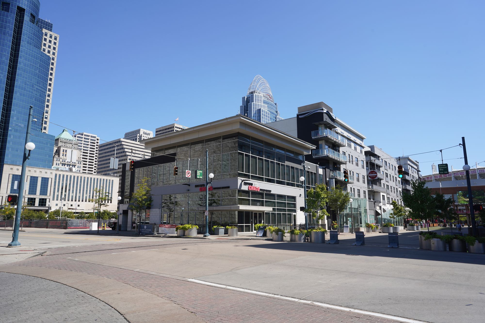 The left brown building is the National Underground Railroad Freedom Center