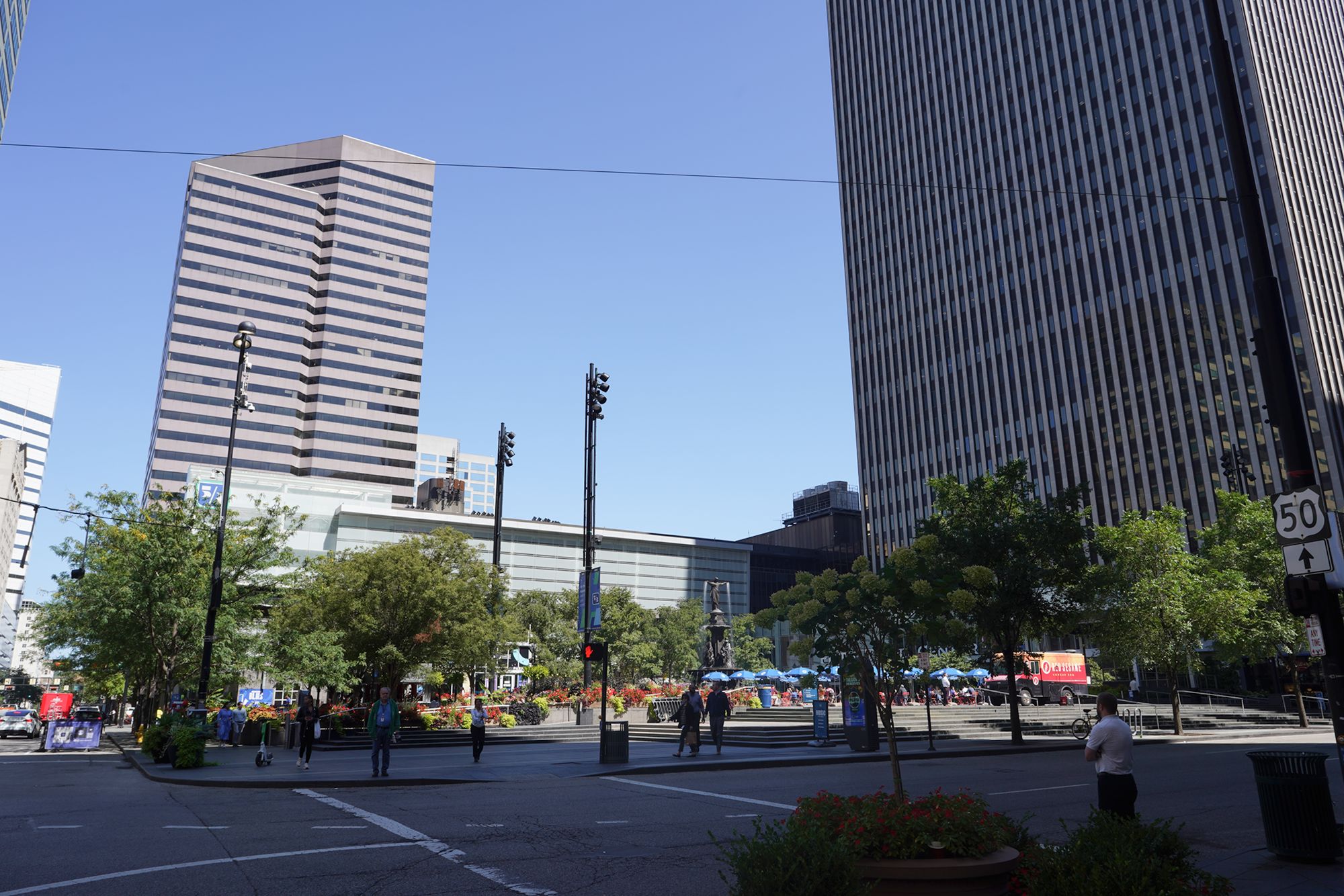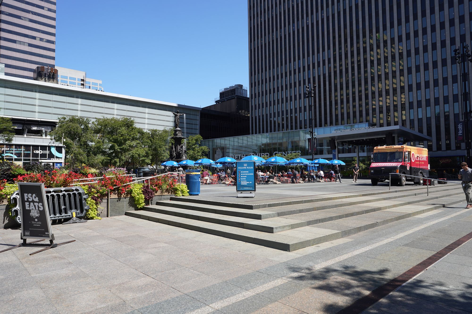 Centered around the historic Tyler Davidson Fountain, it serves as a gathering place for concerts, festivals, dining, and public events, linking nearby offices, shops, and cultural attractions in a lively urban plaza.