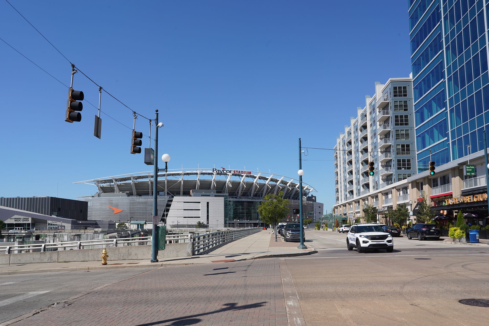 Paycor Stadium. The NFL’s Cincinnati Bengals play at this traditional open-air stadium that seats more than 65,000.