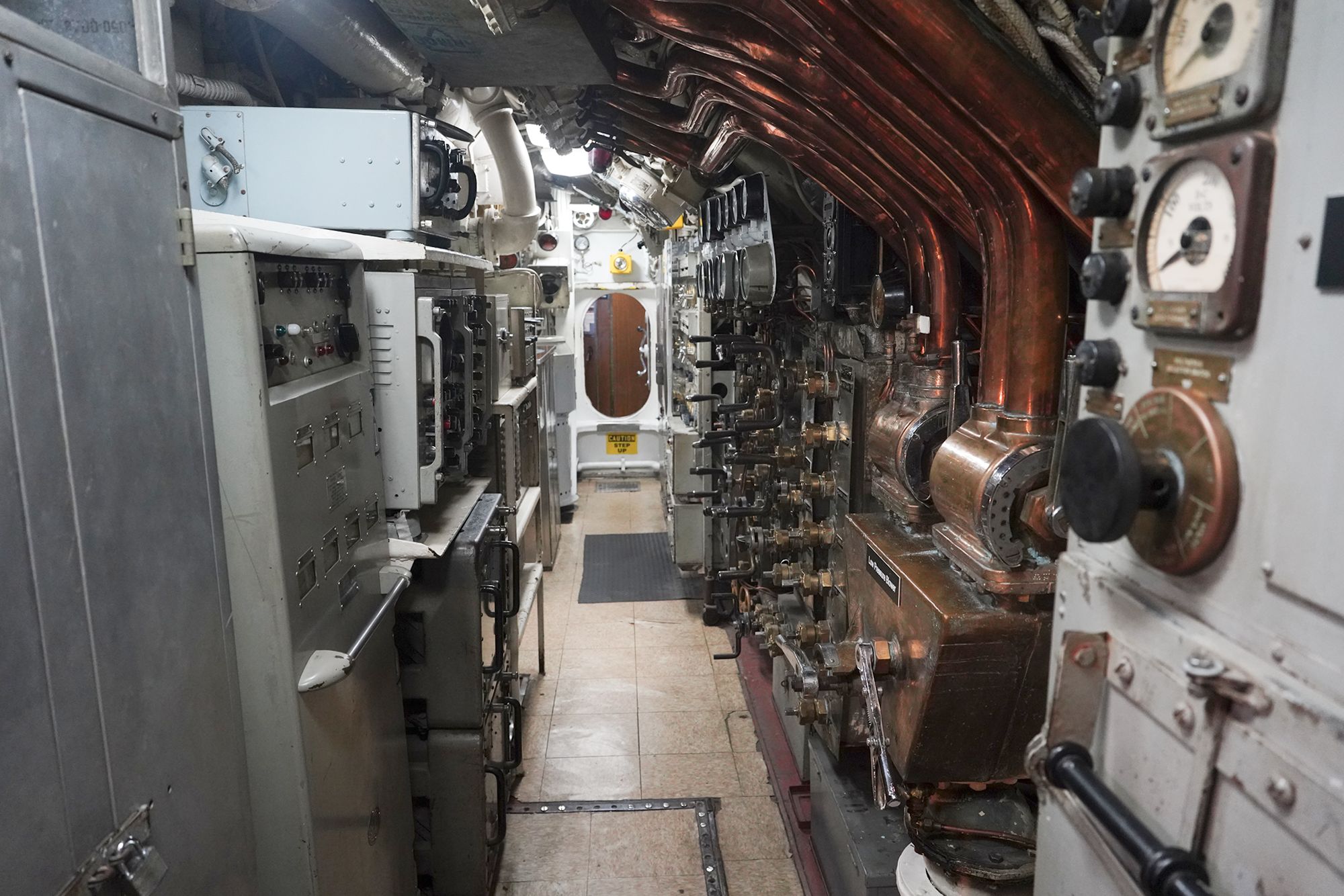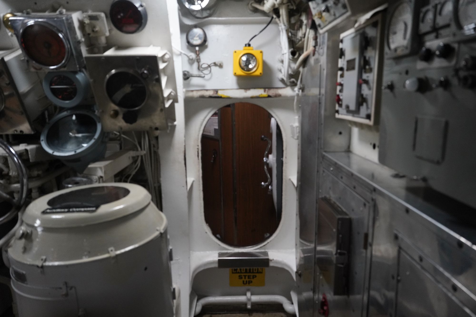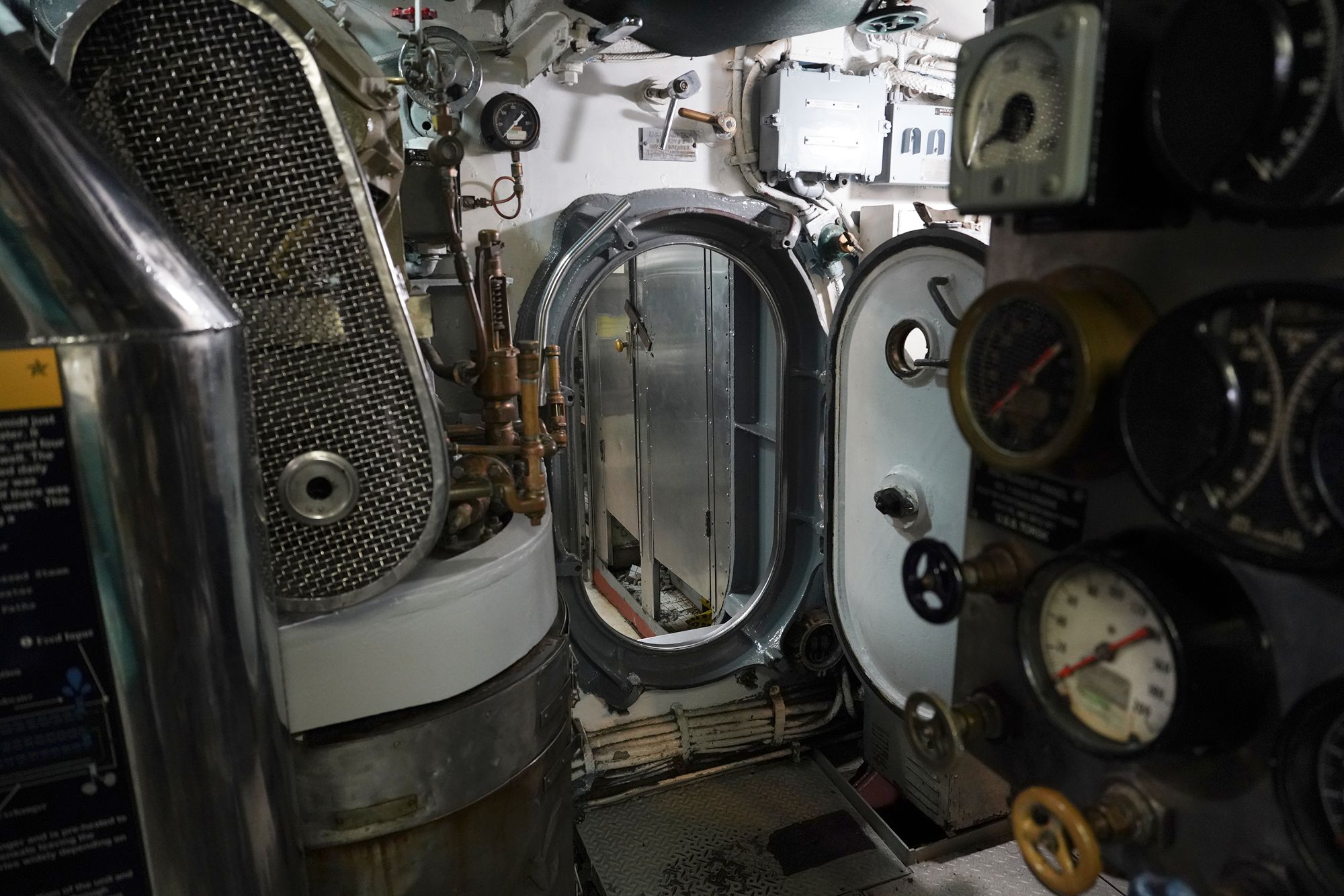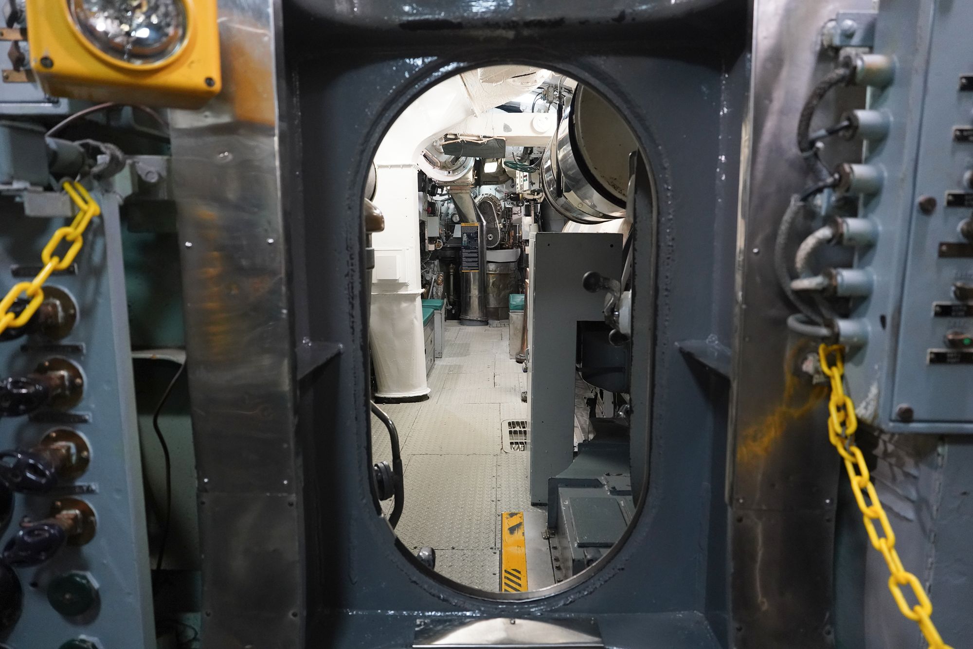 As I moved toward the front of the submarine, I had to squeeze through multiple narrow openings like this one.