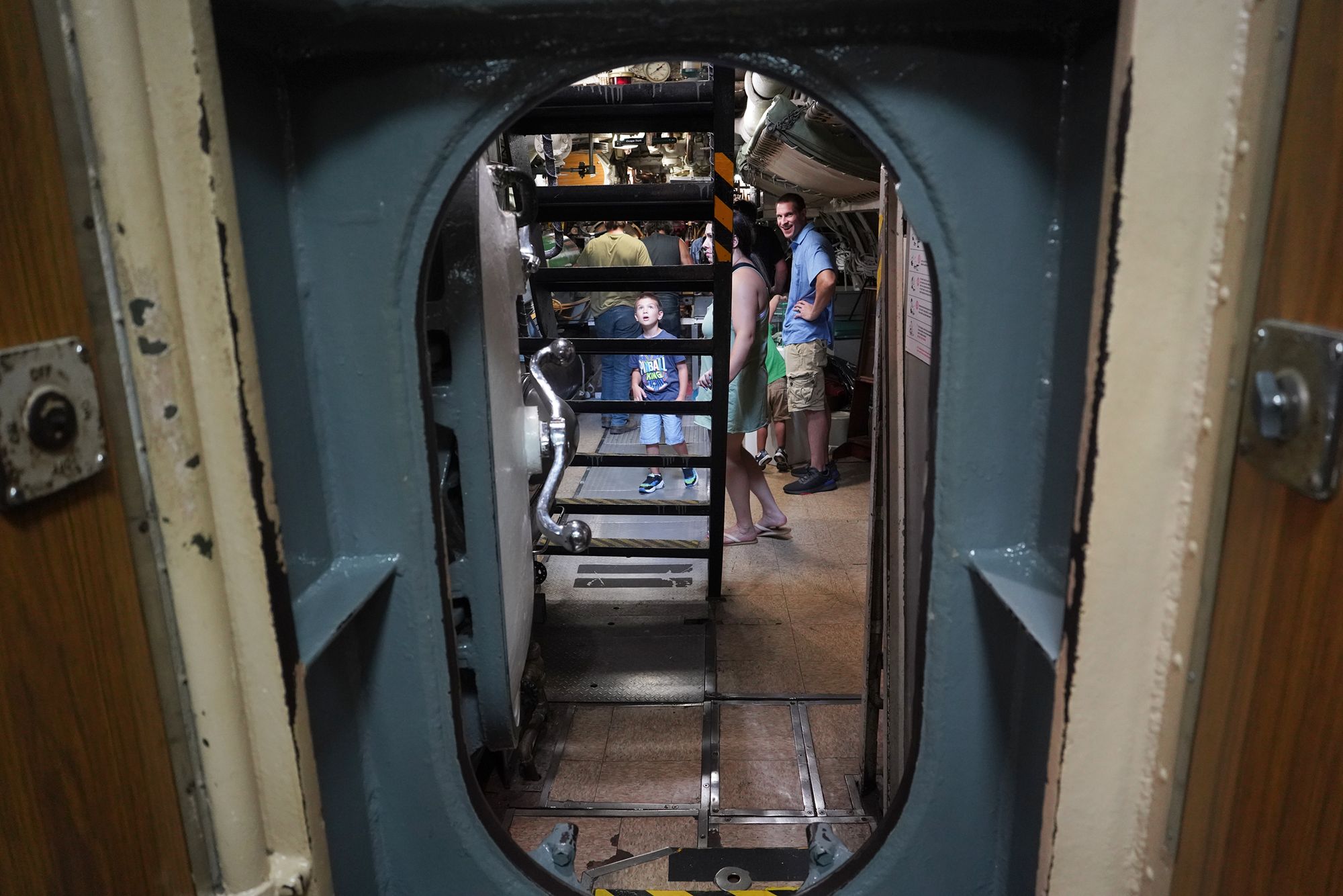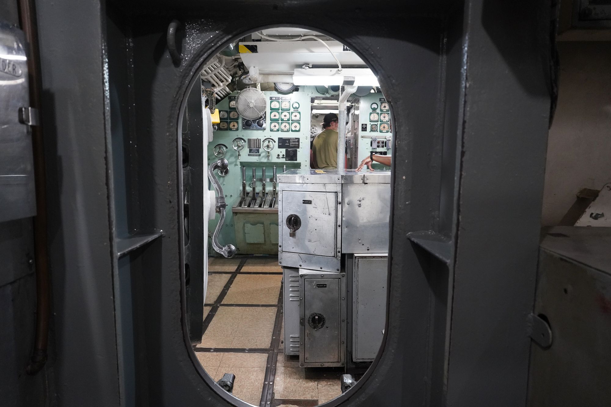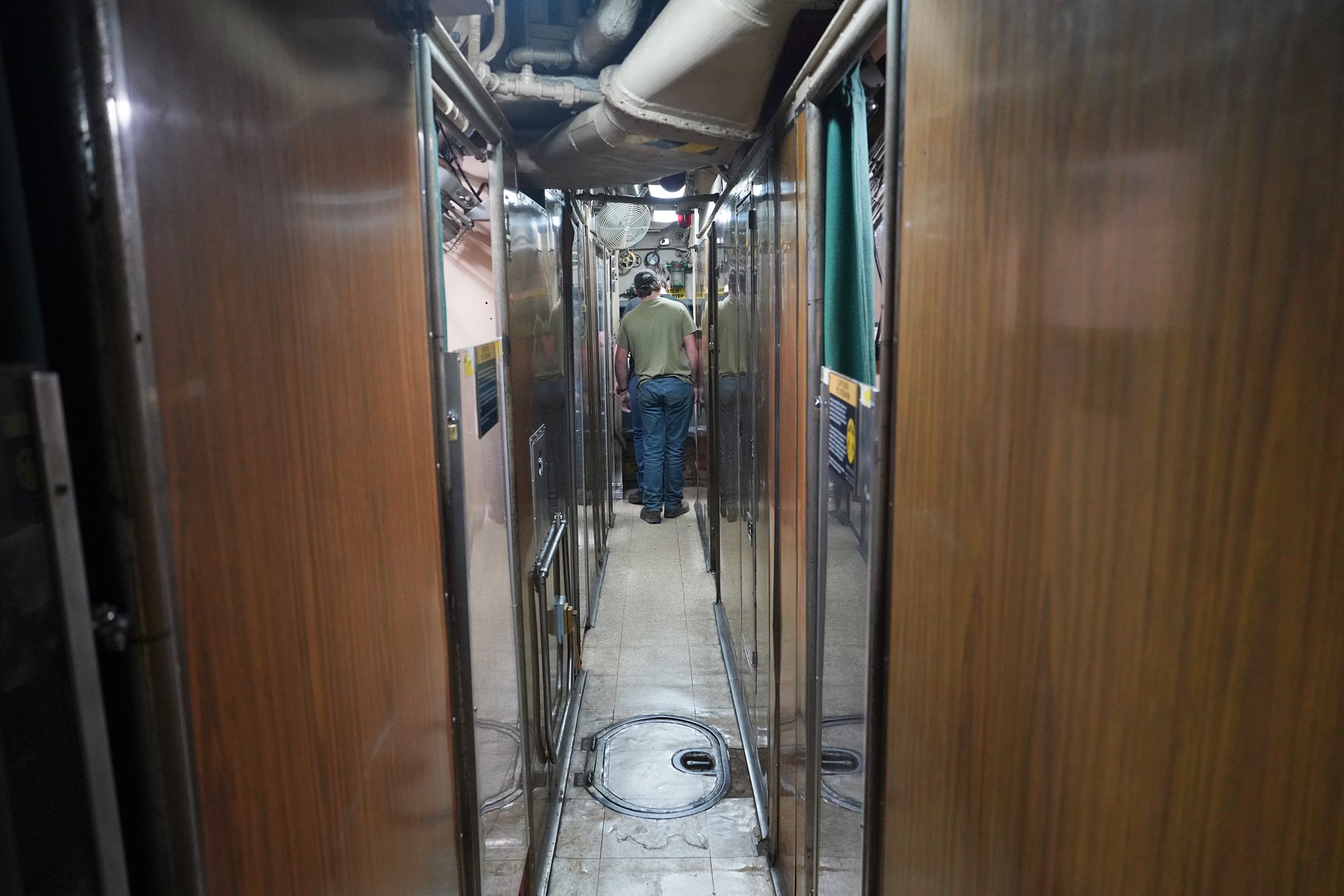 As I moved toward the front of the submarine, I had to squeeze through multiple narrow openings like this one.