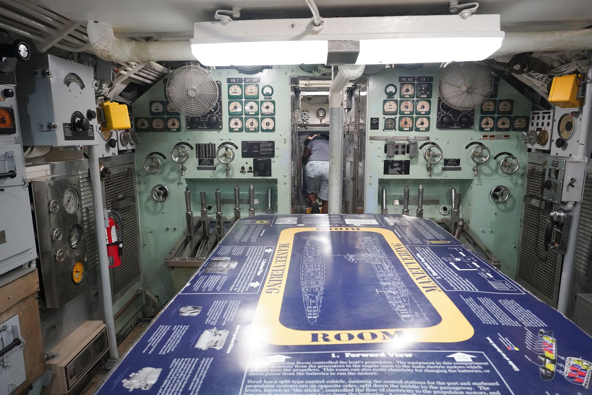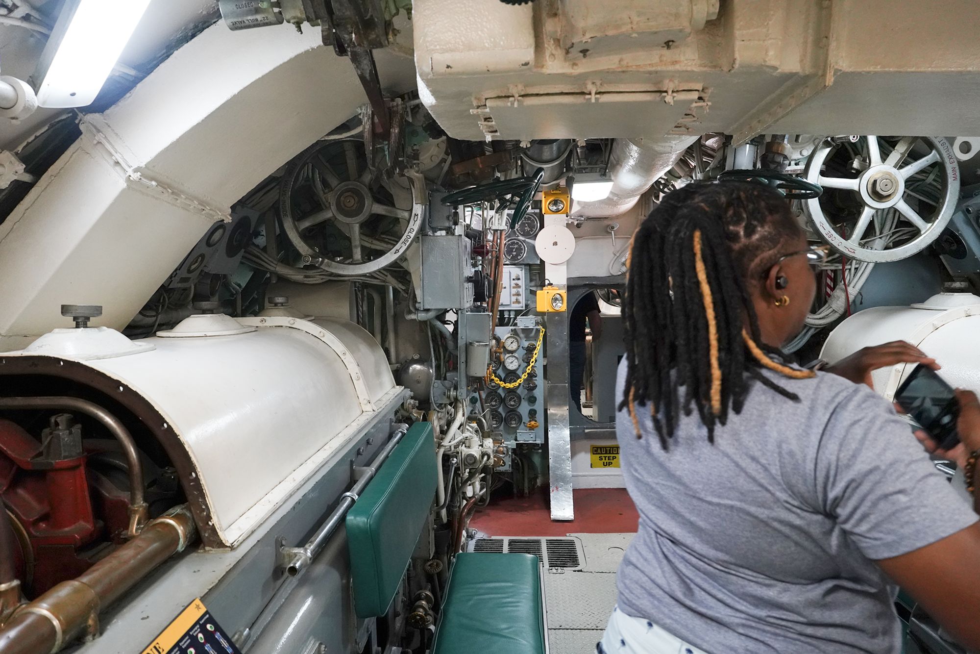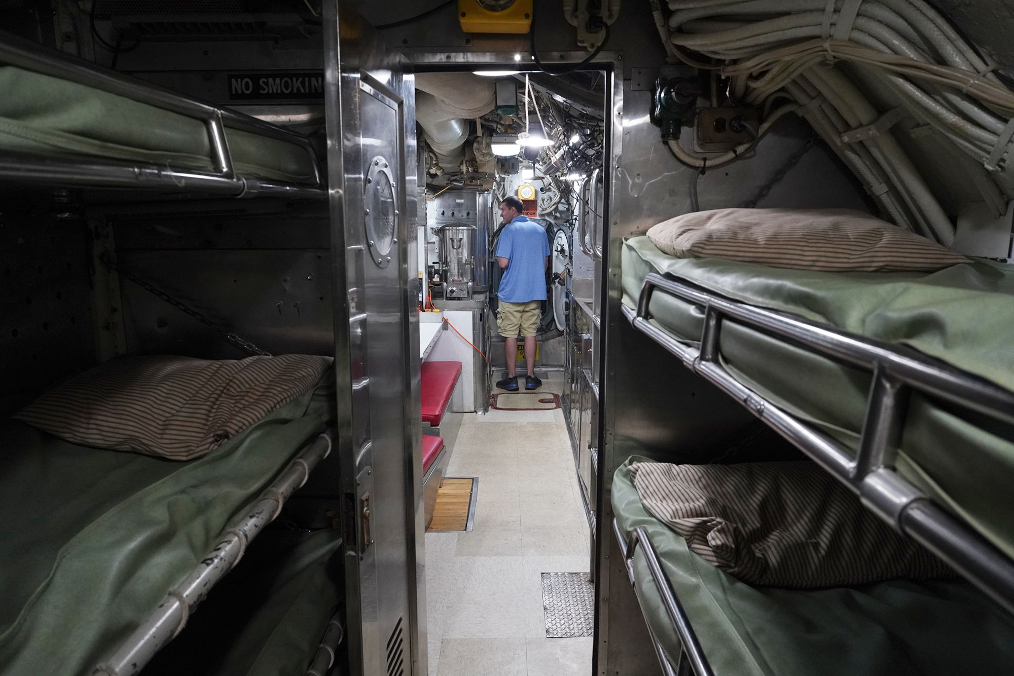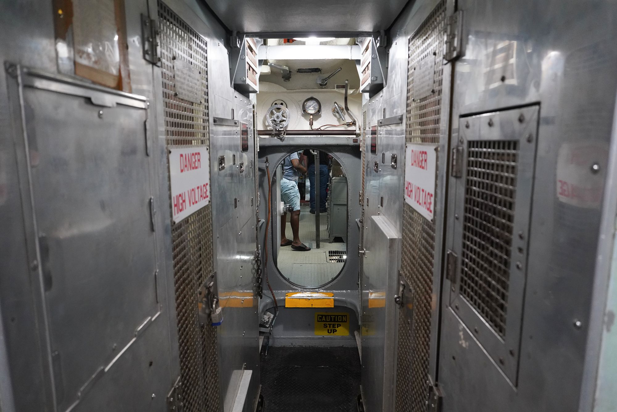 As I moved toward the front of the submarine, I had to squeeze through multiple narrow openings like this one.