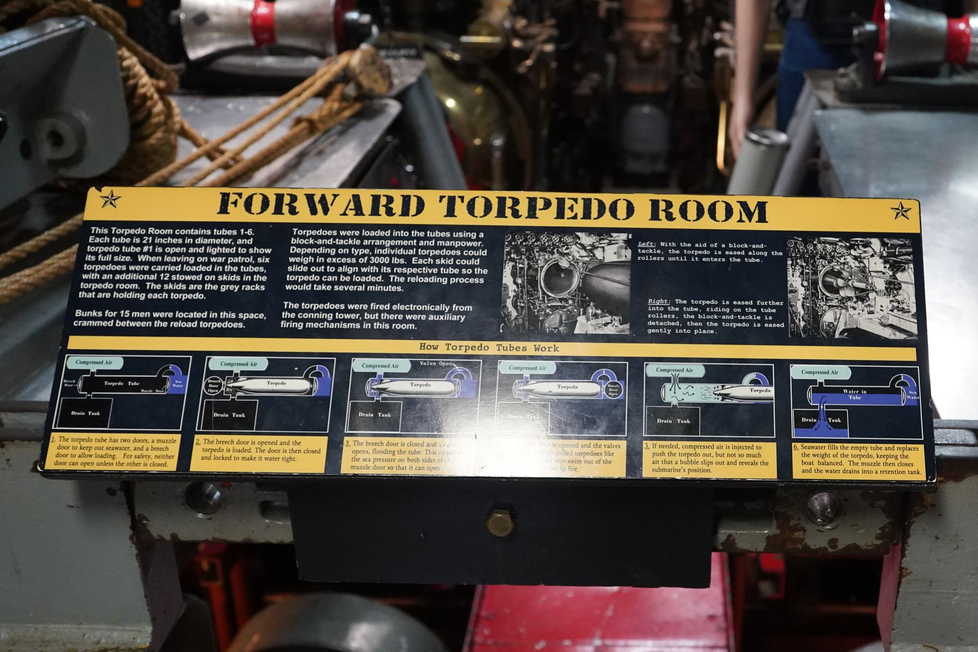 At the very front of the submarine is another torpedo room