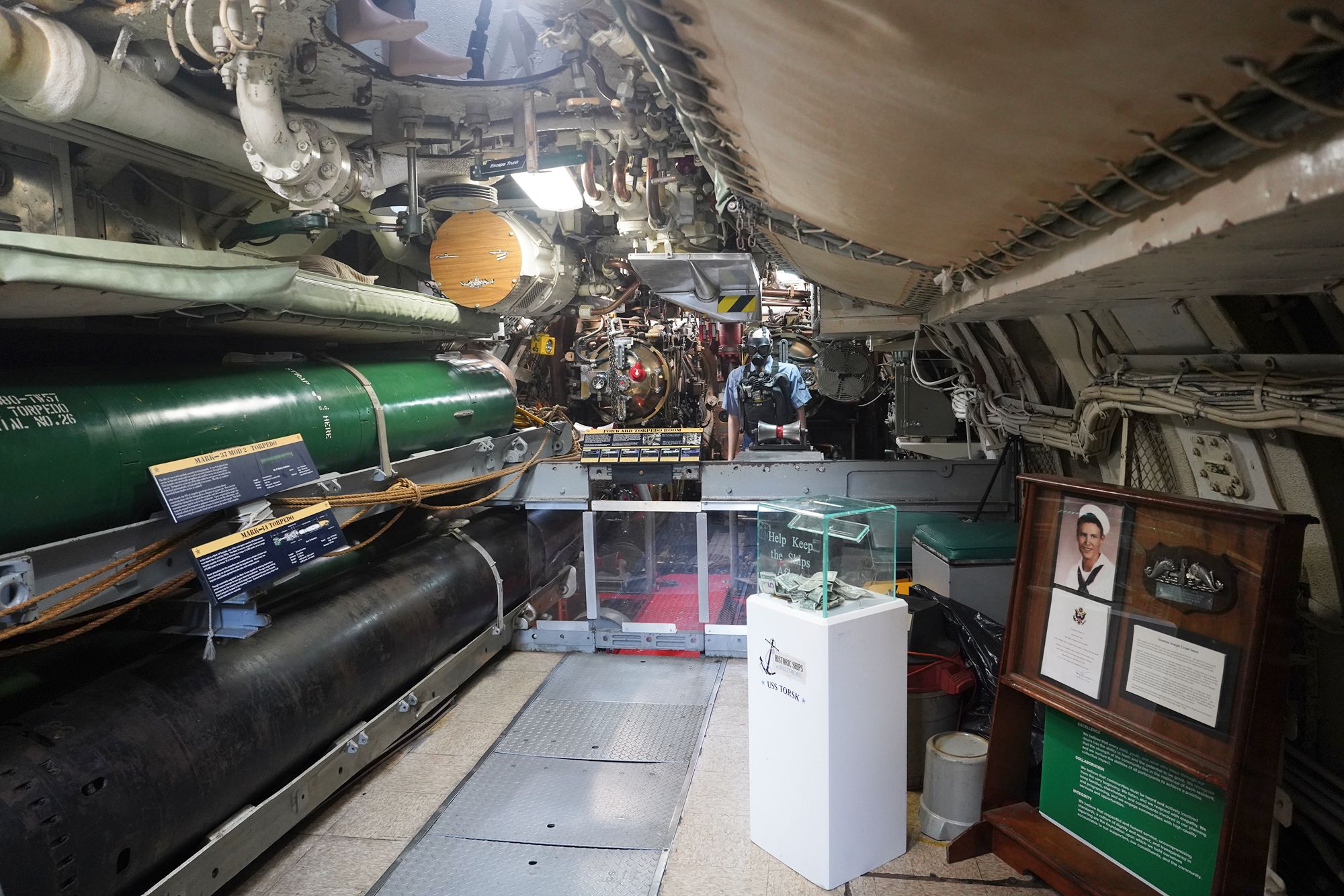 Next to the lightship was USS Torsk — A submarine commissioned in 1944, it saw action in World War II and sank some of the final enemy ships before the war ended.