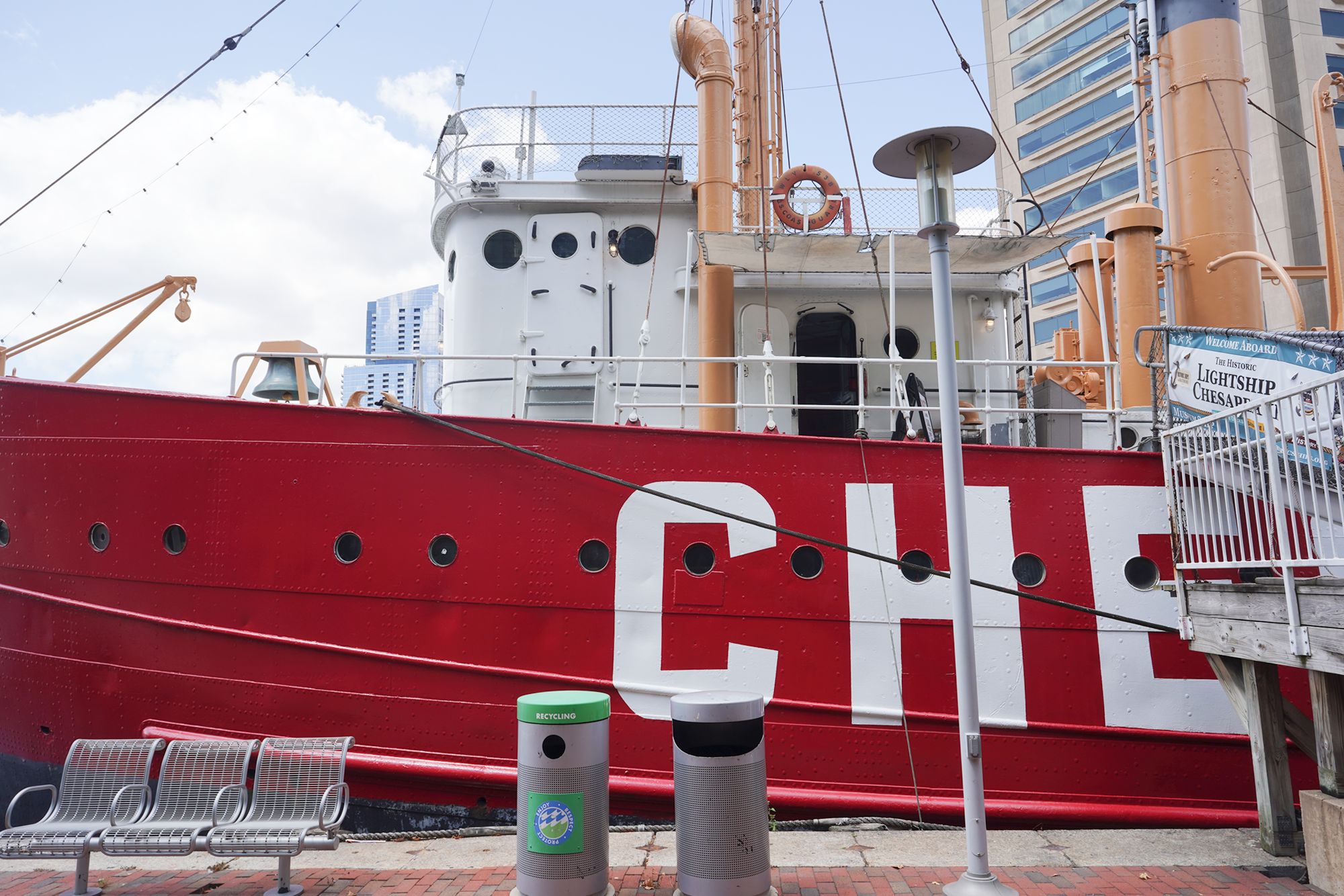The next historical ship on sight was the Lightship Chesapeake (official hull number LV-116, later WAL-538 / WLV-538).  It was a “lightship,” i.e. a floating lighthouse built to guide and safeguard maritime traffic in coastal waters.
