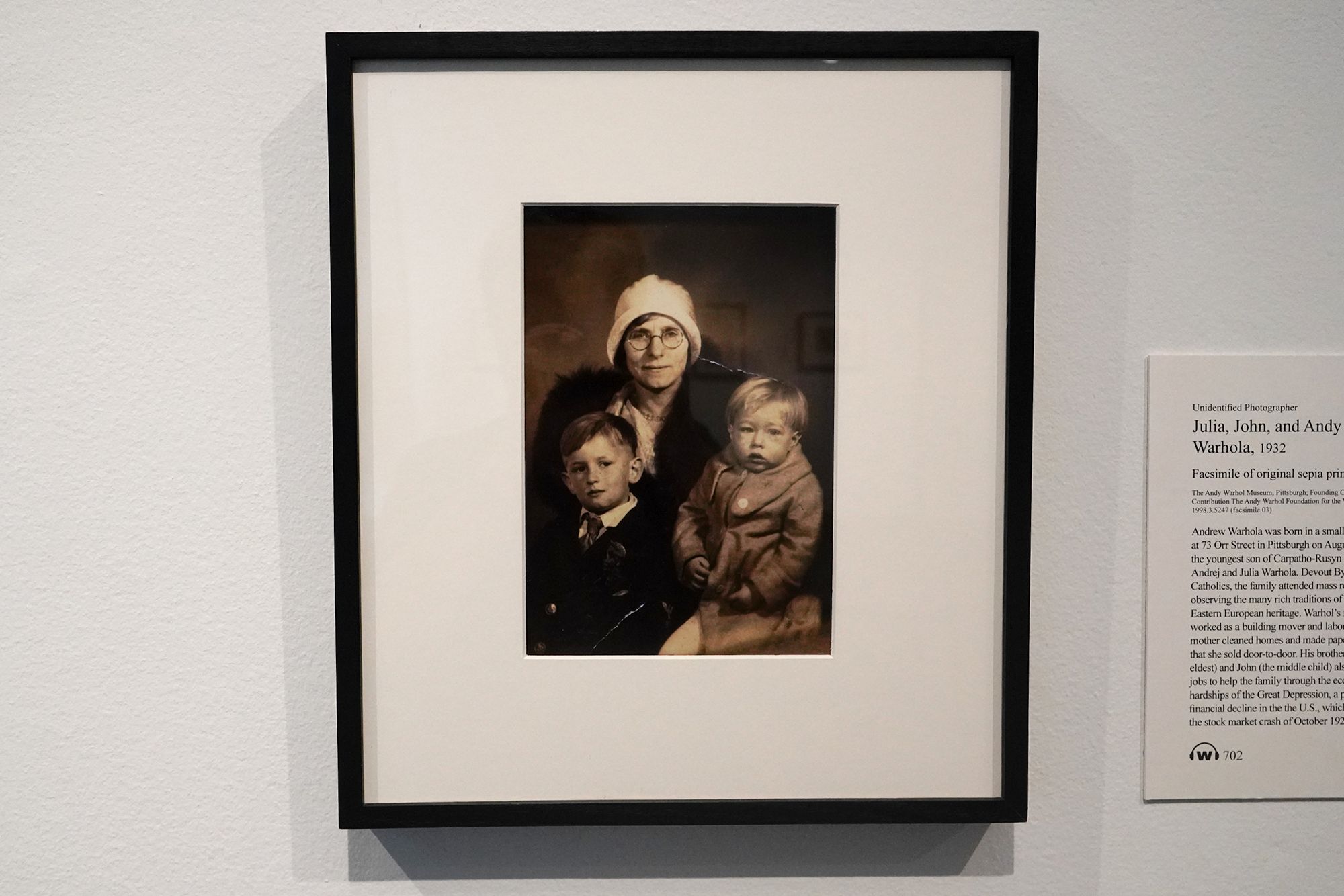 A photograph of him as a little boy with his mother and brother.