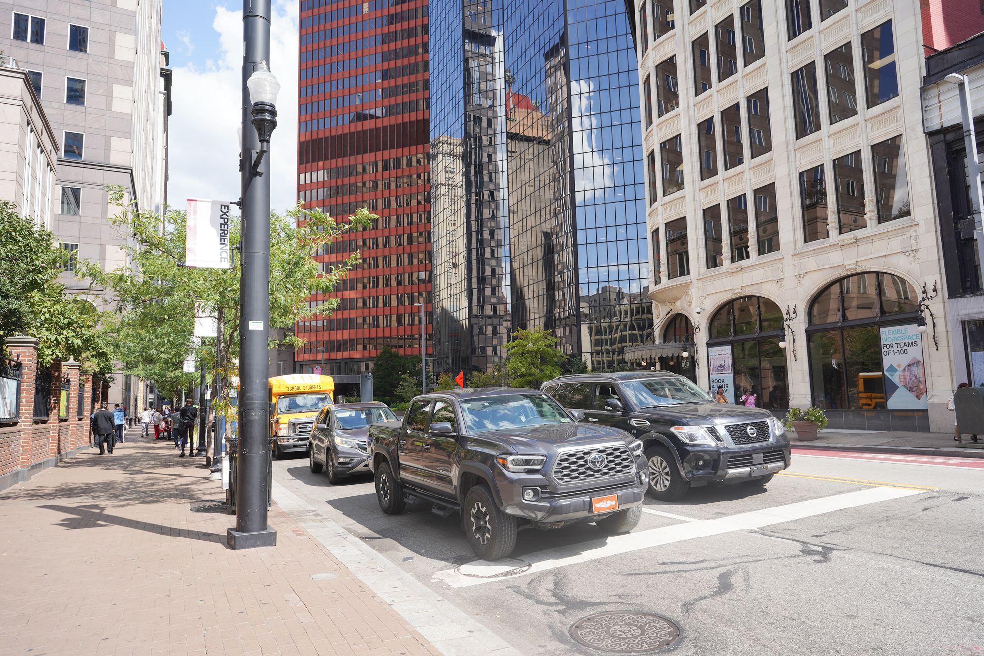 Downtown Pittsburgh blends riverside views, historic bridges, skyscrapers, and a compact, walkable urban core. 1202