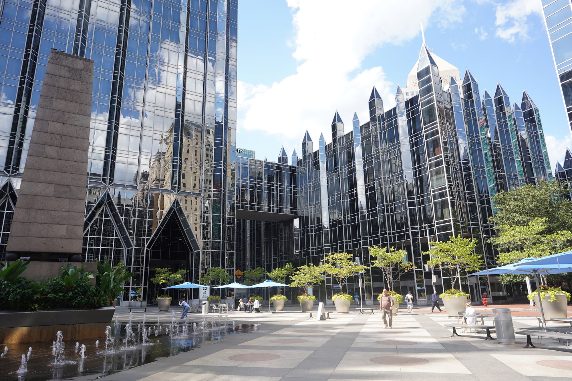 PPG Plaza’s glass buildings reflect both Pittsburgh’s industrial heritage and its architectural reinvention.