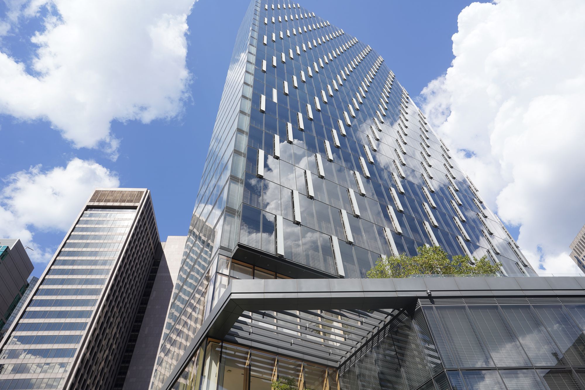 Designed by Philip Johnson, the complex features glass-clad, Gothic-inspired towers that reflect the surrounding city. Its mirrored surfaces, public plaza, and seasonal ice rink make it both a corporate headquarters and an active urban gathering space.