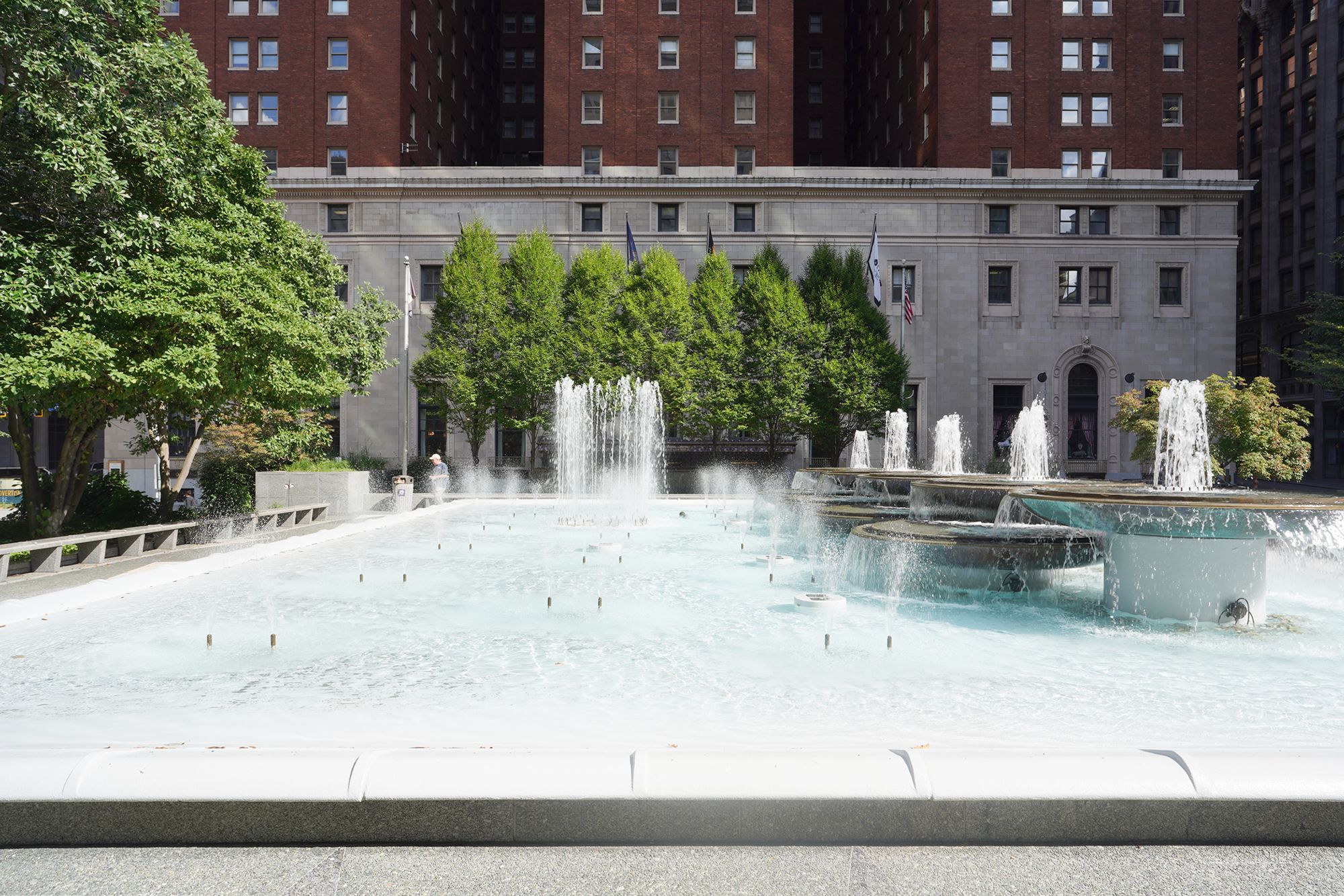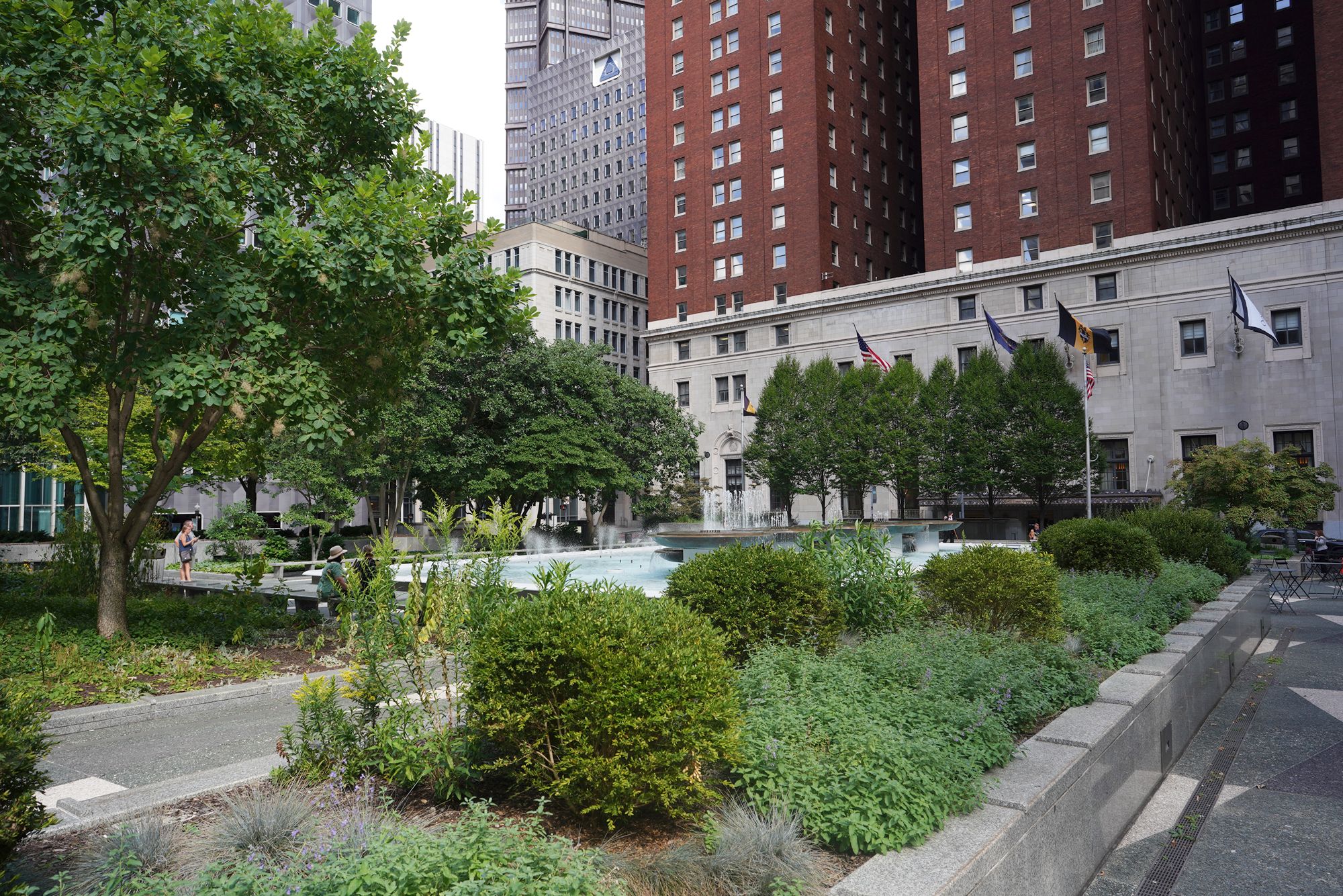 Opened in the 1950s, it was one of the first rooftop parks in the United States, built above an underground garage. Its clean lines, fountains, and terraces reflect mid-century design ideals, offering a quiet retreat amid surrounding office towers.