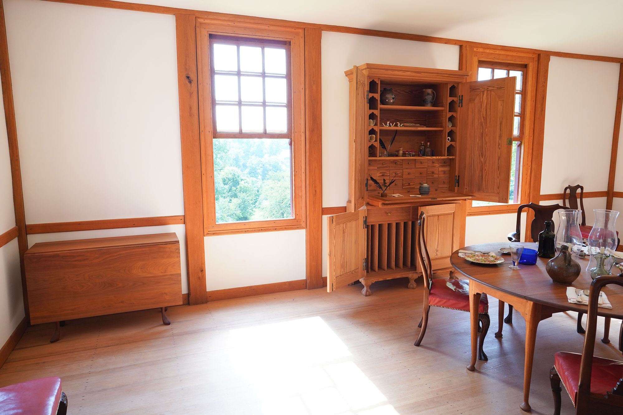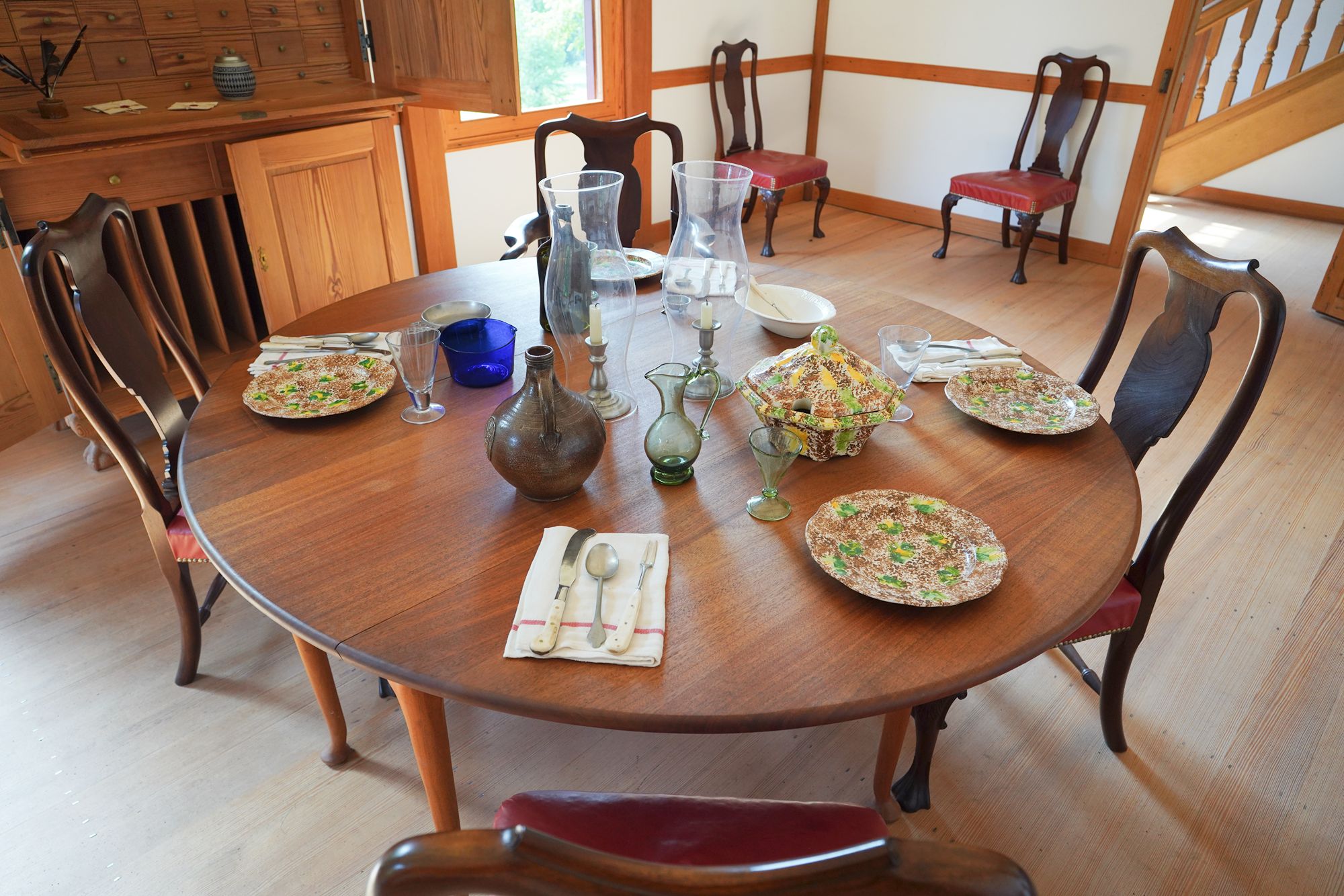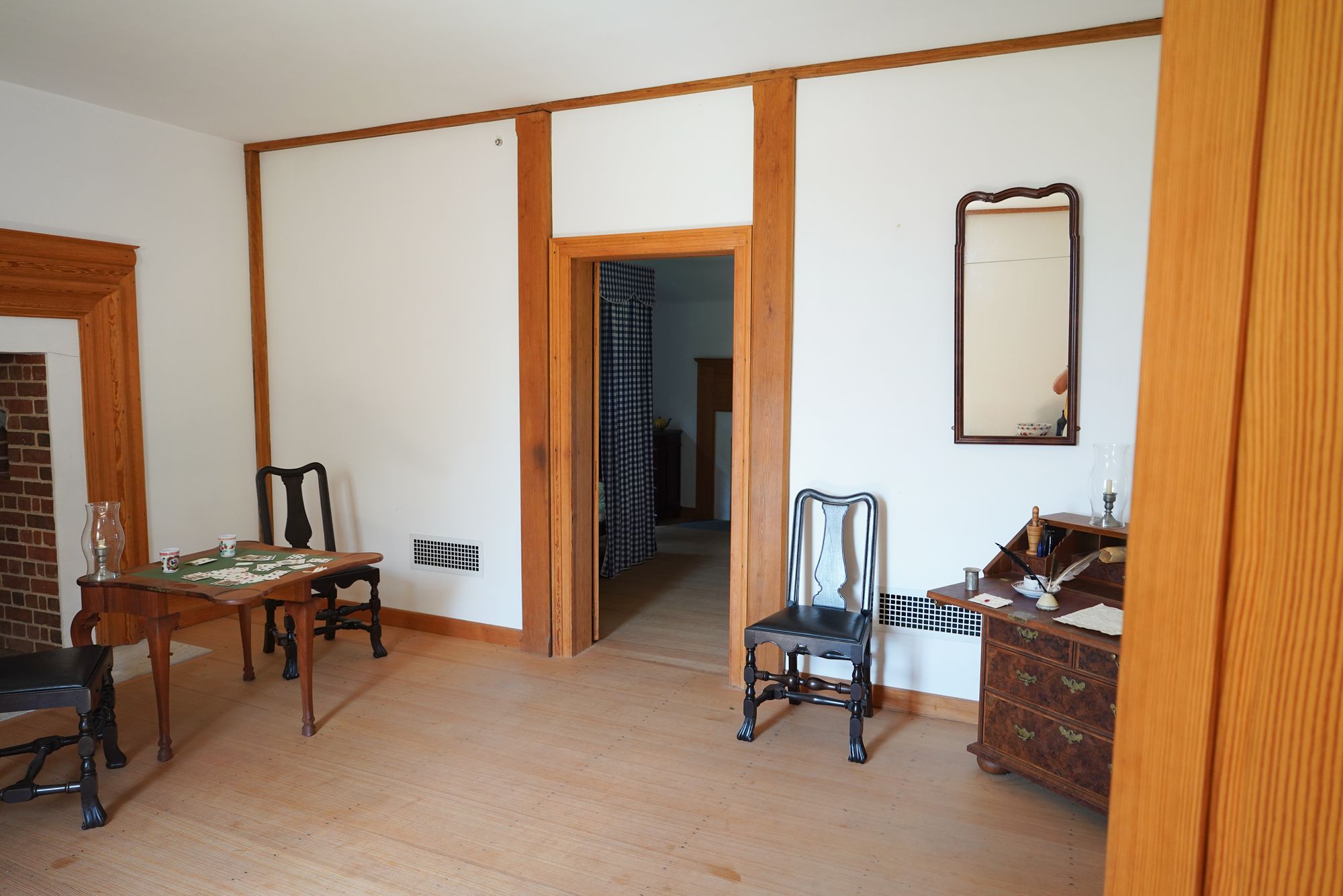 The reconstructed George Washington boyhood home at Ferry Farm is furnished with period-appropriate reproductions based on archaeological findings and 18th-century records.