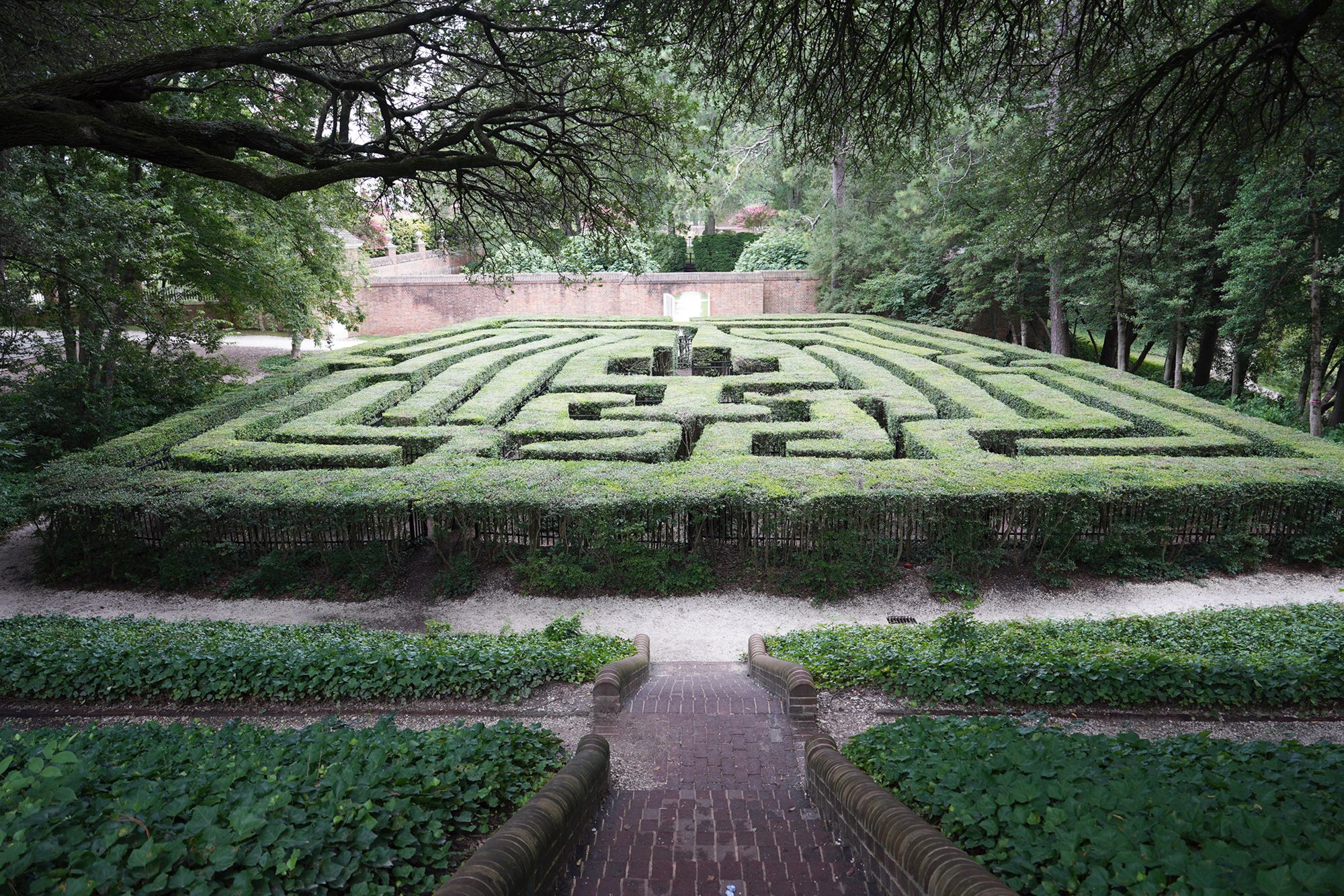 The maze at the Governor’s Palace garden in Williamsburg is a re-creation of the original 18th-century hedge maze, designed for leisure and display