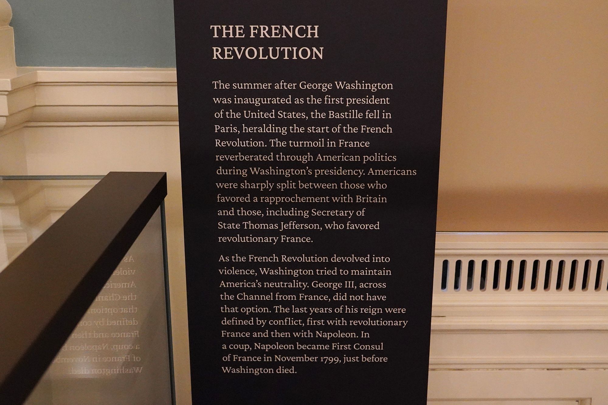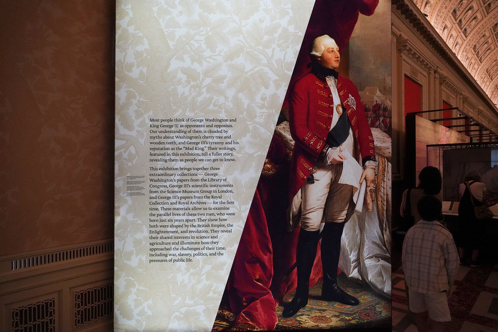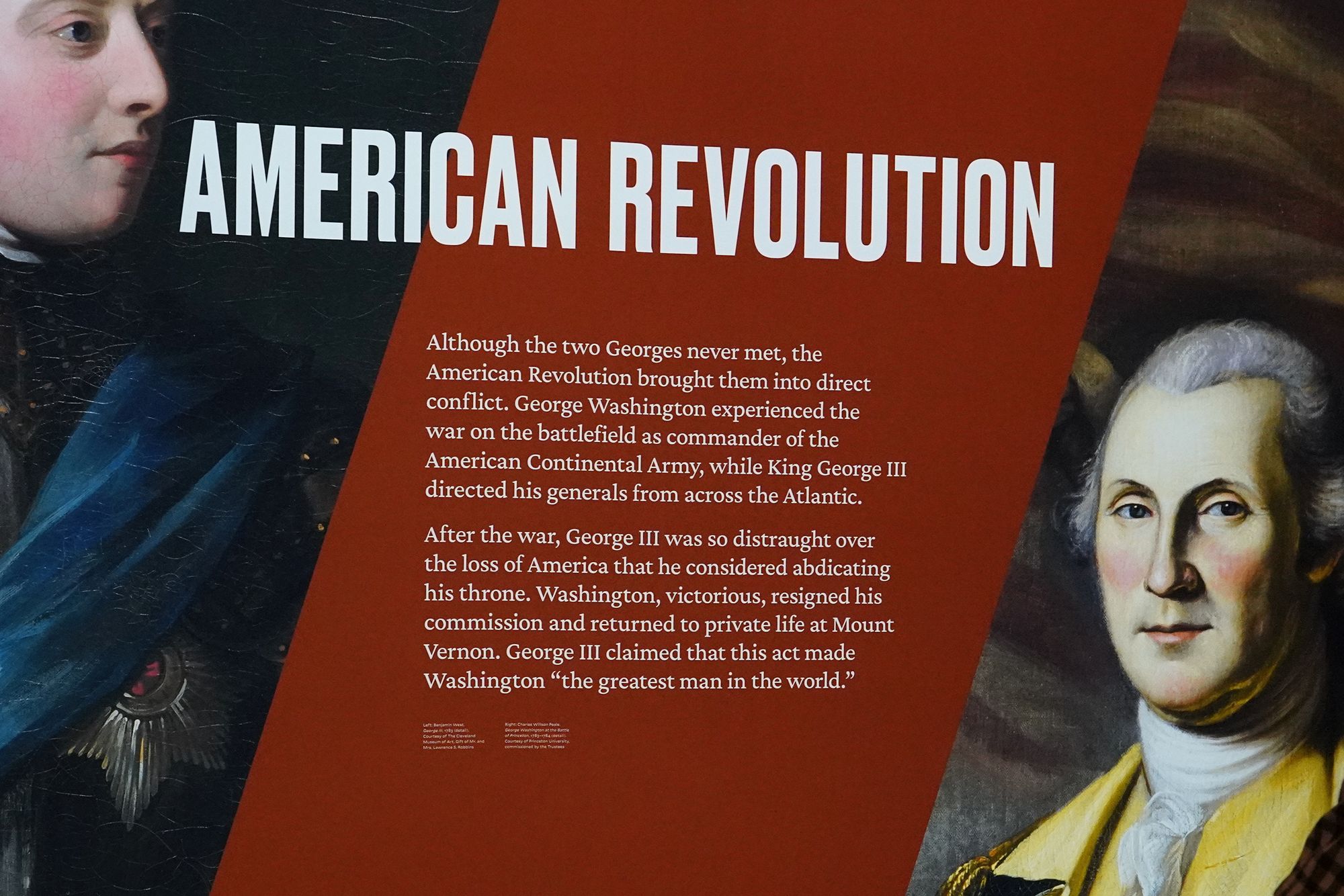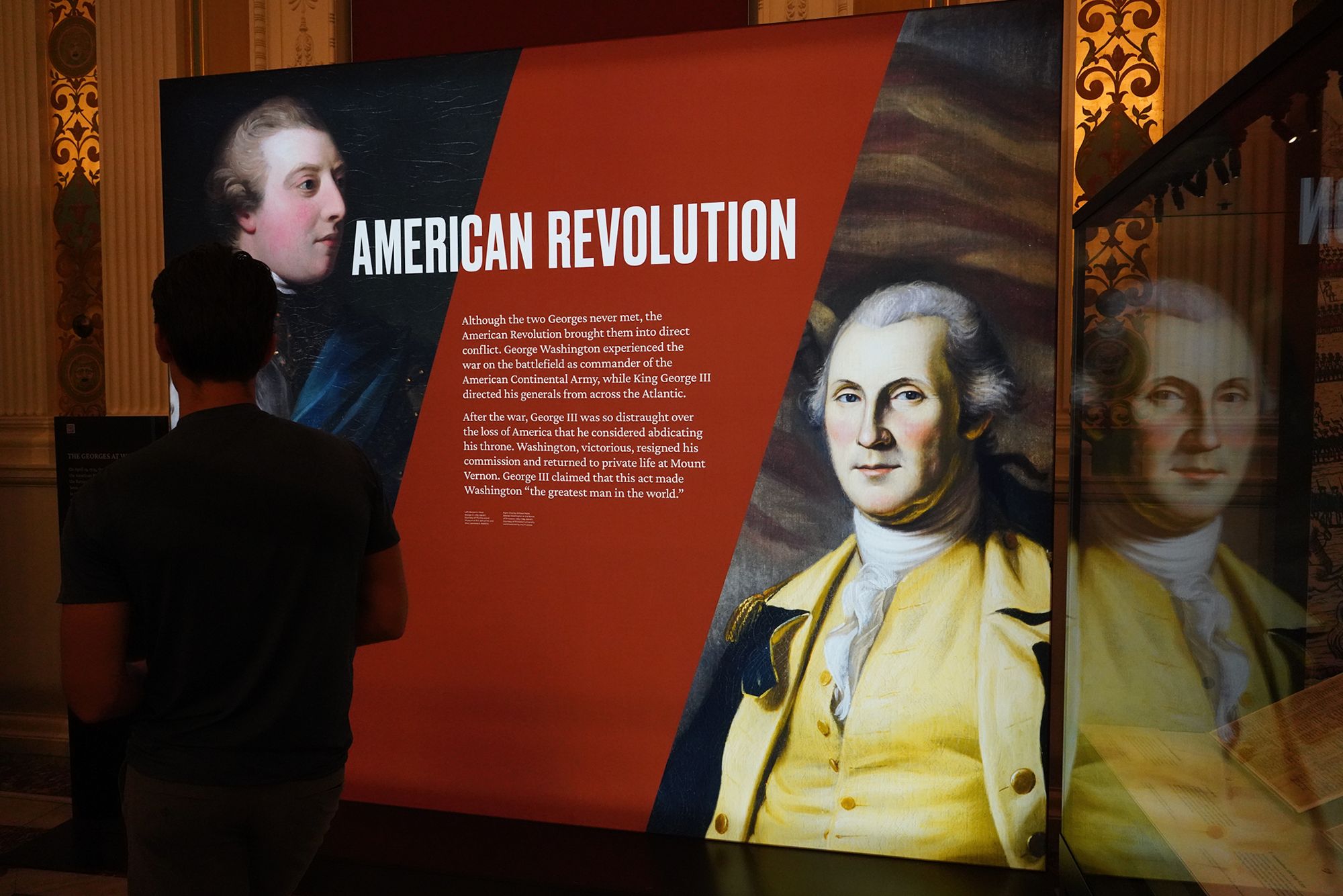 The theme “Inventing the Presidency / Becoming the King” contrasts the very different paths of George Washington and King George III after the American Revolution.
