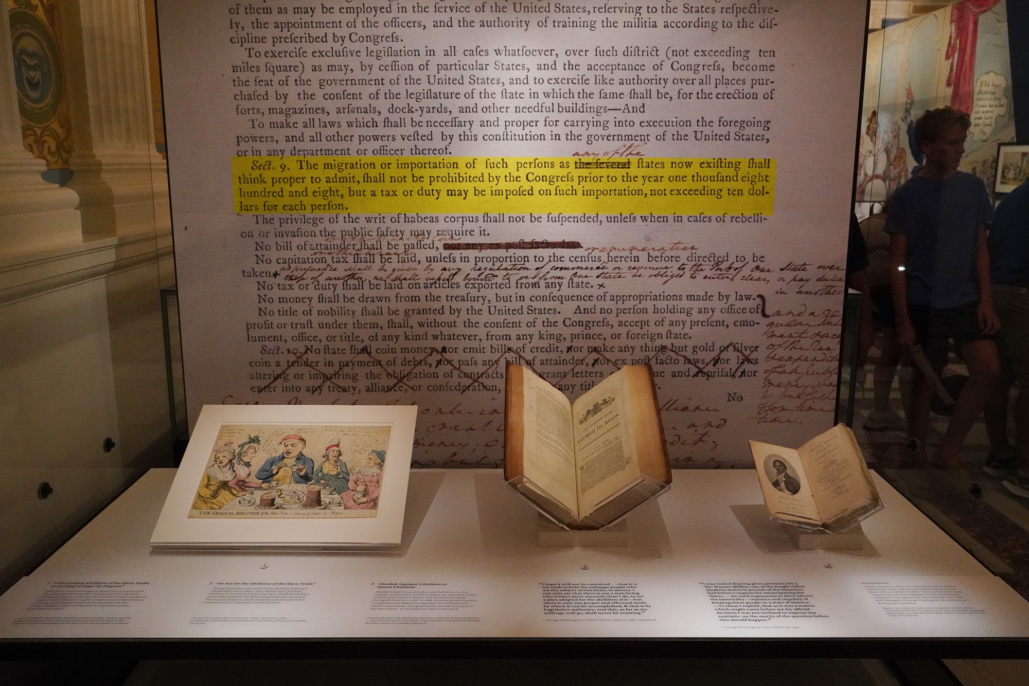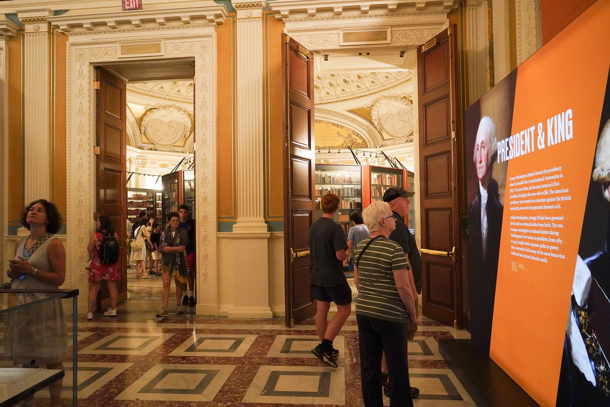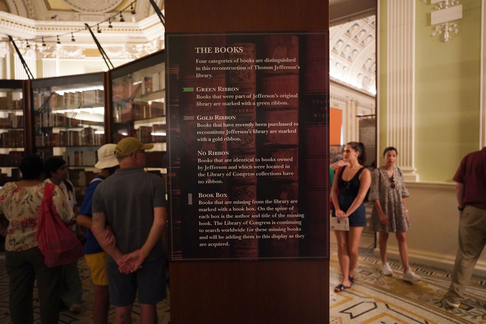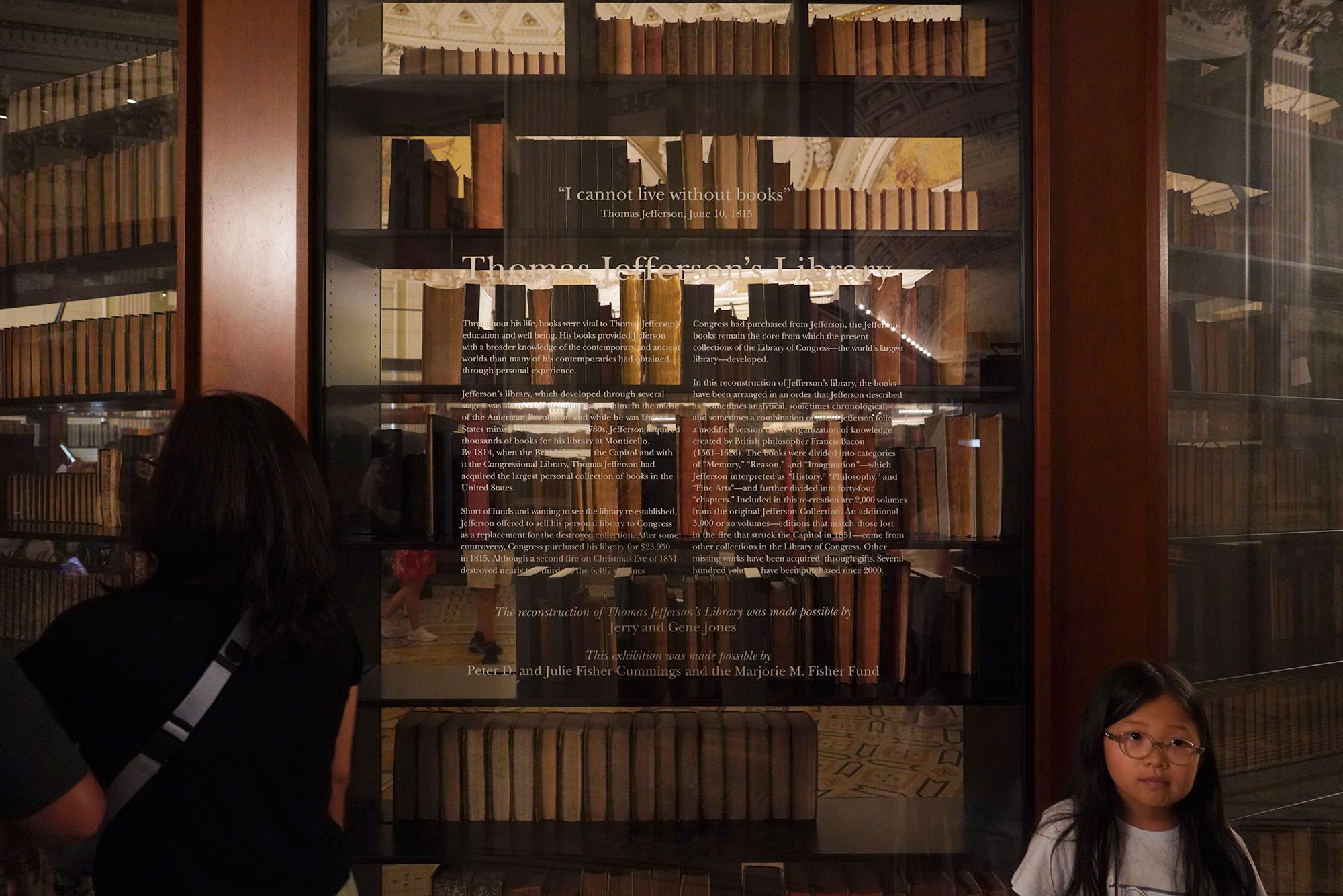 At one end of the exhibition room, there was a display featuring Thomas Jefferson’s Library.