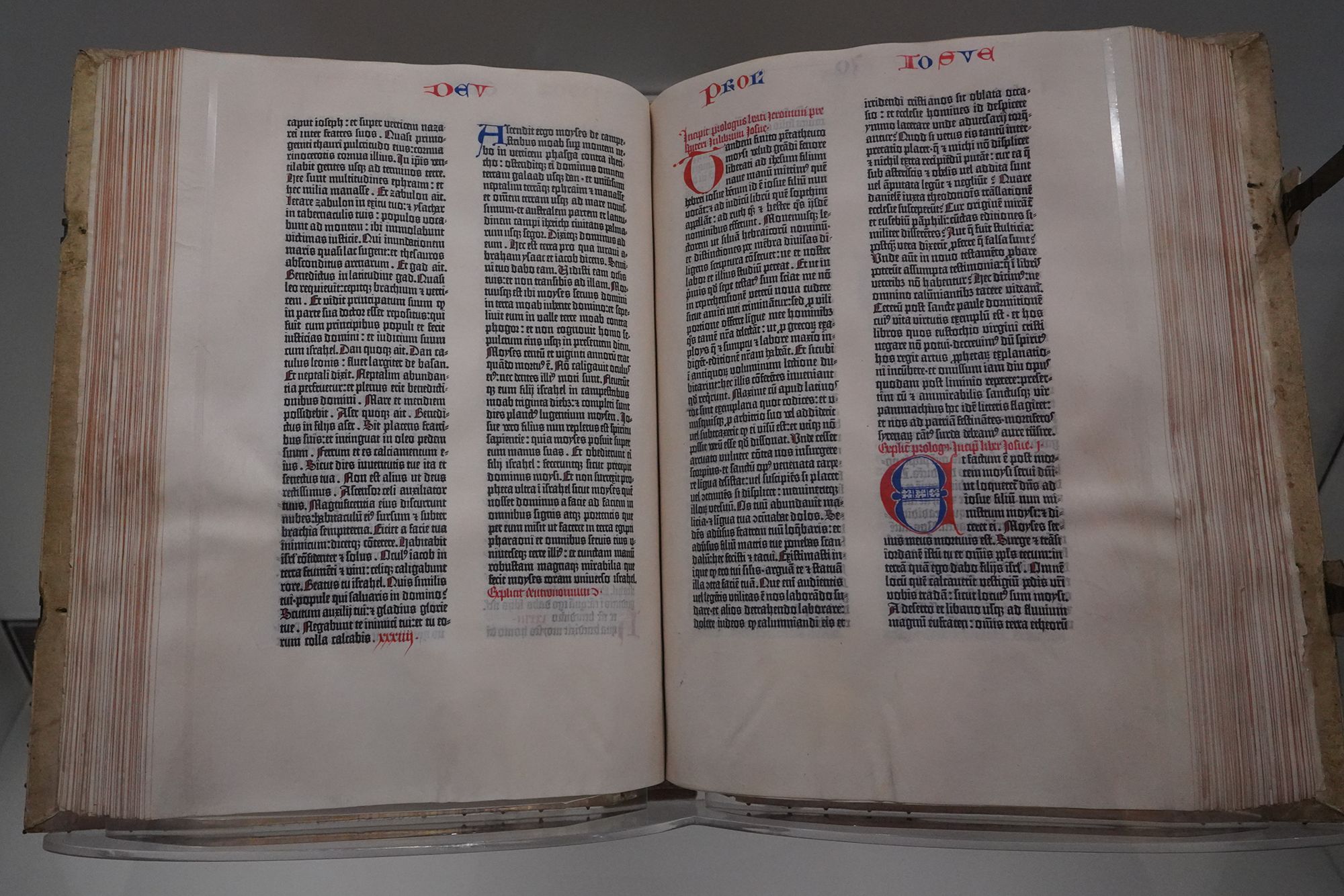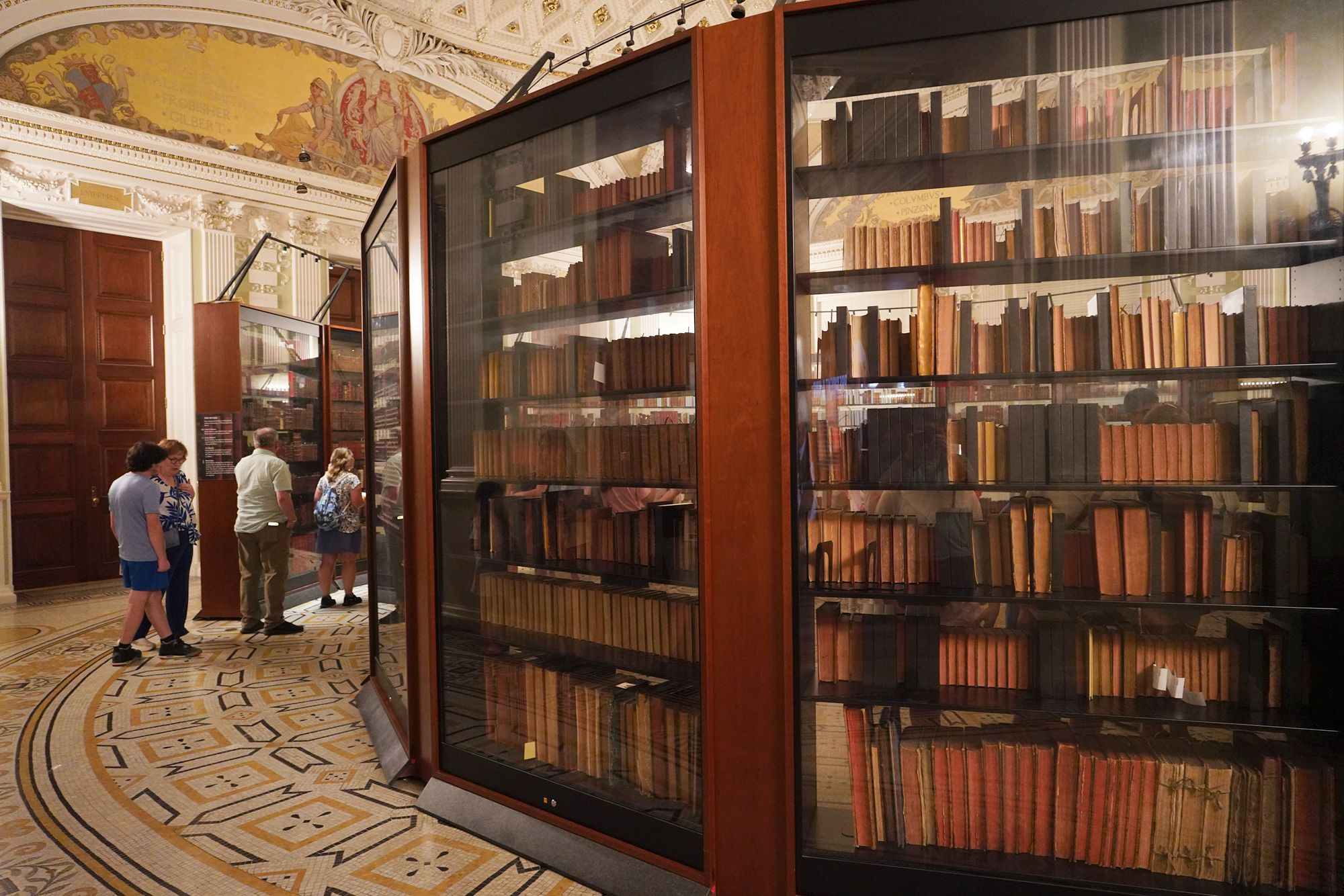 The Library of Congress owns an exceptionally rare copy—one of only about fifty surviving Gutenberg Bibles known today. It is displayed in a protective glass case on the first floor of the Thomas Jefferson Building, near the Great Hall, alongside the Giant Bible of Mainz, a beautifully handwritten manuscript completed just a few years earlier.