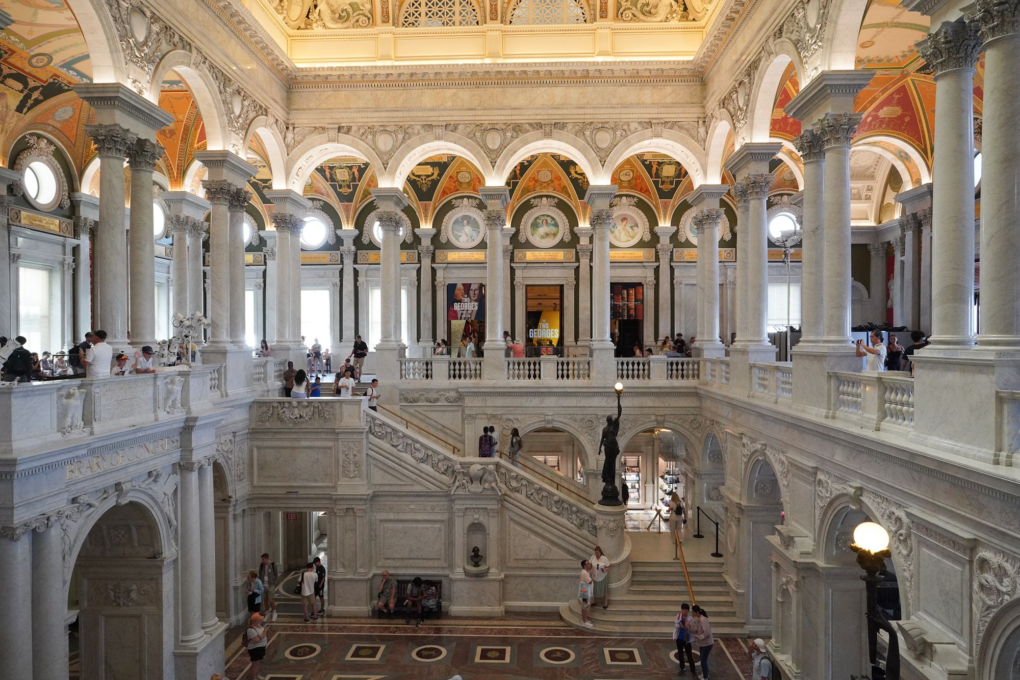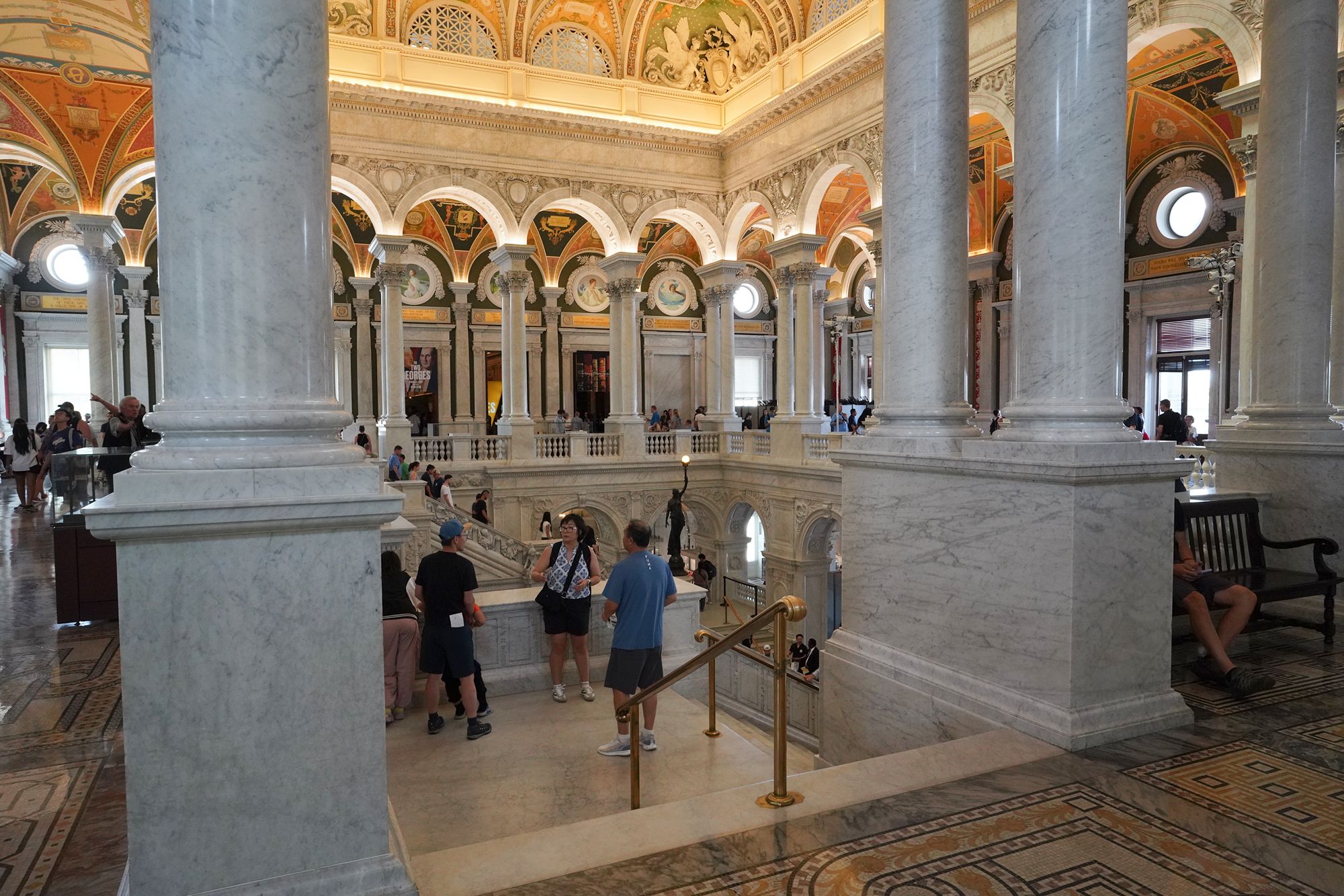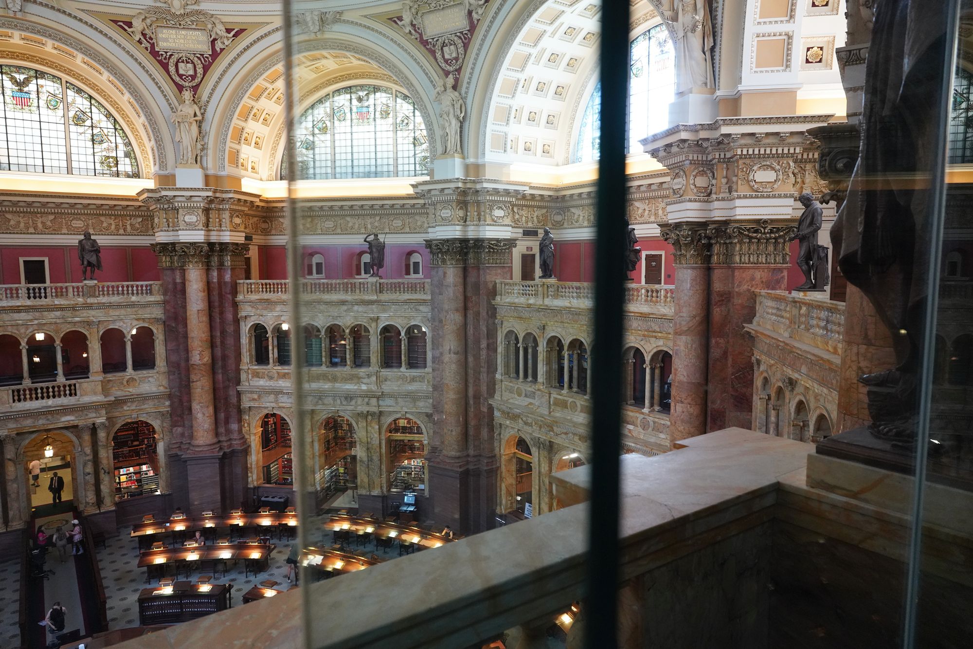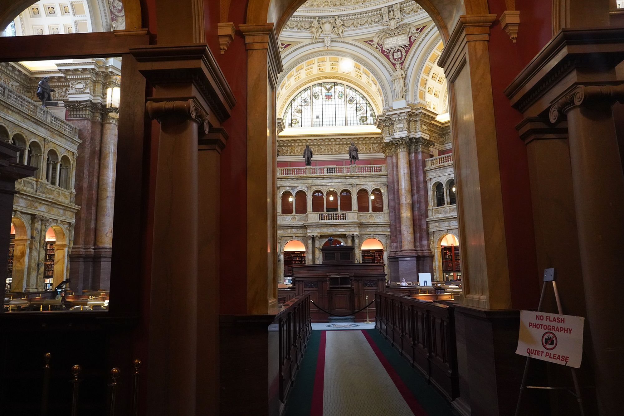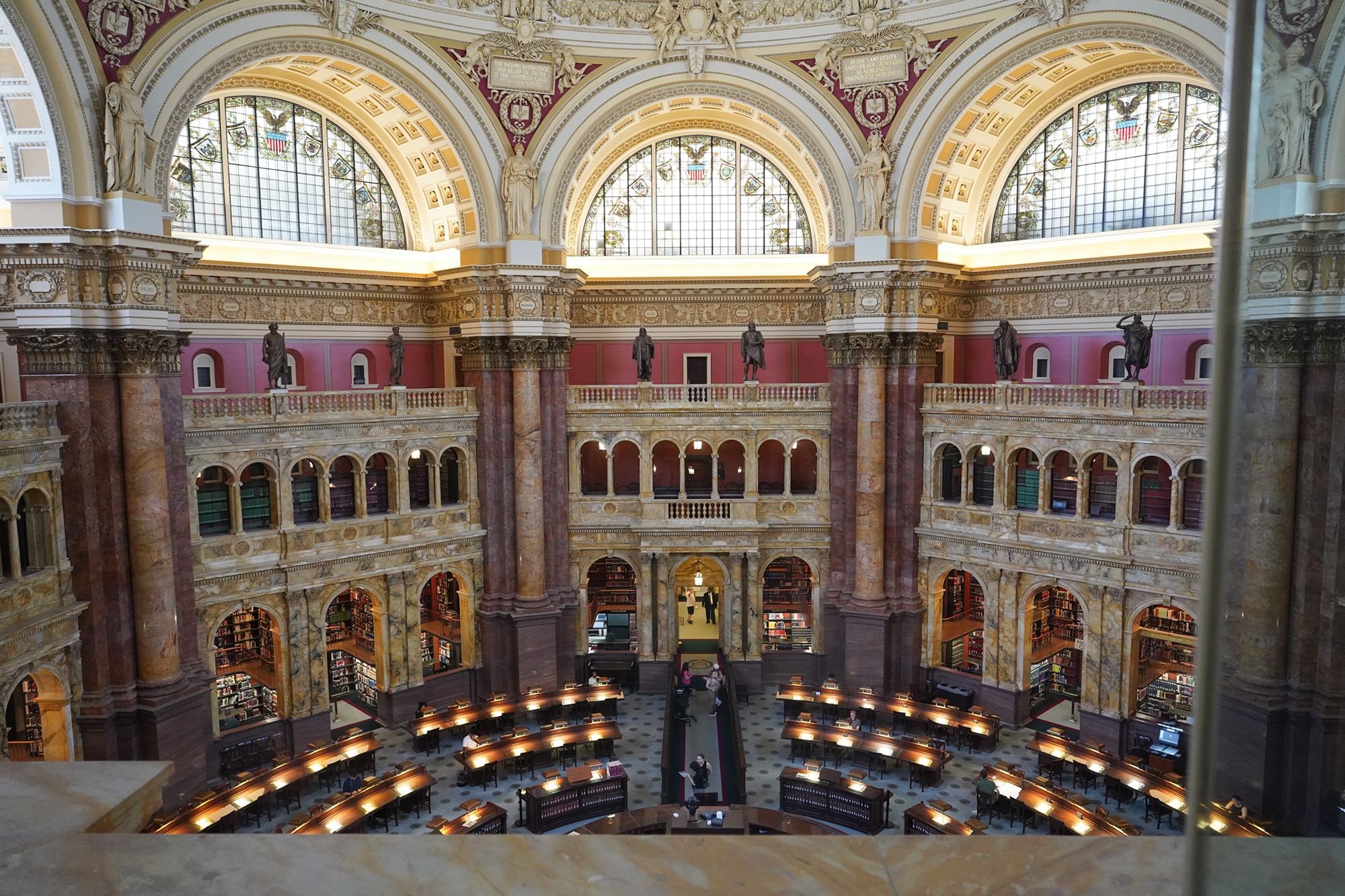 This level also provides access to the Main Reading Room overlook, where visitors can observe one of the most beautiful research spaces in the world—a domed chamber filled with desks, statues representing human knowledge, and the famous circular book delivery system.