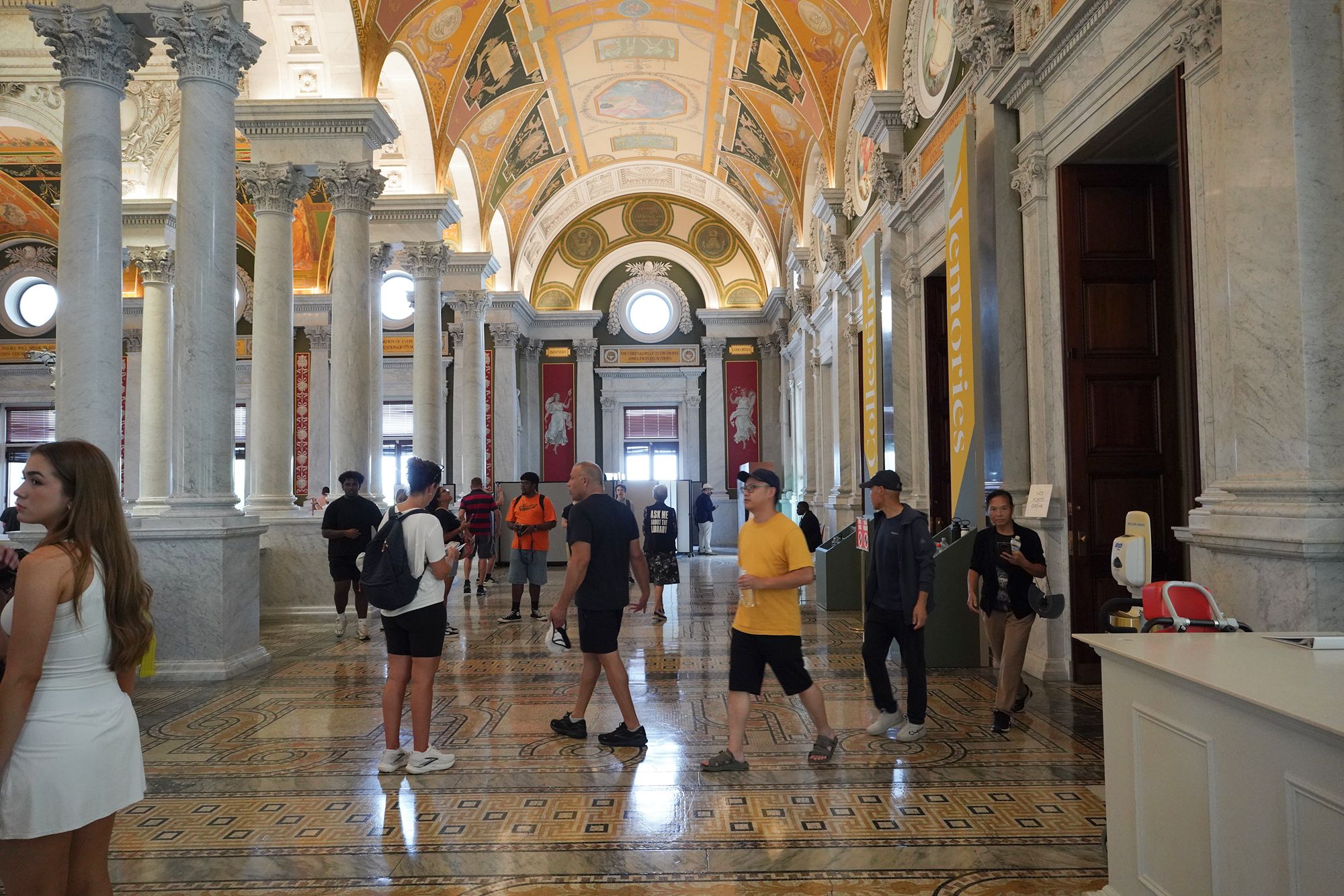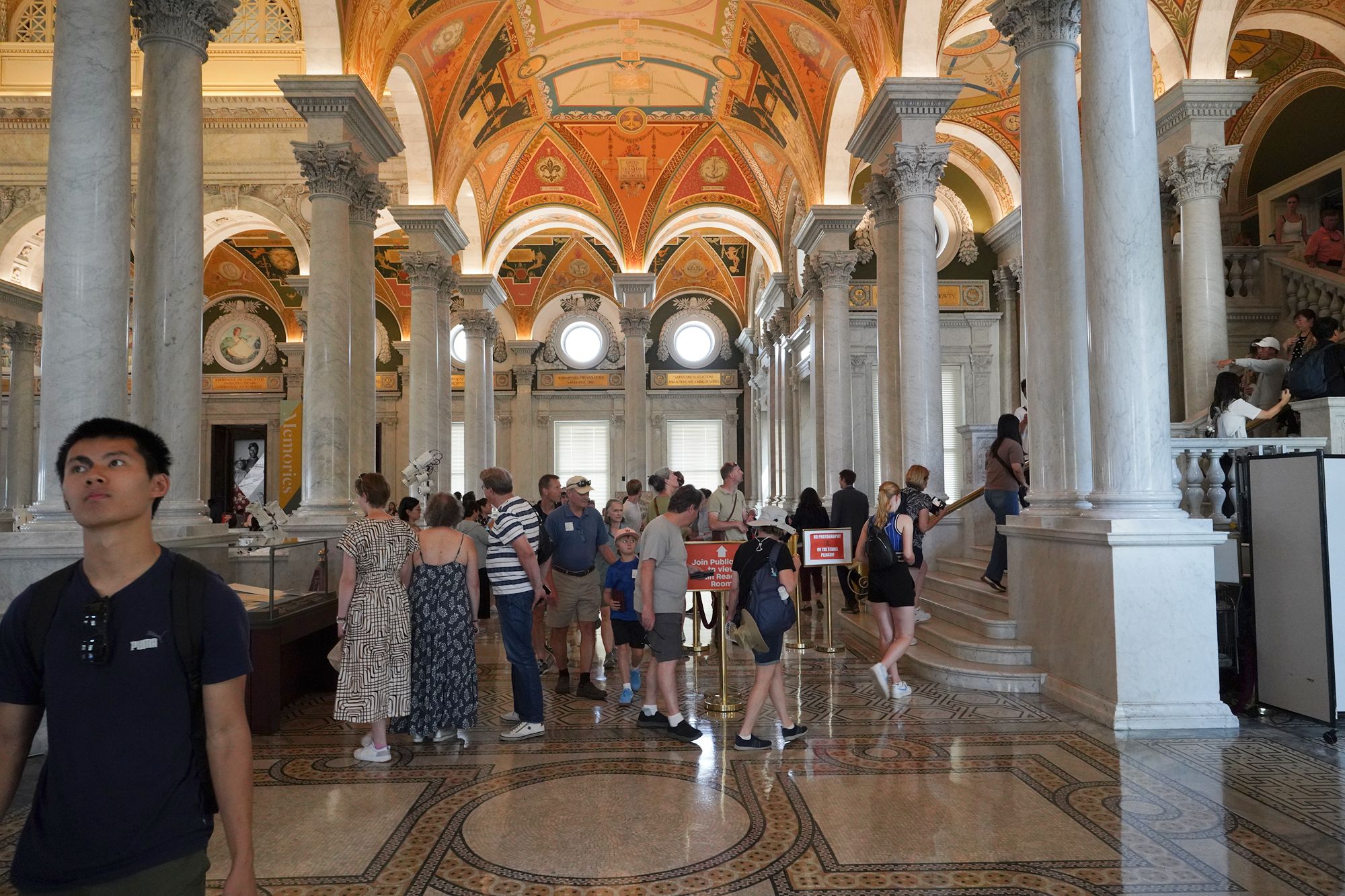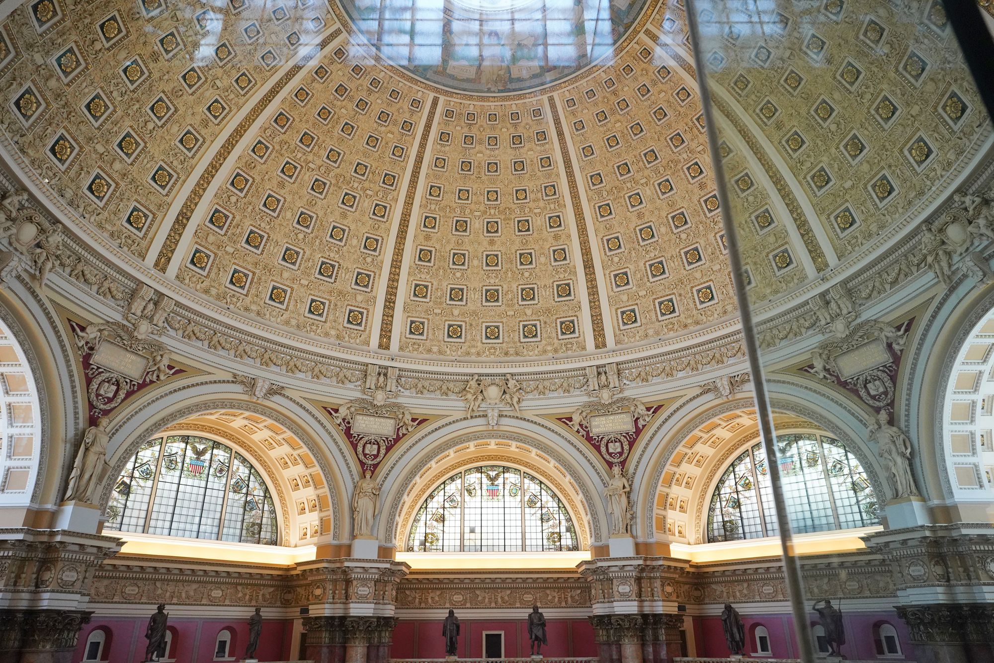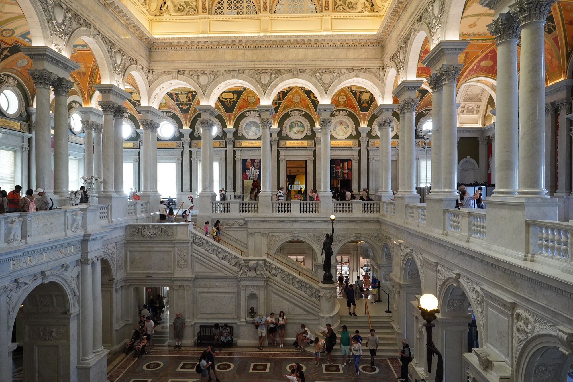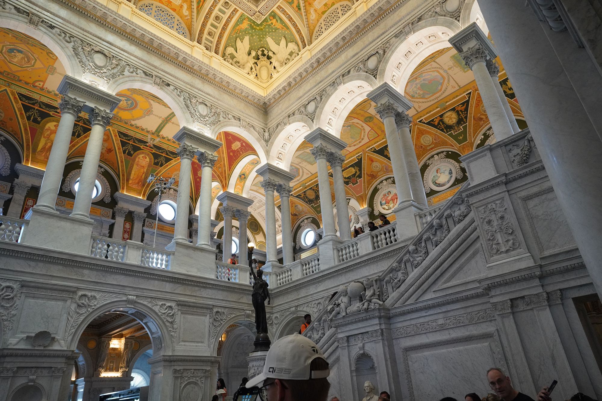 This level also provides access to the Main Reading Room overlook, where visitors can observe one of the most beautiful research spaces in the world—a domed chamber filled with desks, statues representing human knowledge, and the famous circular book delivery system.