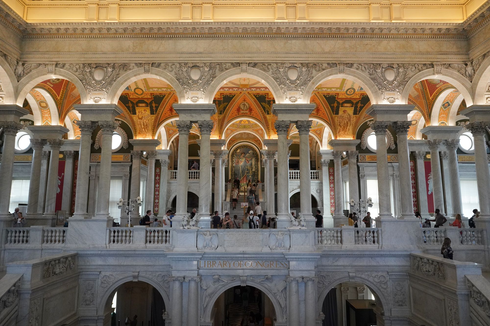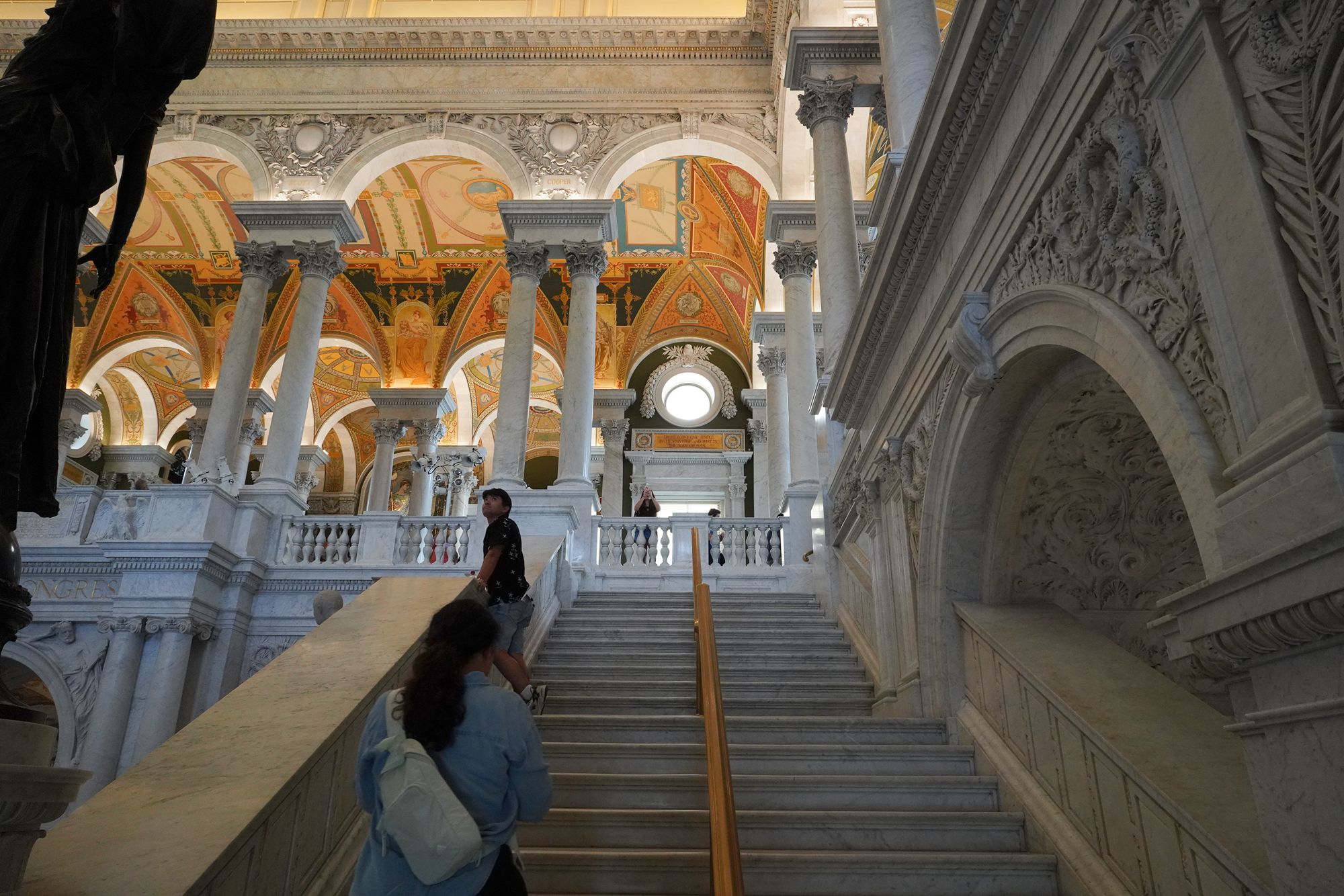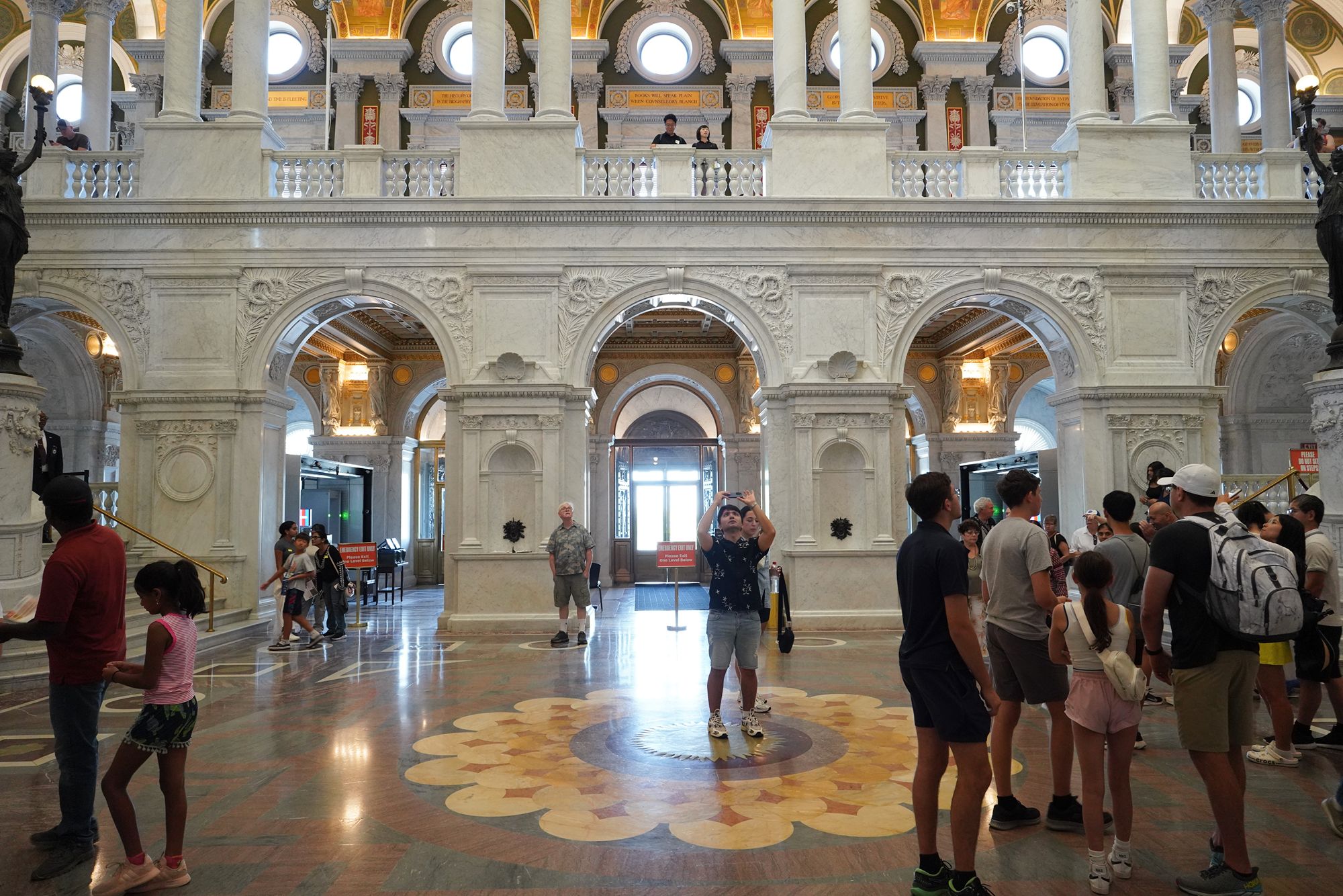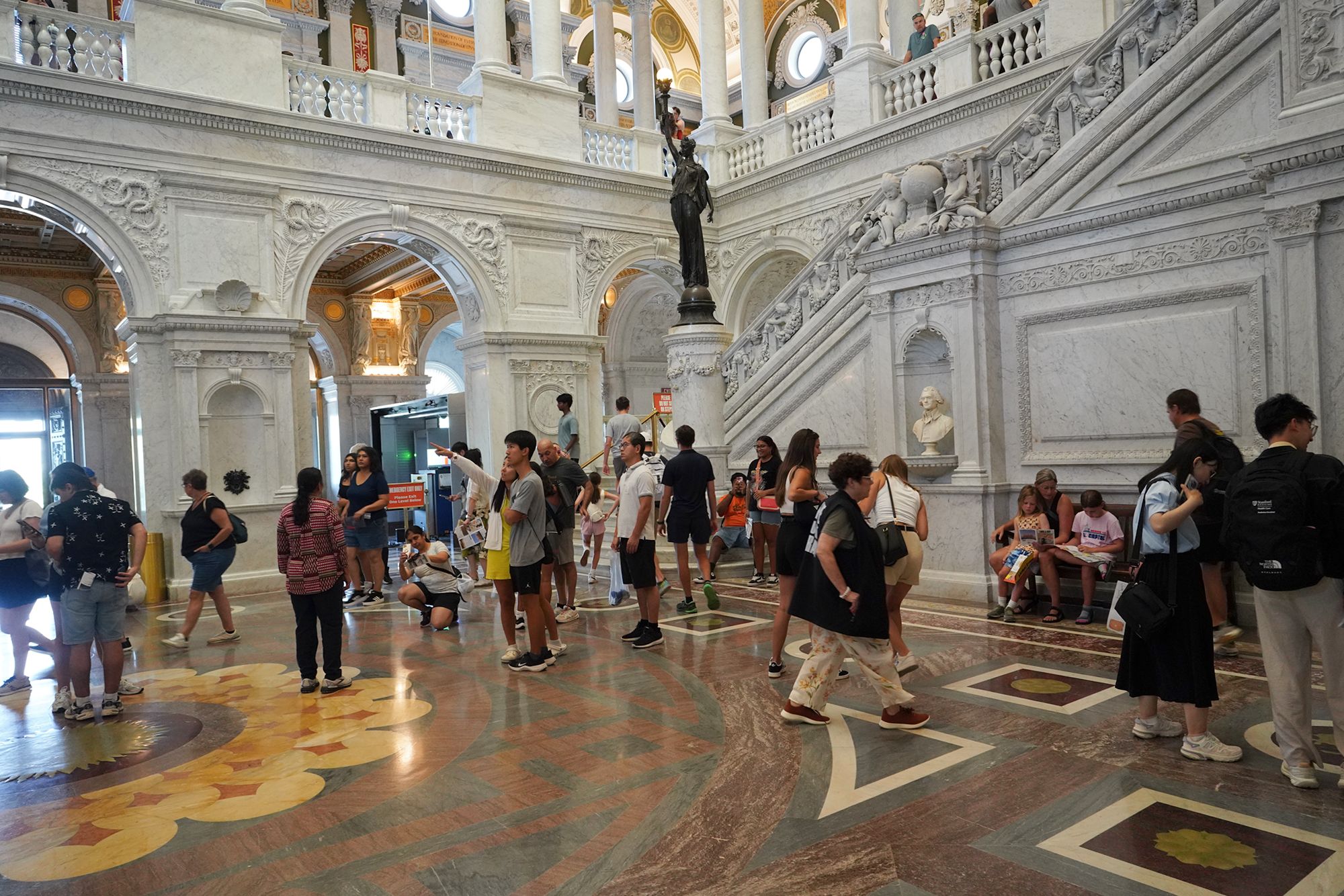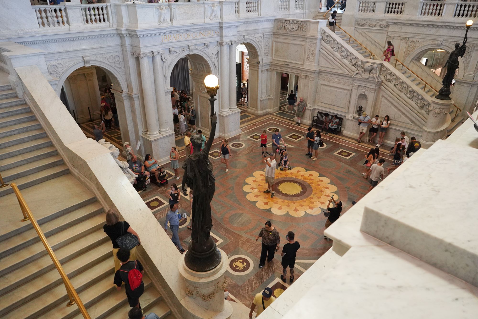 This level also provides access to the Main Reading Room overlook, where visitors can observe one of the most beautiful research spaces in the world—a domed chamber filled with desks, statues representing human knowledge, and the famous circular book delivery system.