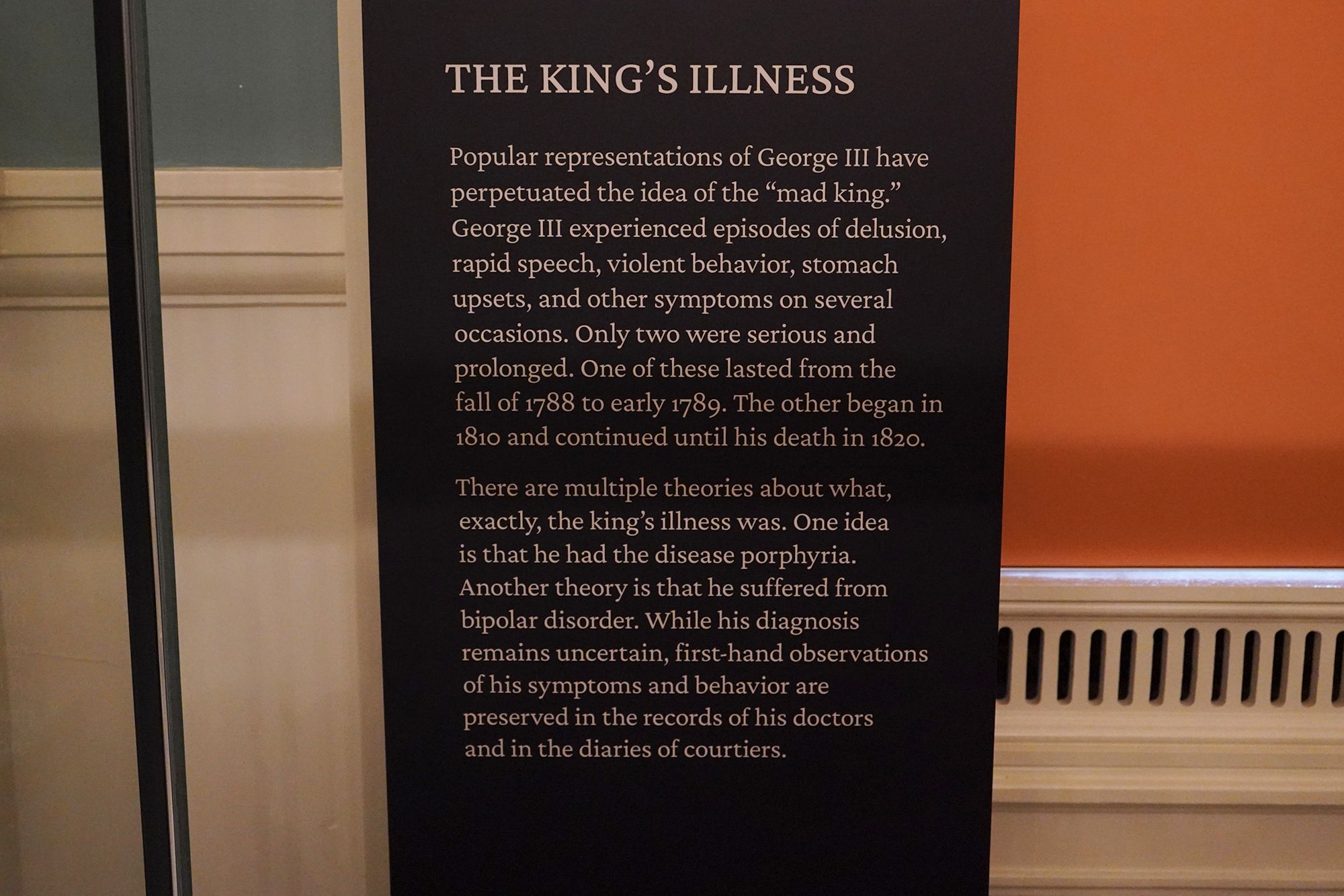King George III’s illness is one of the most well-known and tragic aspects of his life. He suffered from recurring bouts of mental illness, which modern historians and doctors believe may have been caused by bipolar disorder or a rare blood condition called porphyria.