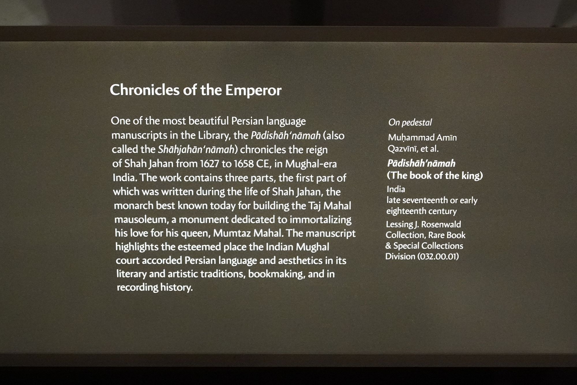 On the other side of the Library is a small museum area featuring additional exhibitions.