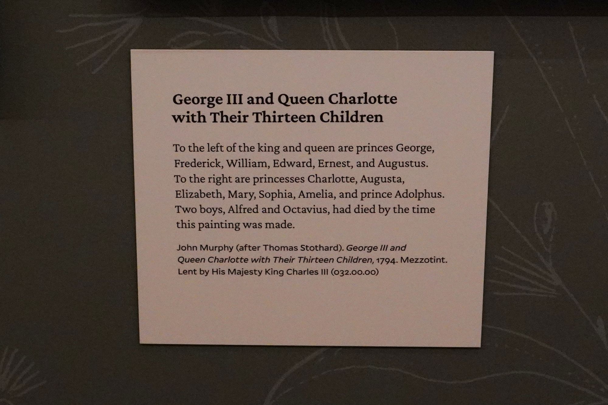 King George III, by contrast, had a large family. He and Queen Charlotte had 15 children—nine sons and six daughters—making them one of the largest royal families in British history.