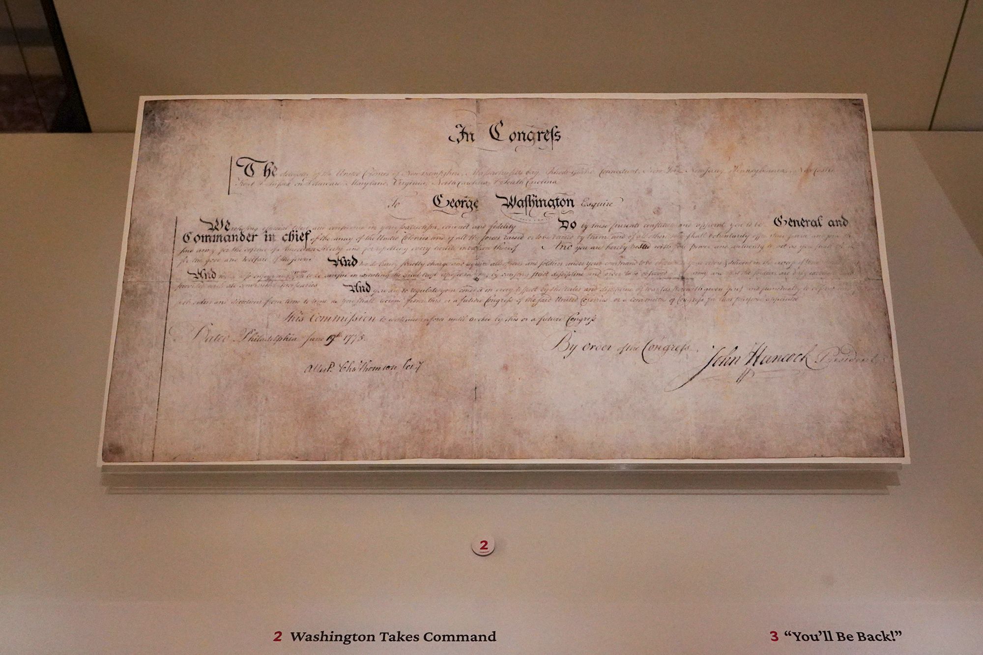 George Washington’s appointment as Commander-in-Chief of the Continental Army during the early stages of the American Revolution. On June 15, 1775, the Second Continental Congress unanimously chose Washington, recognizing his military experience, leadership, and reputation for integrity.