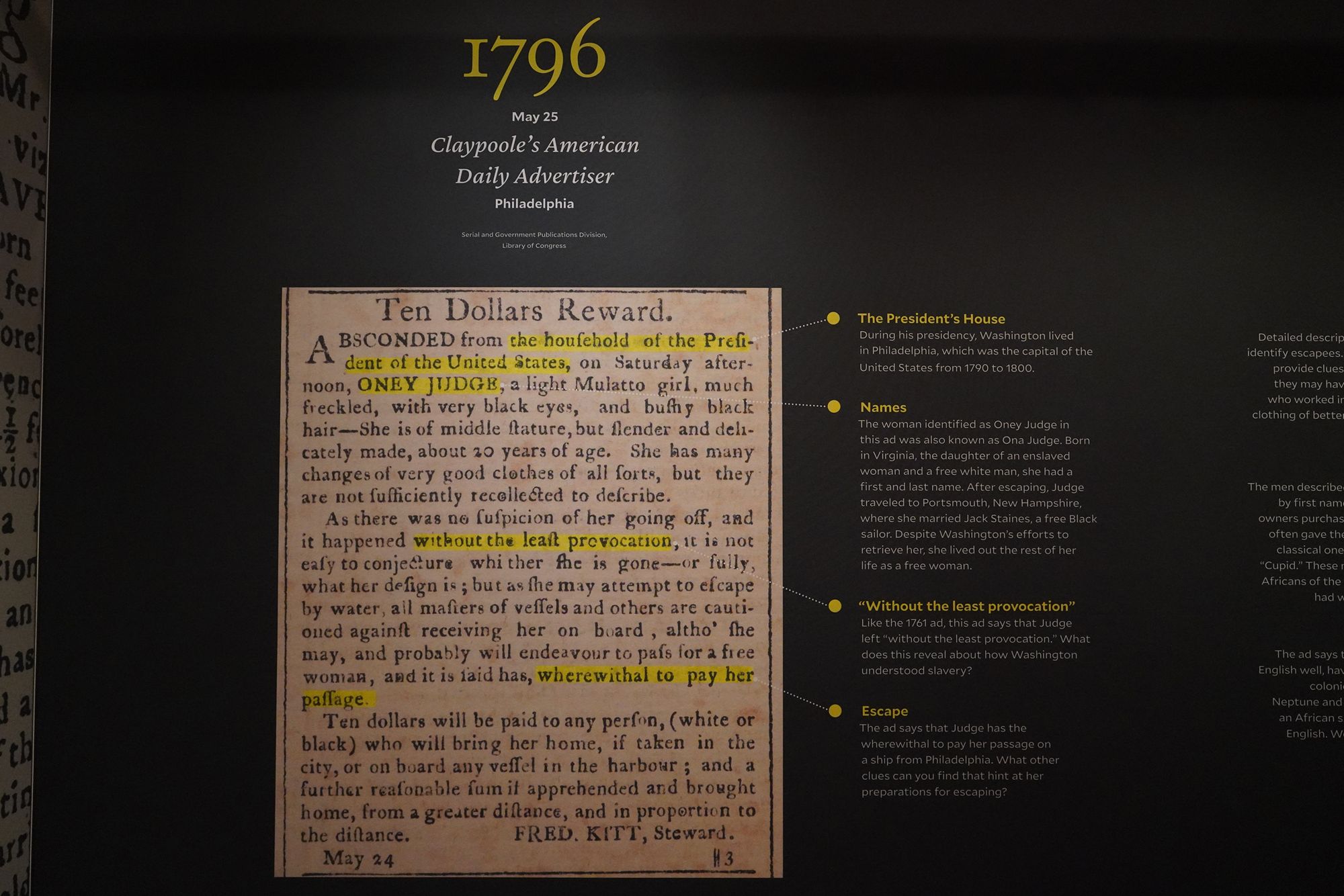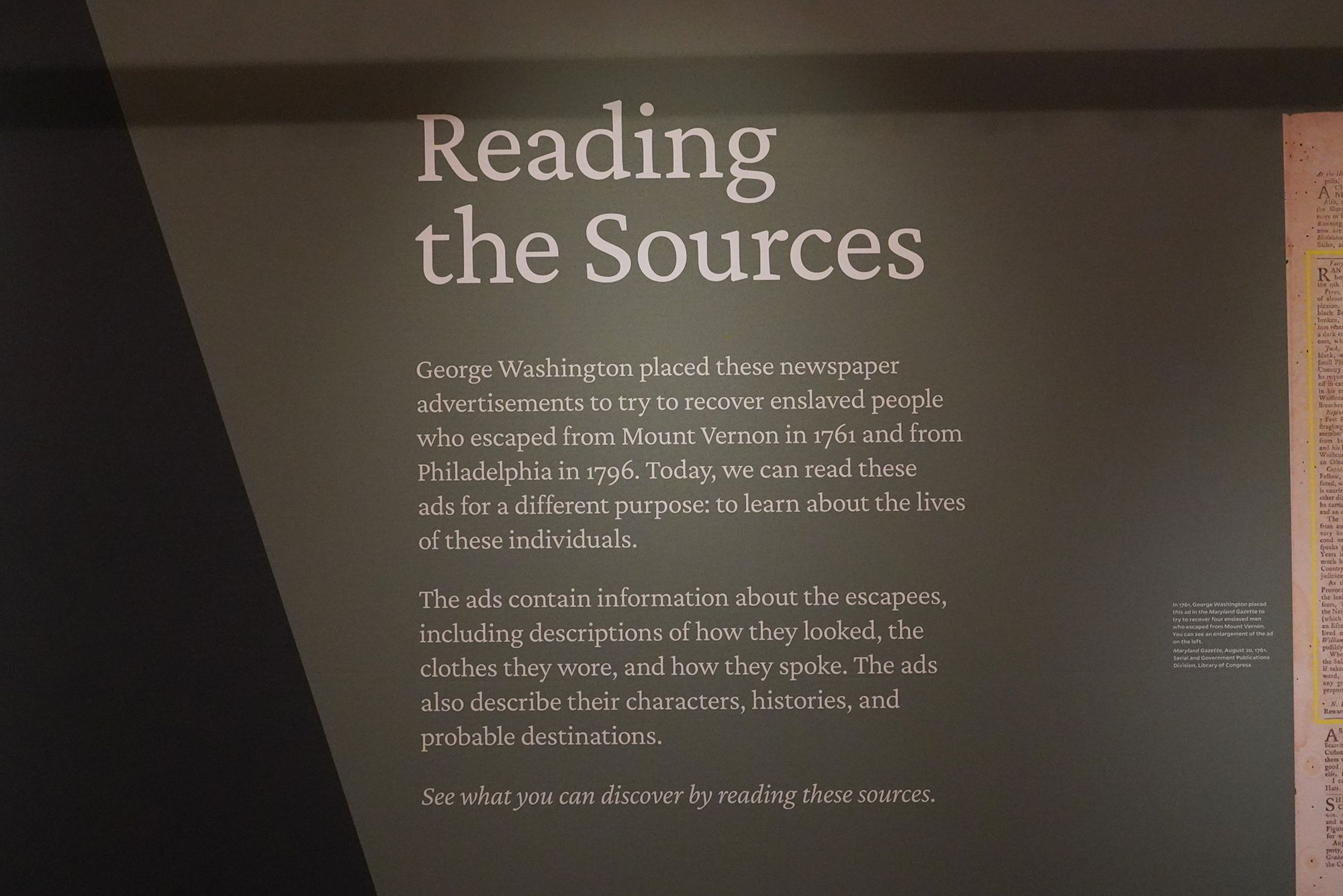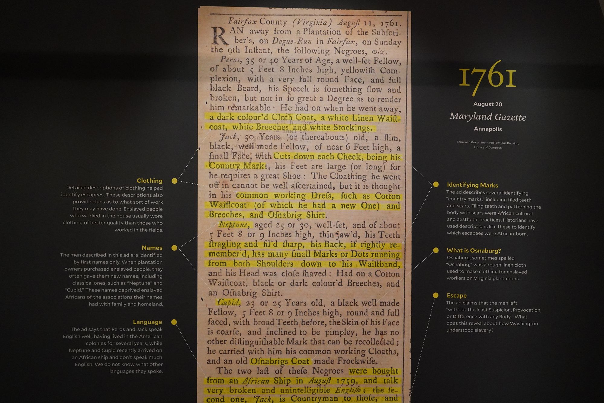 George Washington placed an advertisement seeking the capture and return of runaway enslaved people he owned.