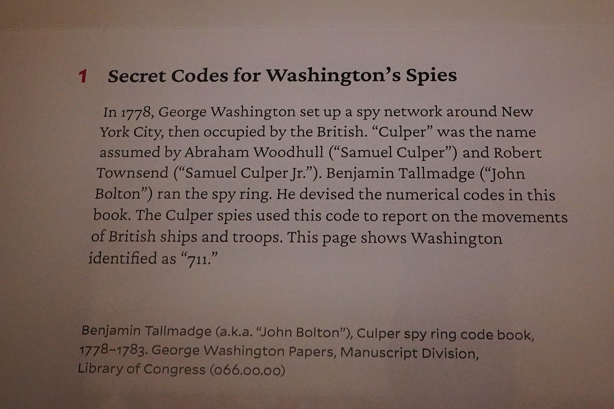 The secret codes of Washington’s spies were part of the Culper Spy Ring, a network organized by George Washington during the American Revolution to gather intelligence on British forces.