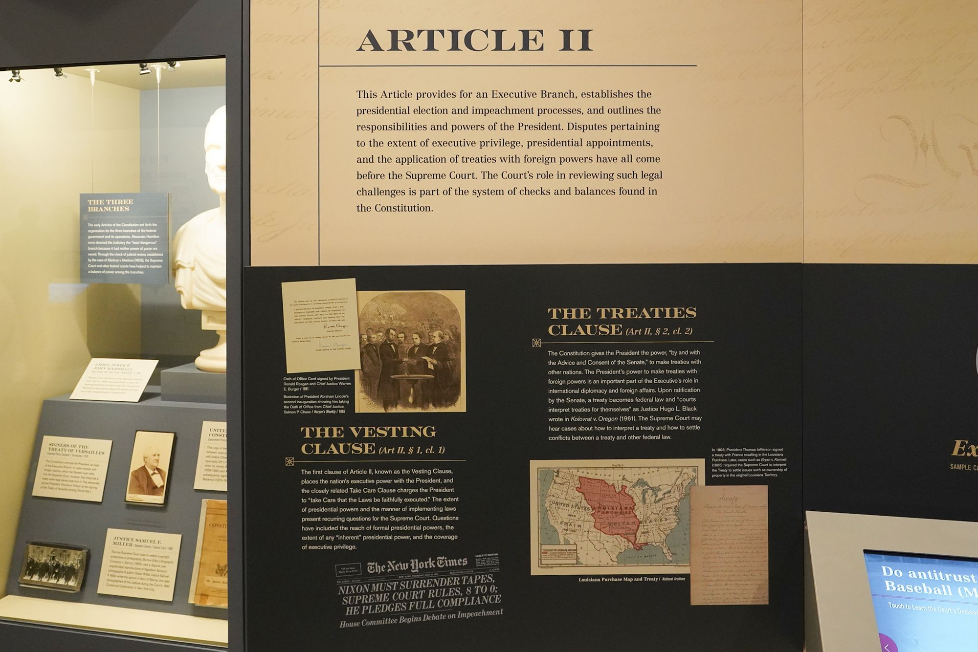 Article II – The Executive Branch: Defines the powers and duties of the President and Vice President.