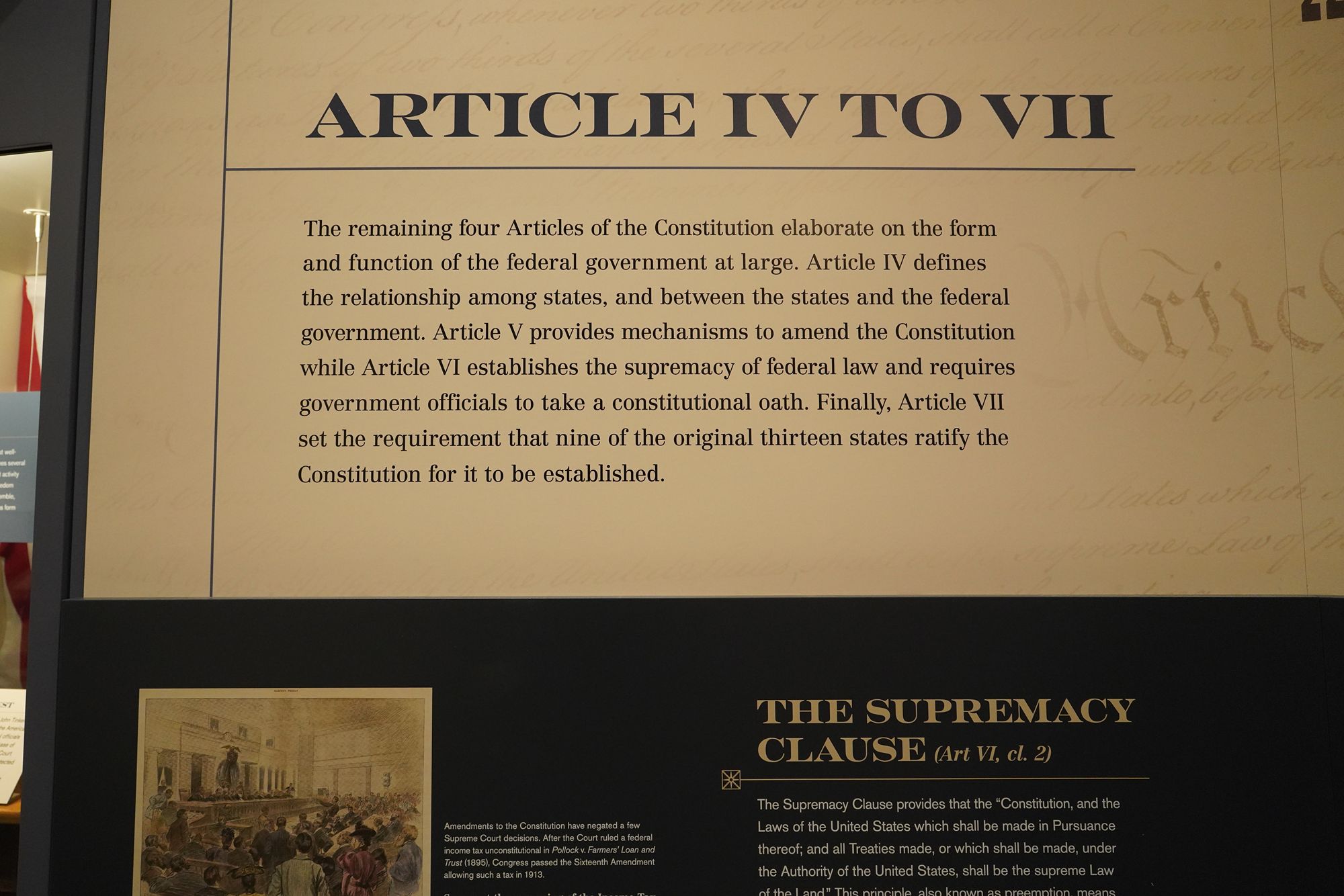 Article VI – Supremacy: Declares the Constitution and federal laws as the supreme law of the land.