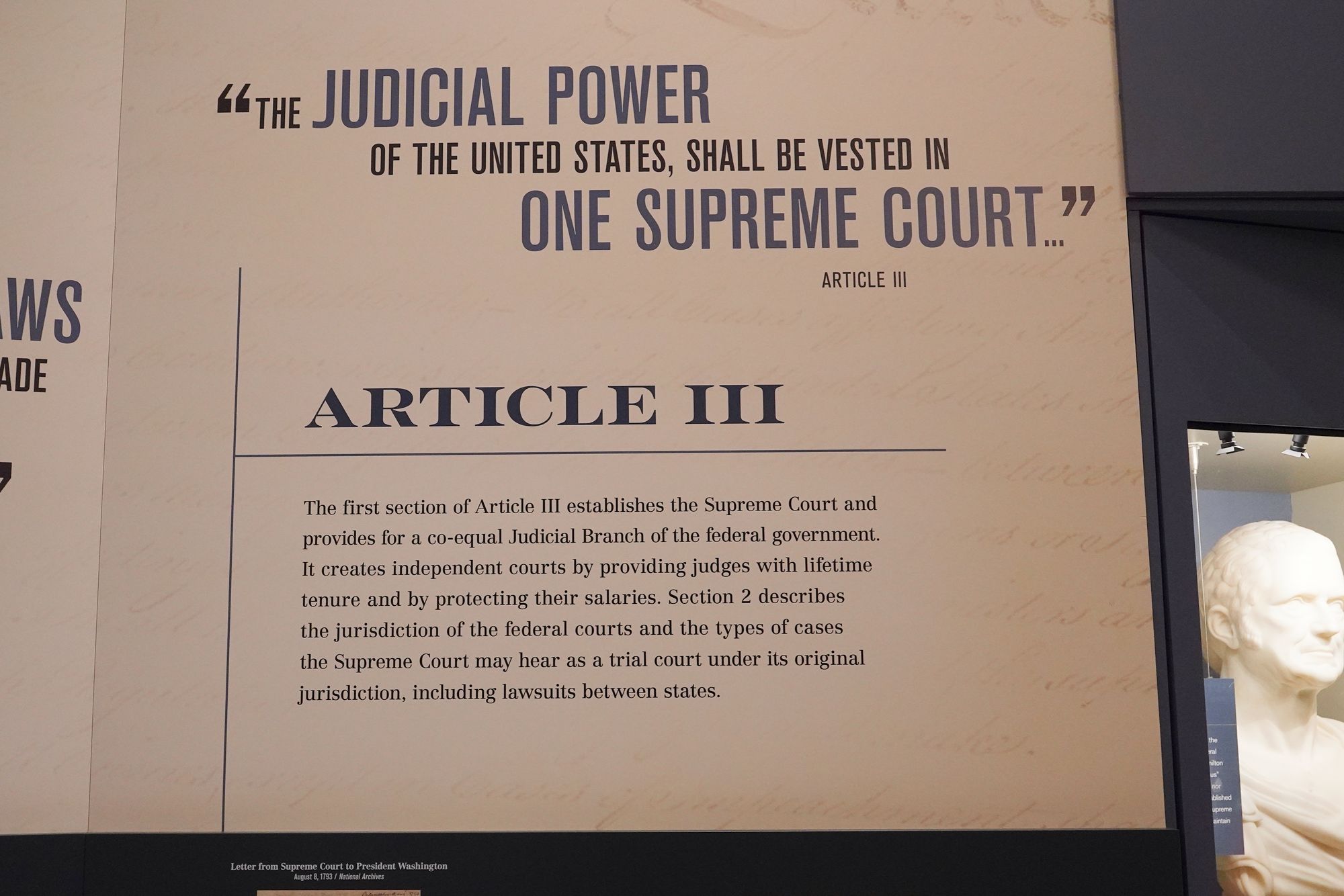 Article III – The Judicial Branch: Establishes the Supreme Court and other federal courts, describing their powers and responsibilities.
