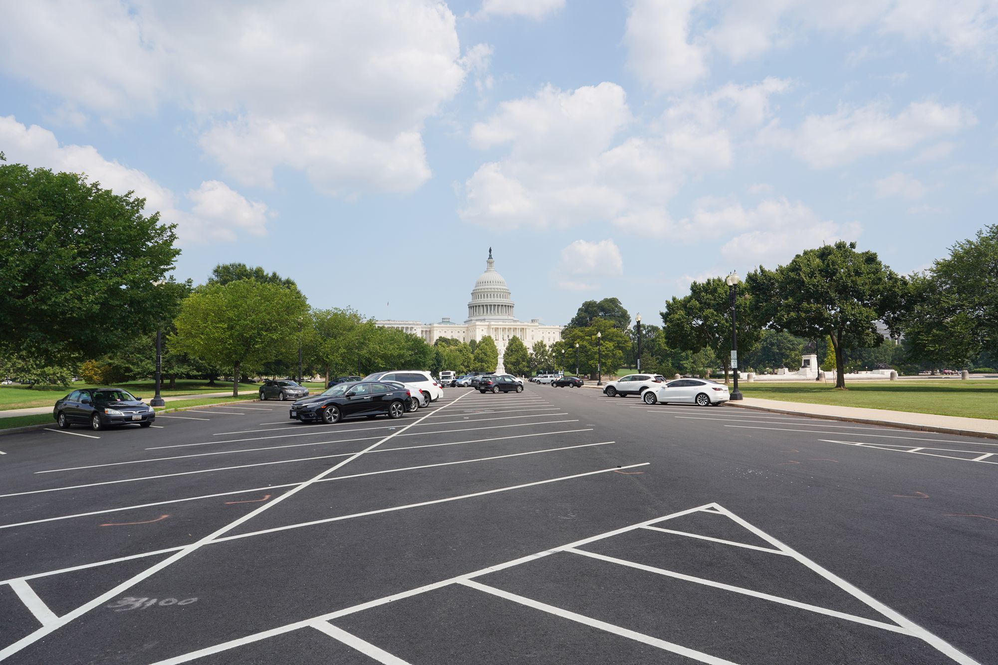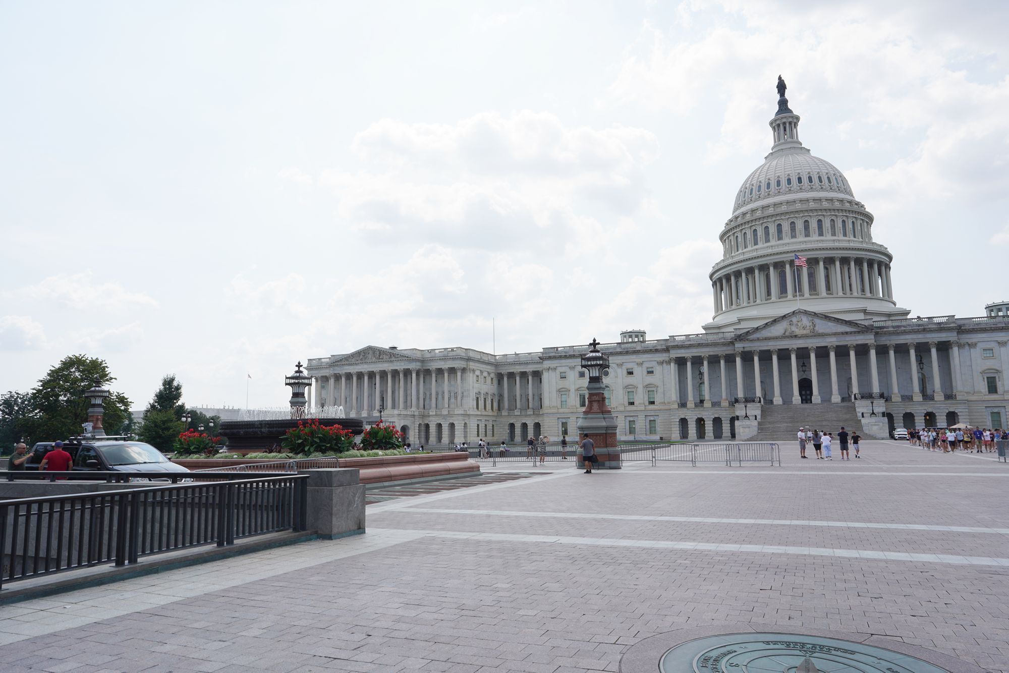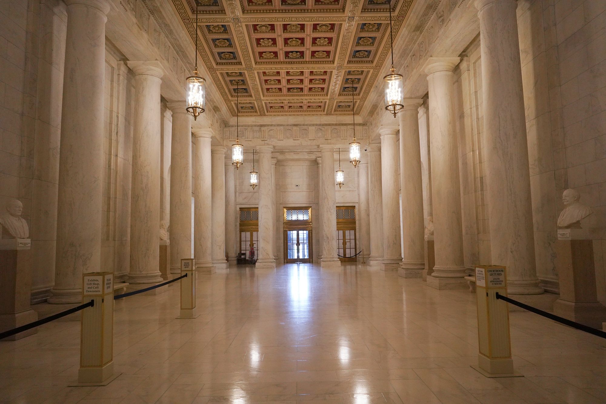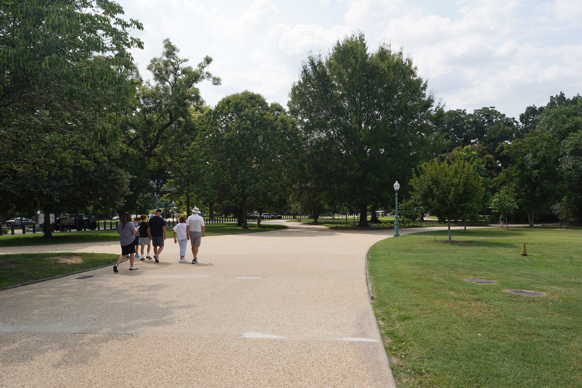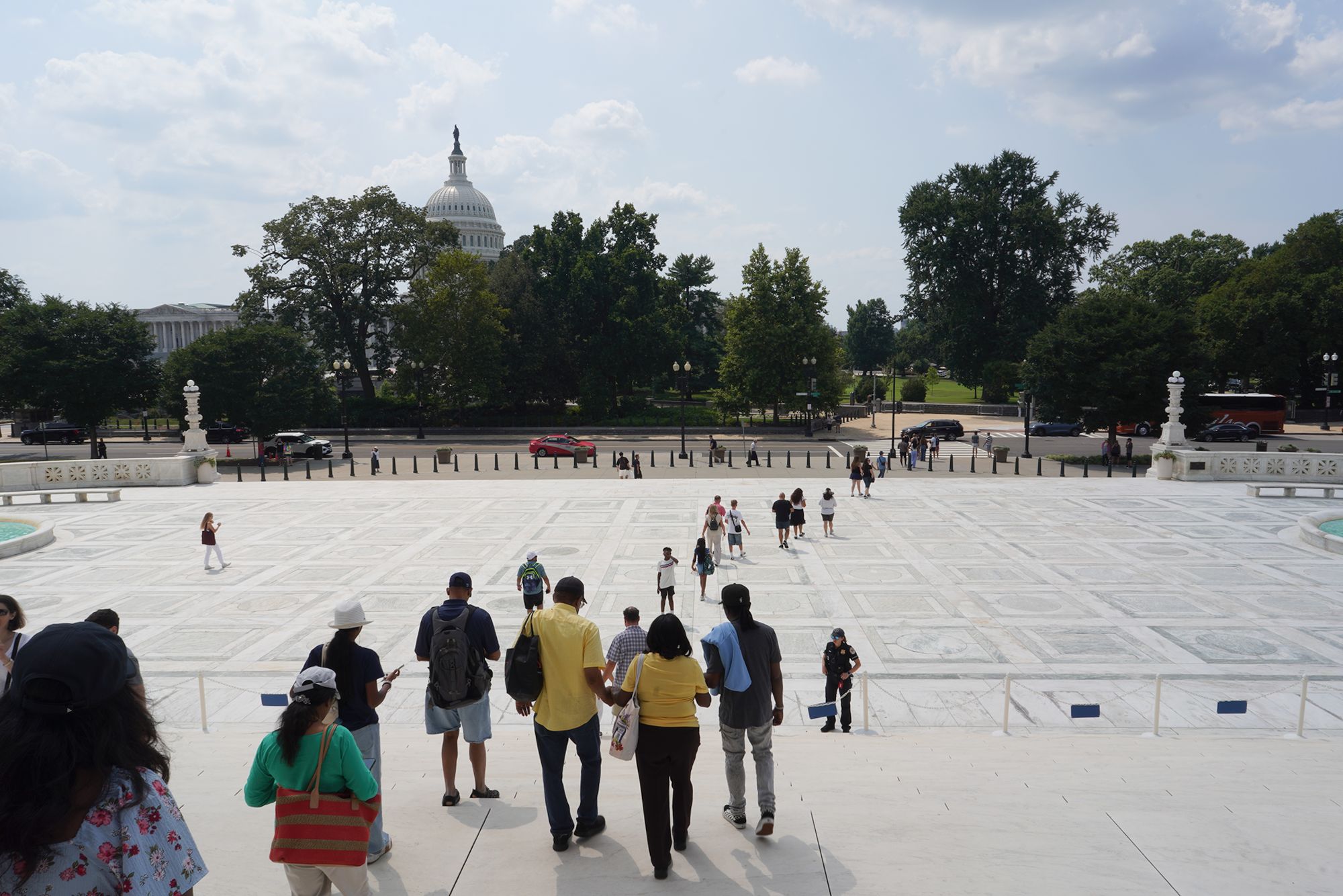 Across the street stands the U.S. Supreme Court, the highest court in the country. Its neoclassical building, completed in 1935, embodies justice and stability, with the inscription “Equal Justice Under Law” carved above its entrance.