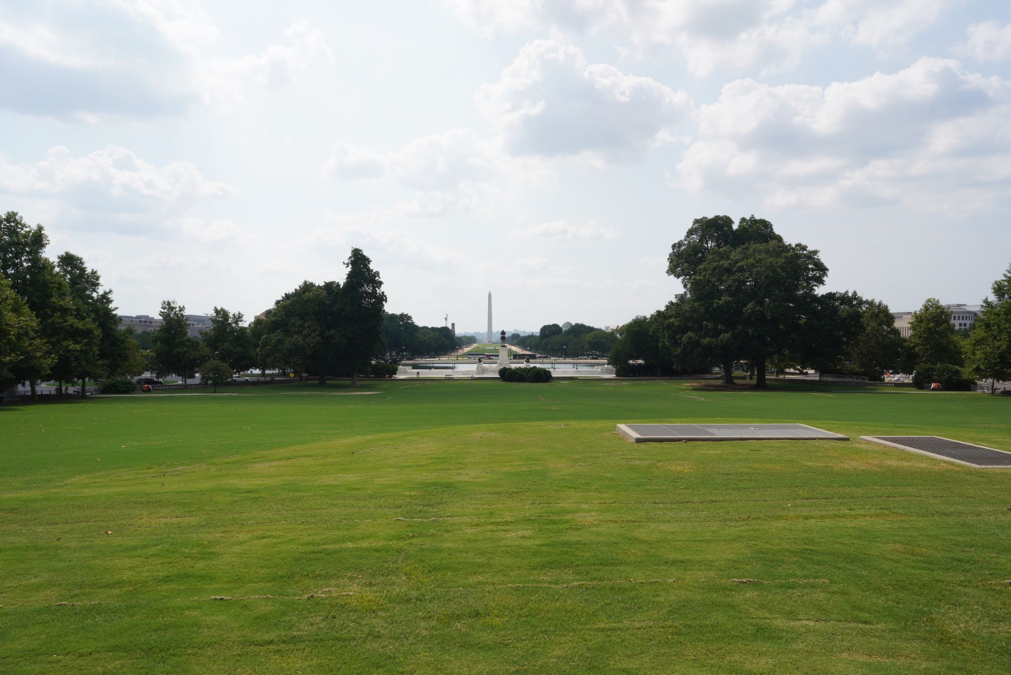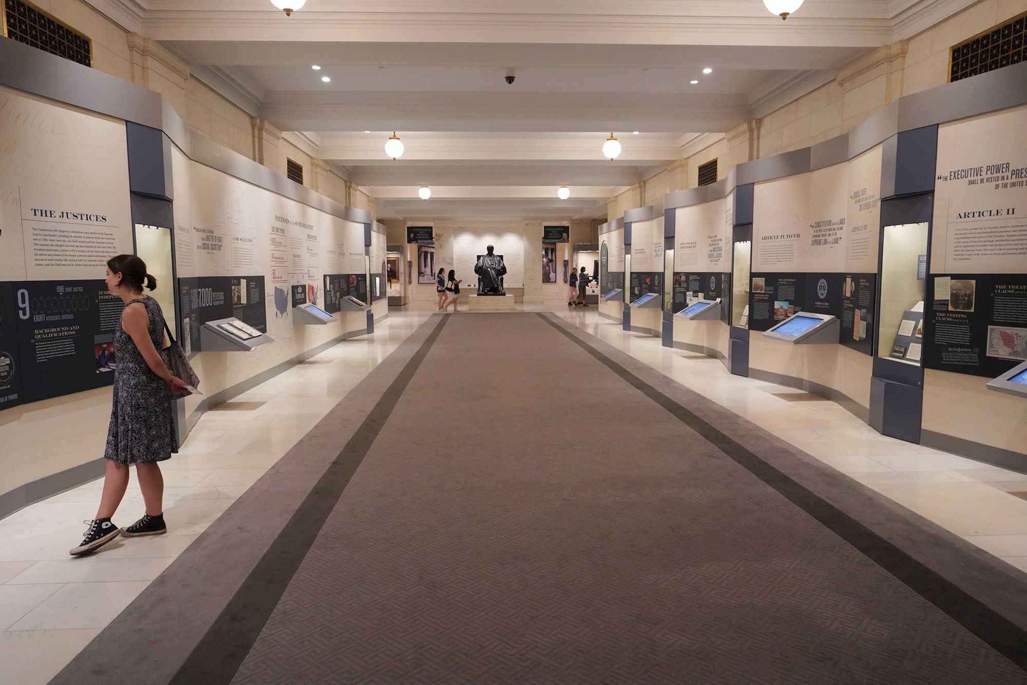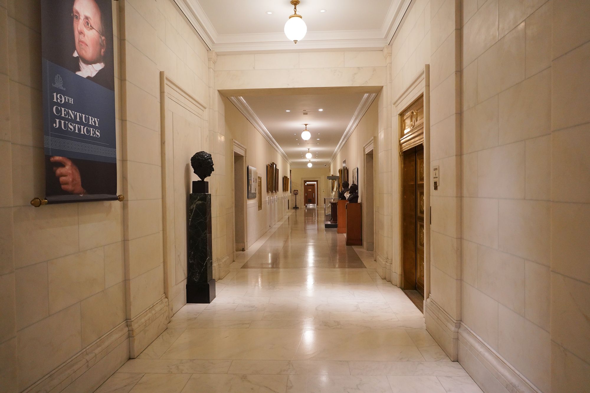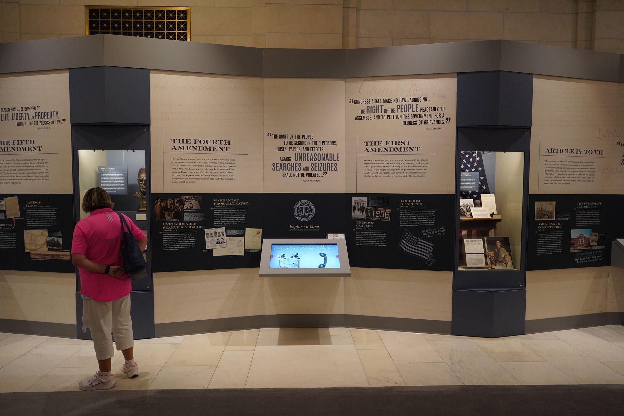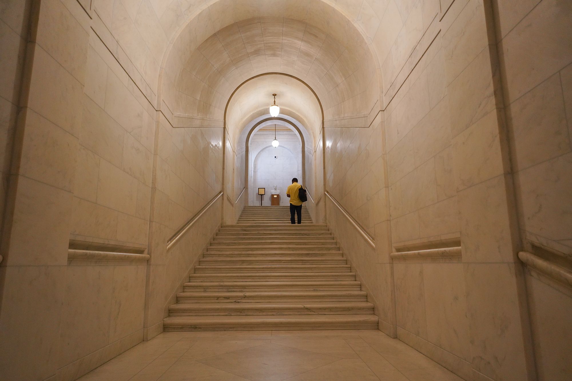 Across the street stands the U.S. Supreme Court, the highest court in the country. Its neoclassical building, completed in 1935, embodies justice and stability, with the inscription “Equal Justice Under Law” carved above its entrance.