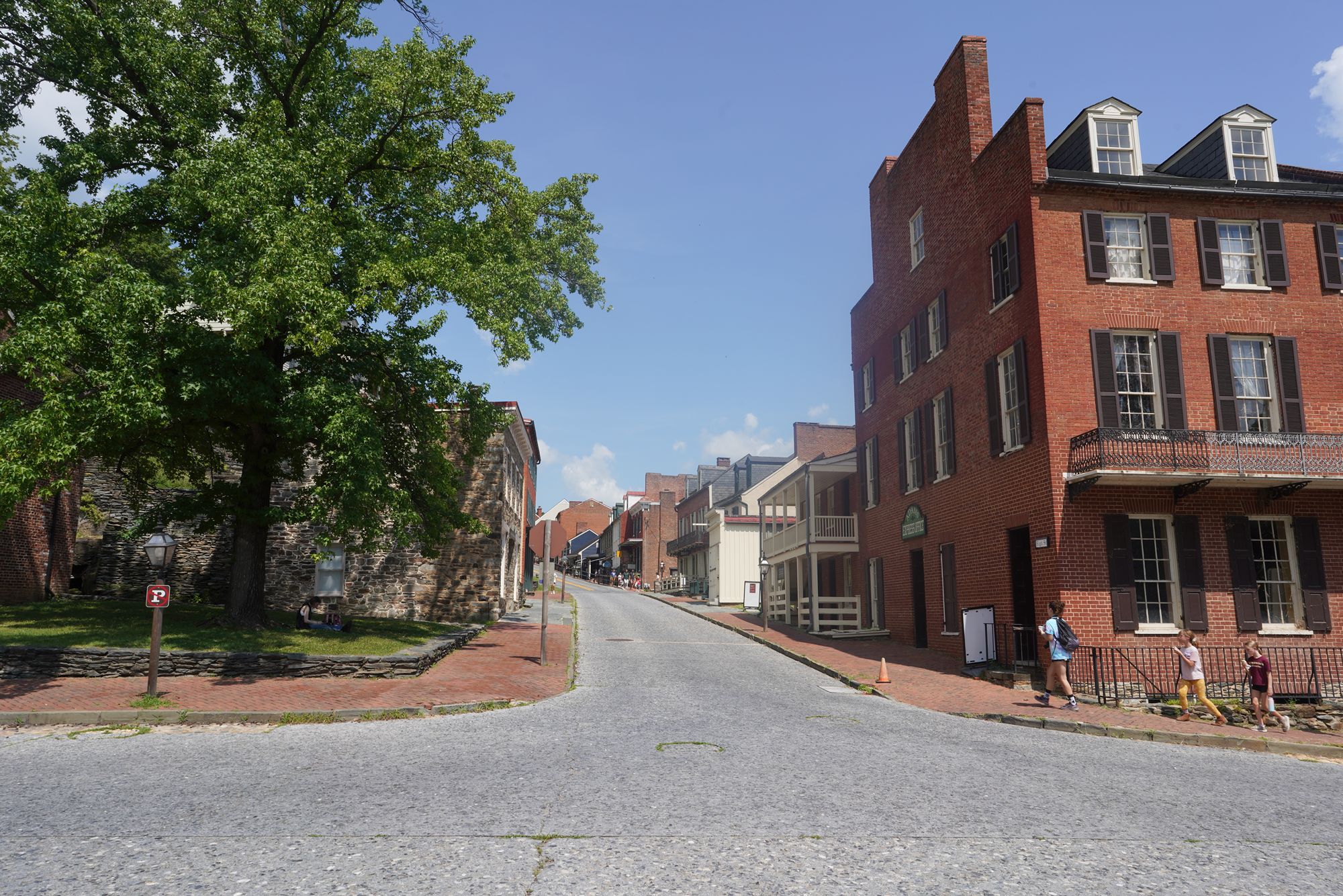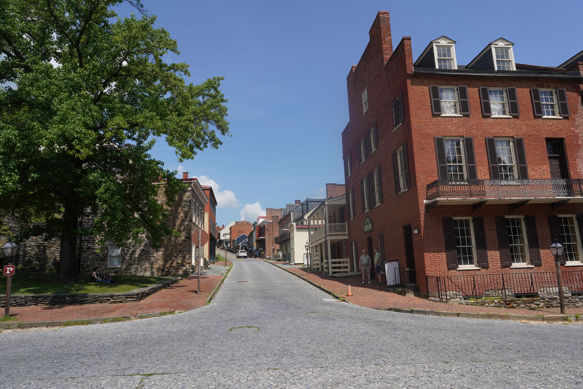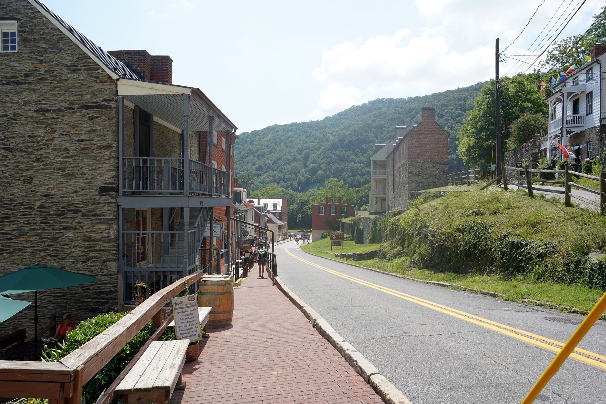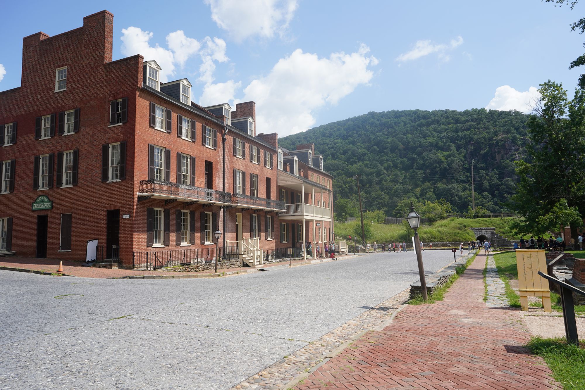 Harpers Ferry’s preserved historic town features 19th-century buildings, narrow streets, and exhibits related to John Brown’s raid, Civil War occupations, and early industry, set at the scenic confluence of two rivers and surrounded by steep, forested hills. There is no resident here. The houses are part of the preserved park.