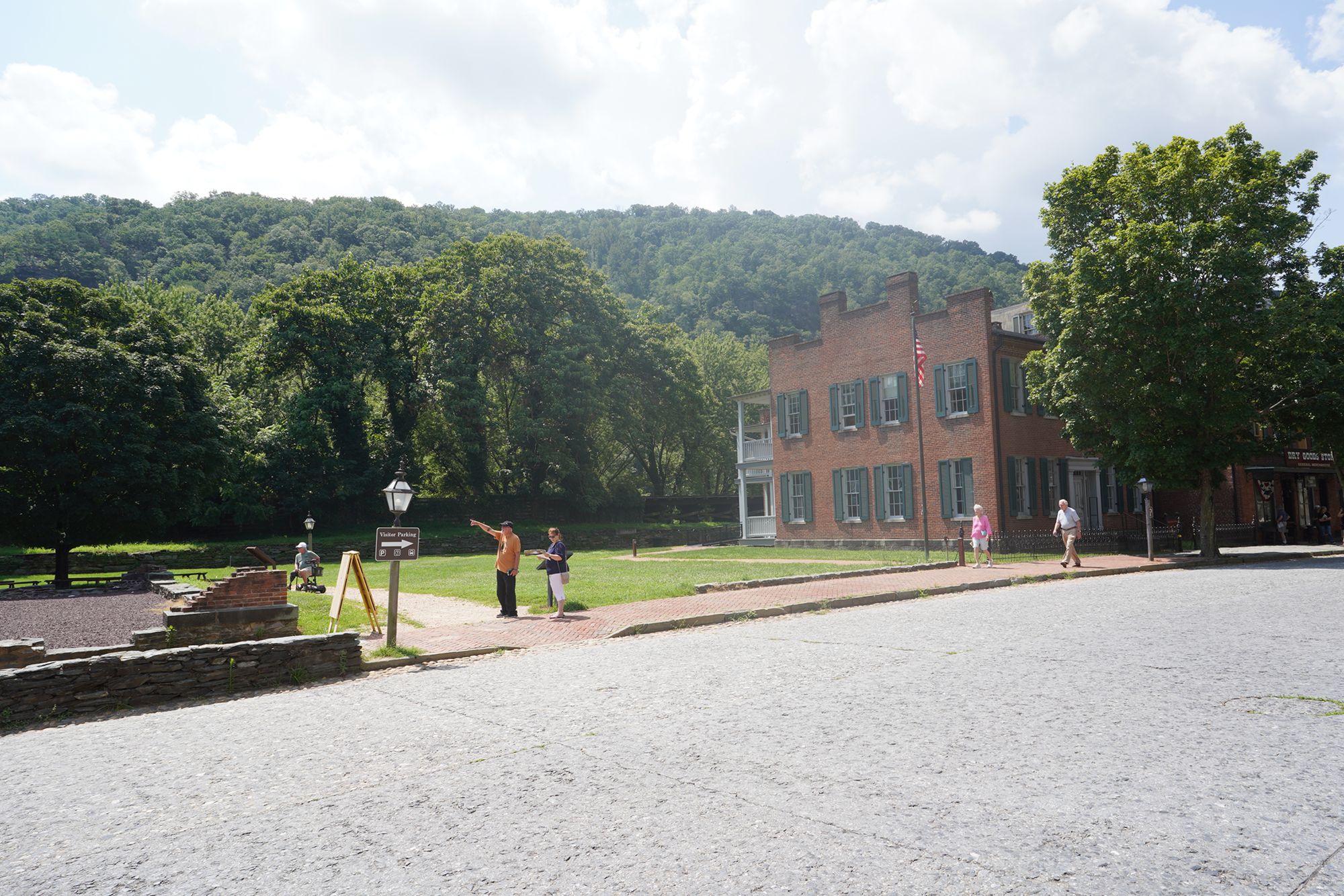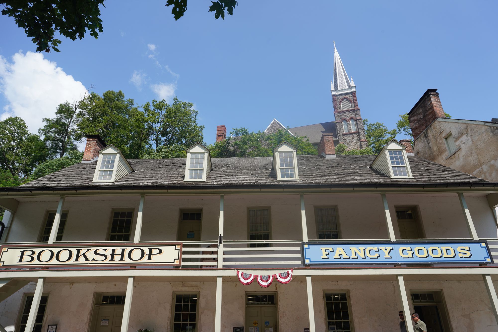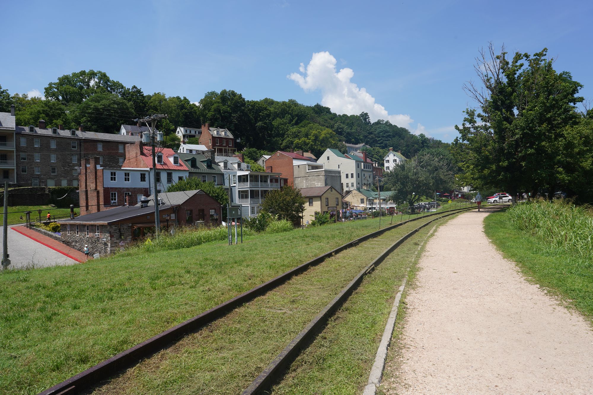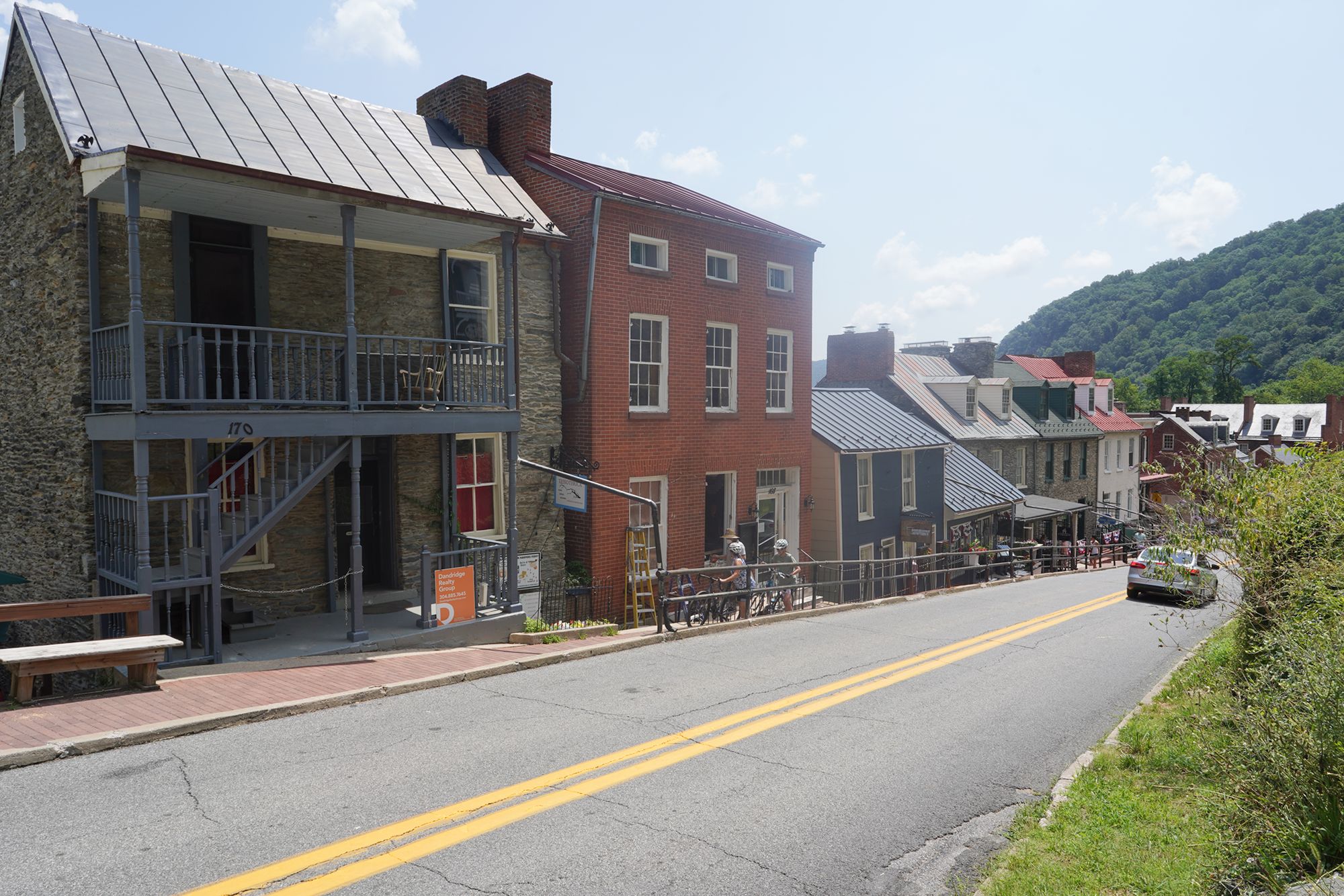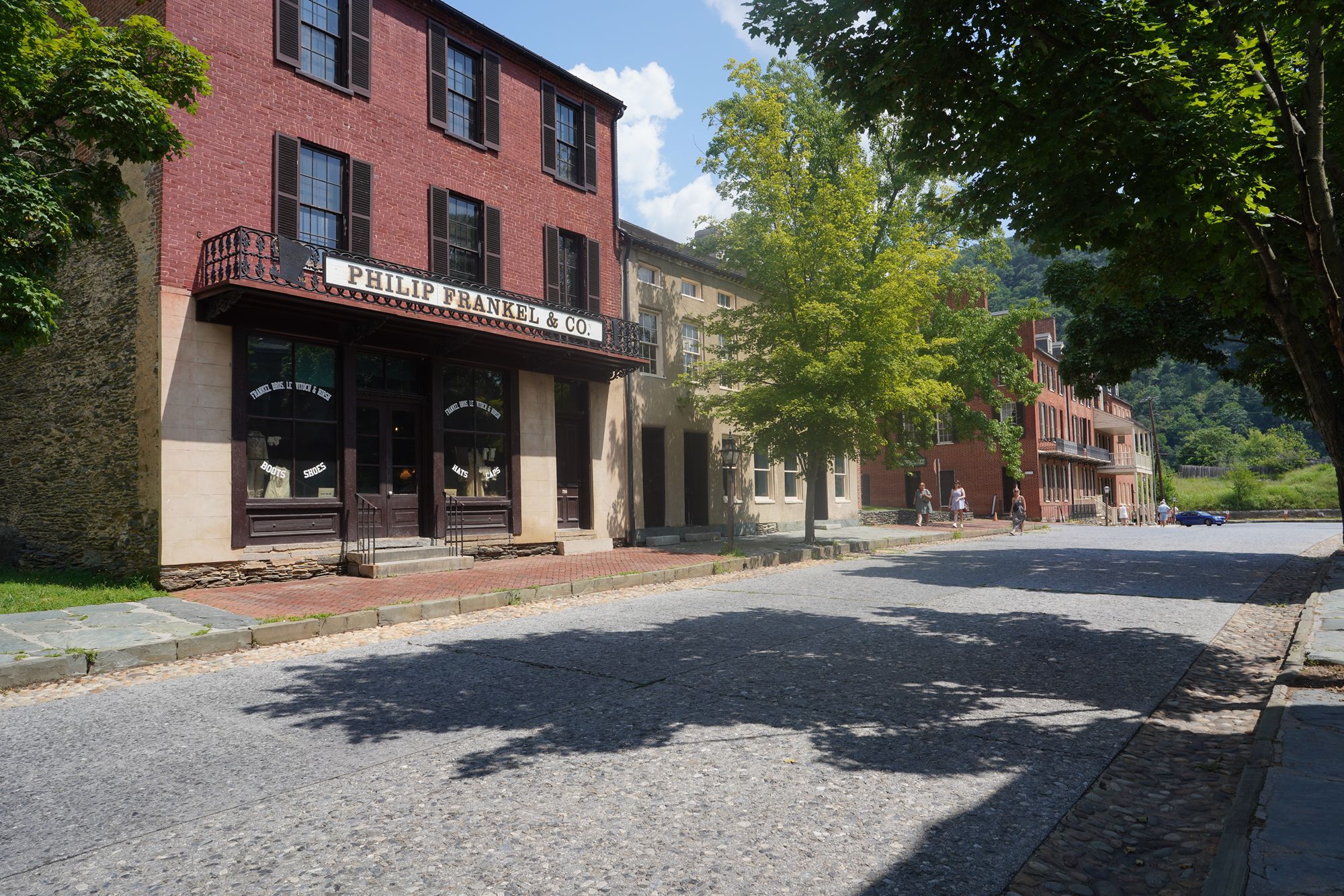 Harpers Ferry’s preserved historic town features 19th-century buildings, narrow streets, and exhibits related to John Brown’s raid, Civil War occupations, and early industry, set at the scenic confluence of two rivers and surrounded by steep, forested hills. There is no resident here. The houses are part of the preserved park.
