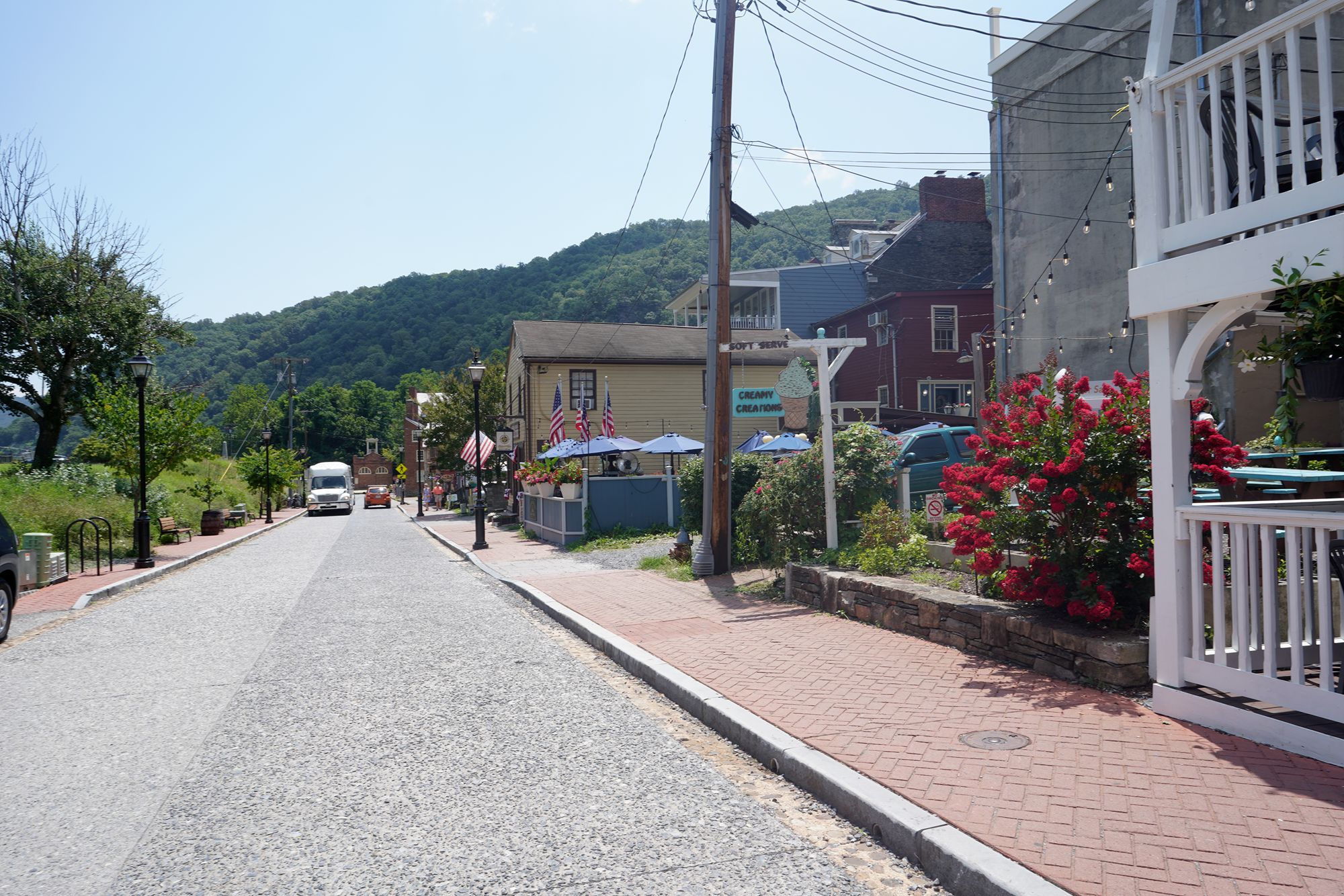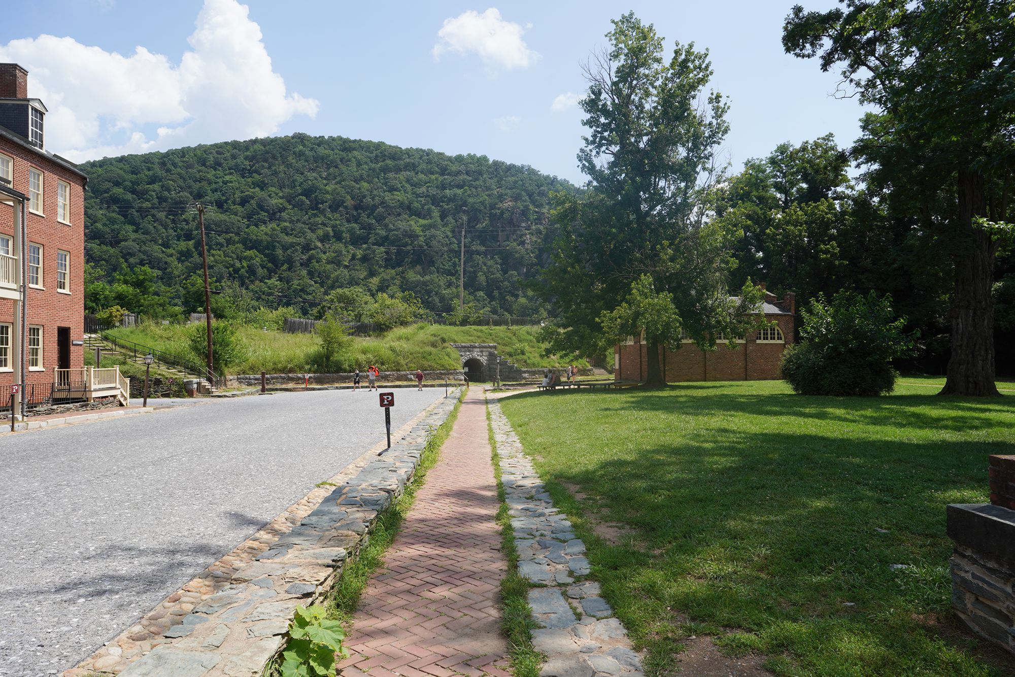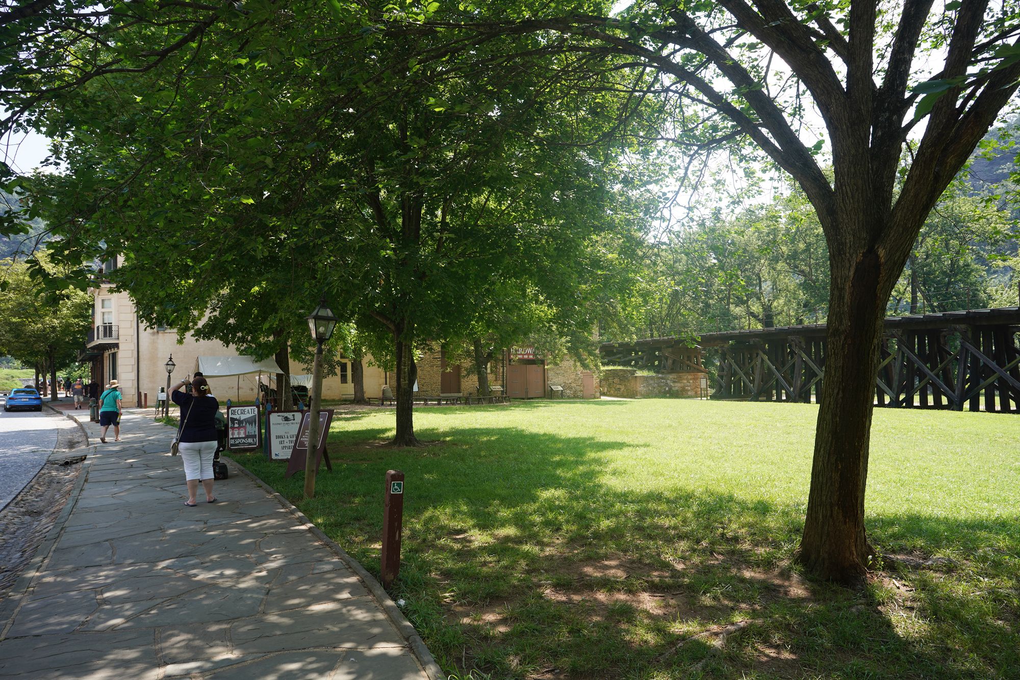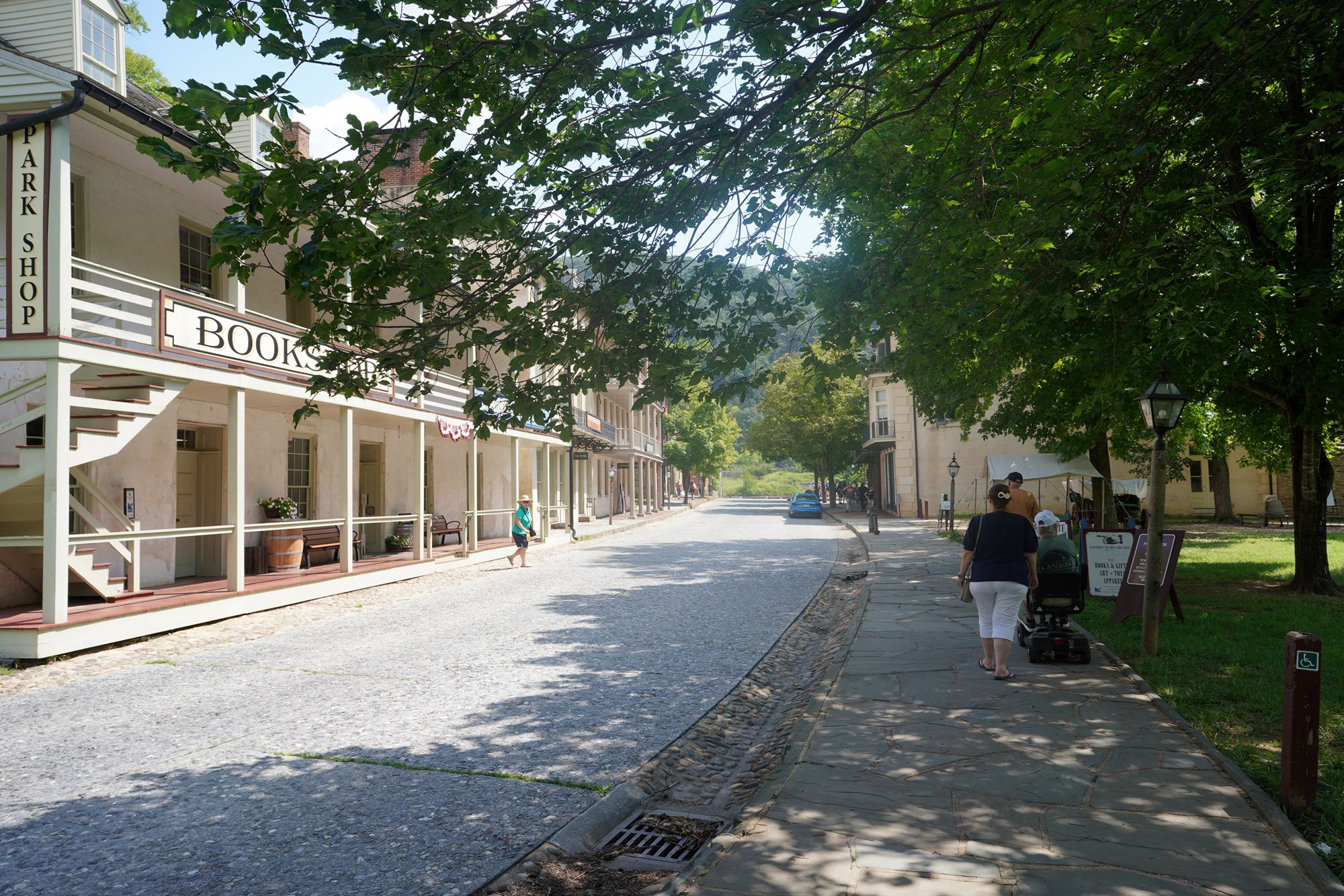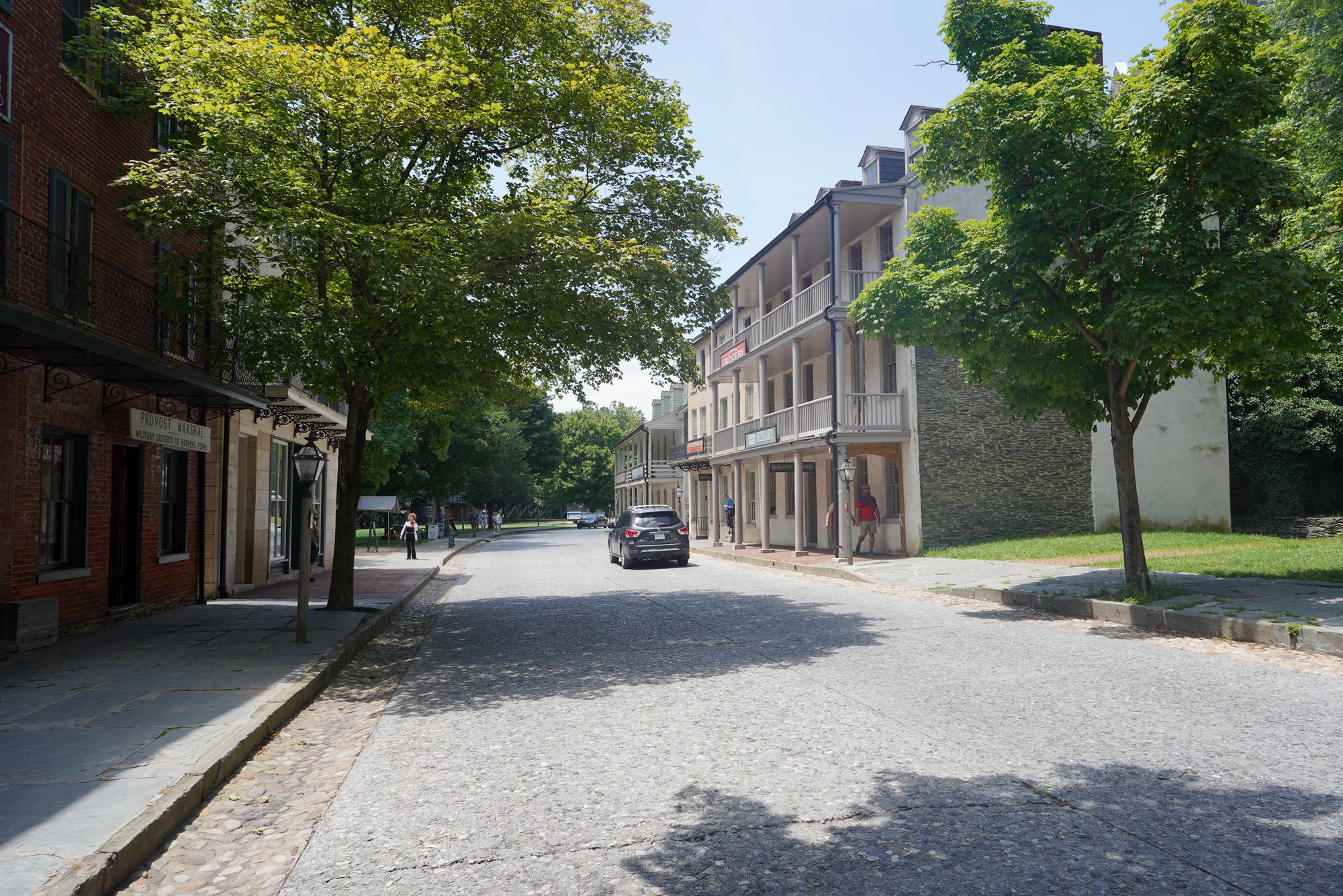 Harpers Ferry’s preserved historic town features 19th-century buildings, narrow streets, and exhibits related to John Brown’s raid, Civil War occupations, and early industry, set at the scenic confluence of two rivers and surrounded by steep, forested hills. There is no resident here. The houses are part of the preserved park.