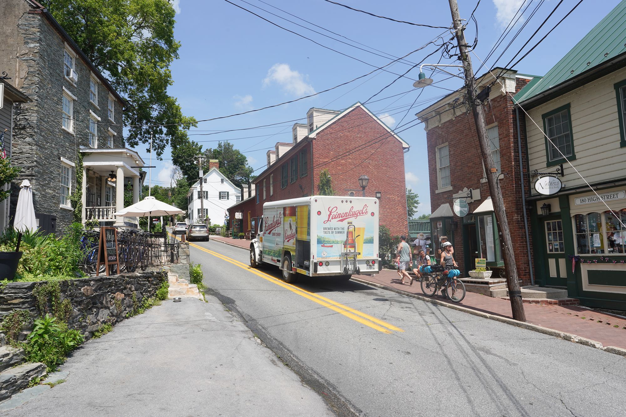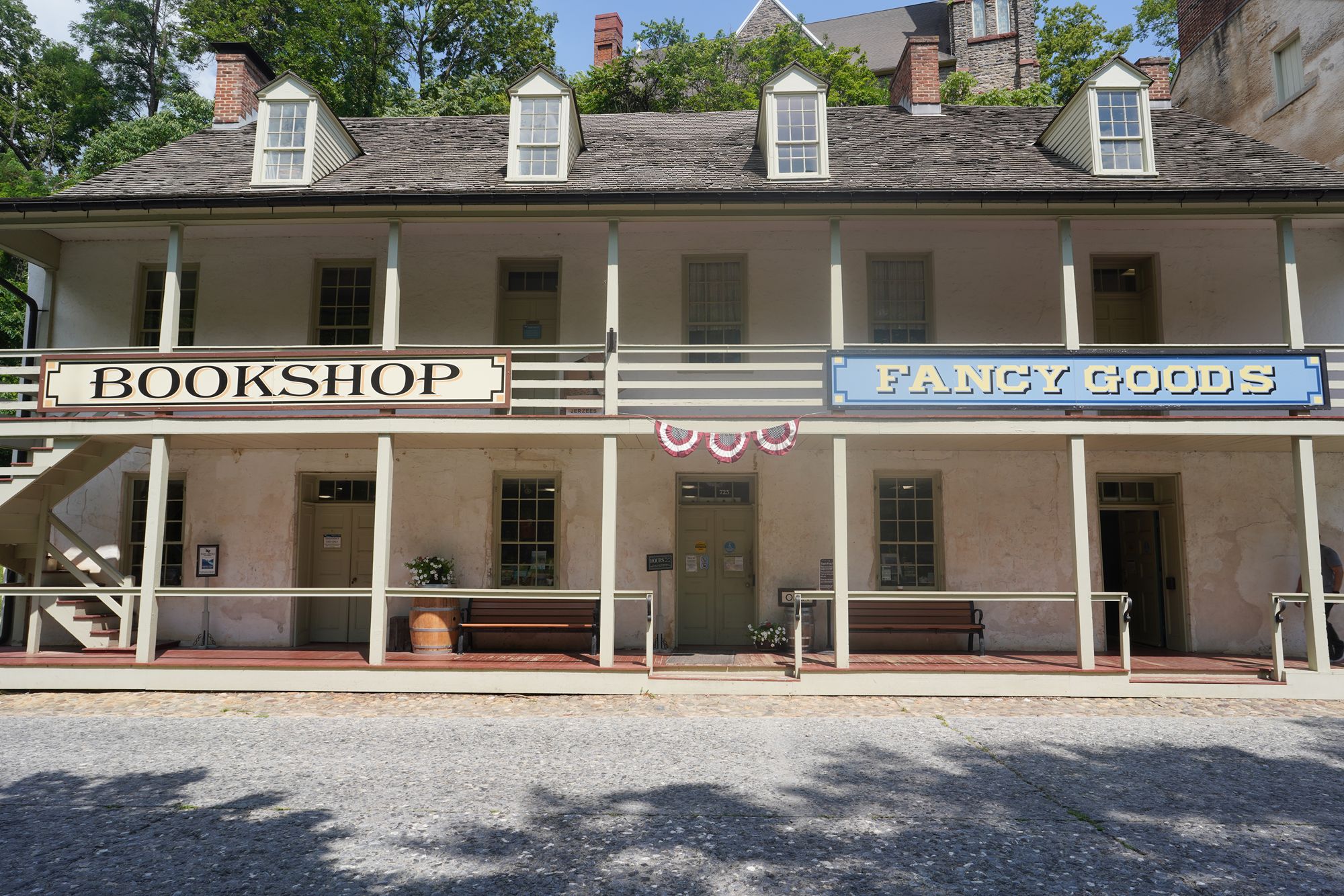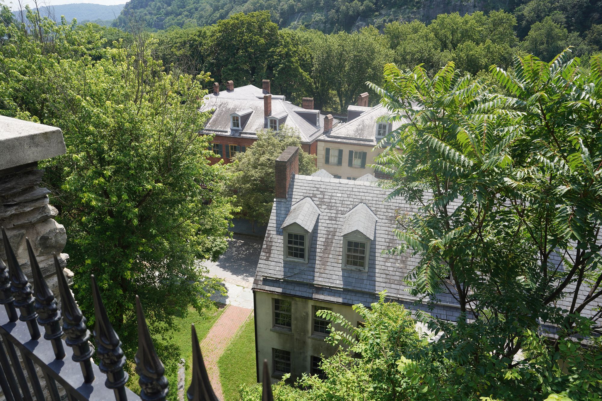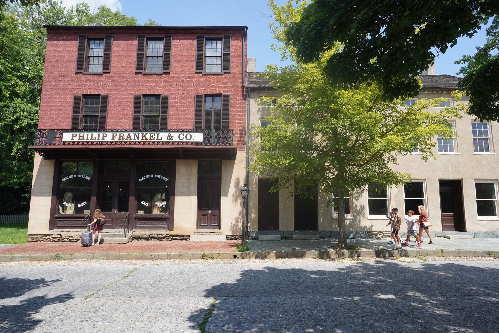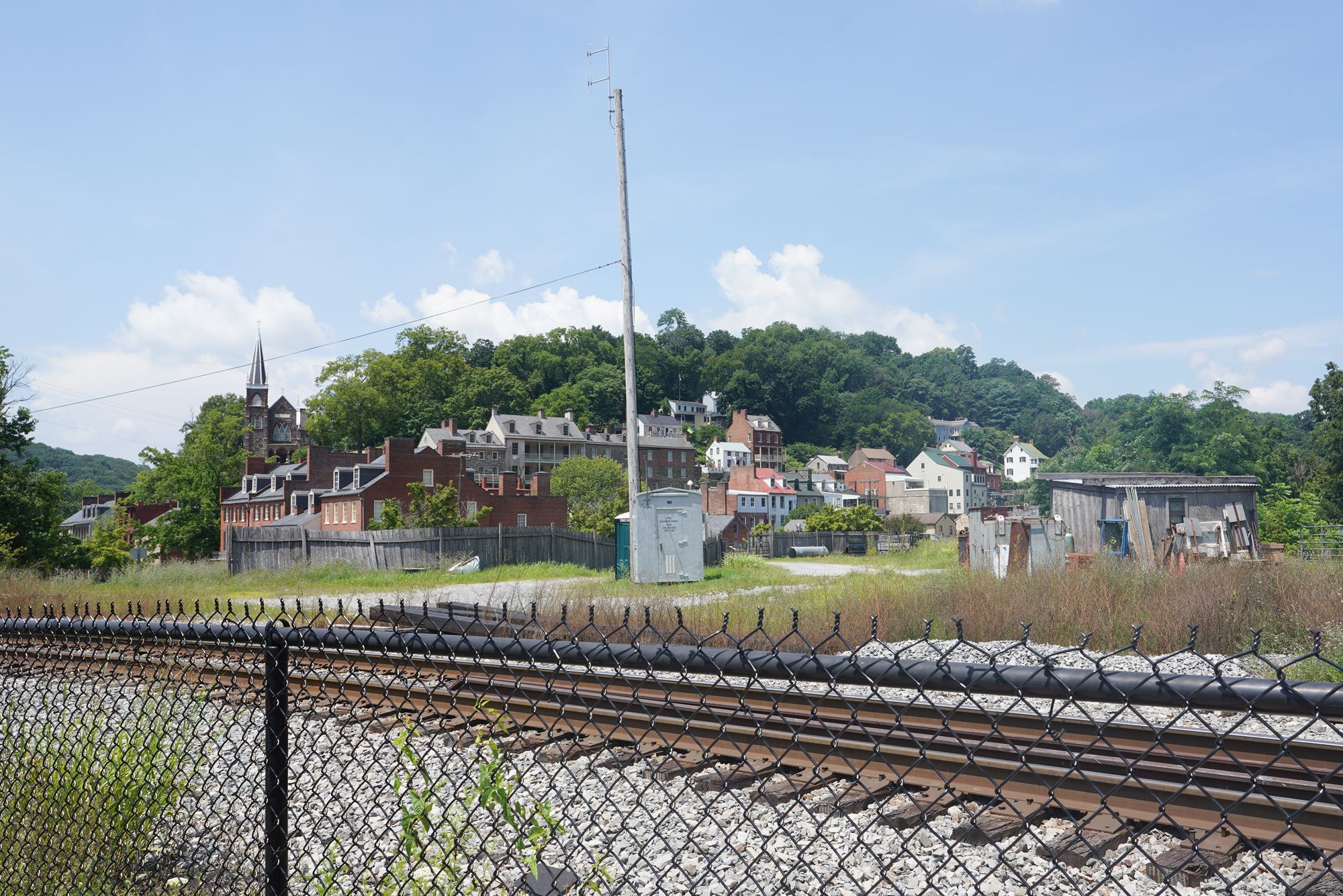 Harpers Ferry’s preserved historic town features 19th-century buildings, narrow streets, and exhibits related to John Brown’s raid, Civil War occupations, and early industry, set at the scenic confluence of two rivers and surrounded by steep, forested hills. There is no resident here. The houses are part of the preserved park.