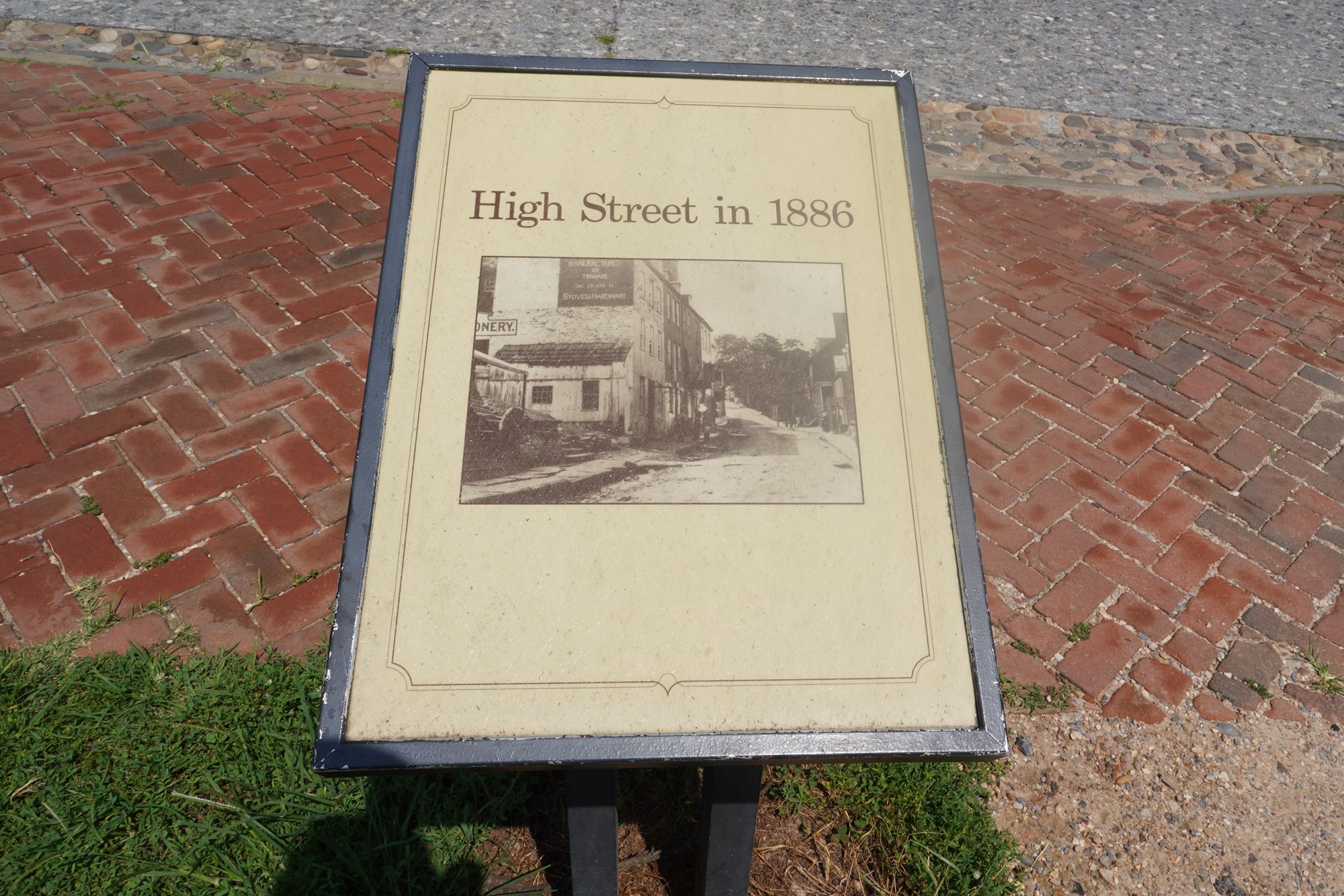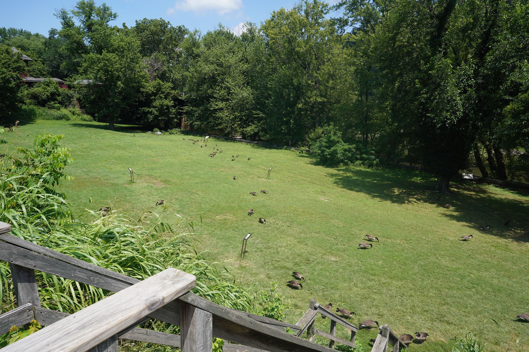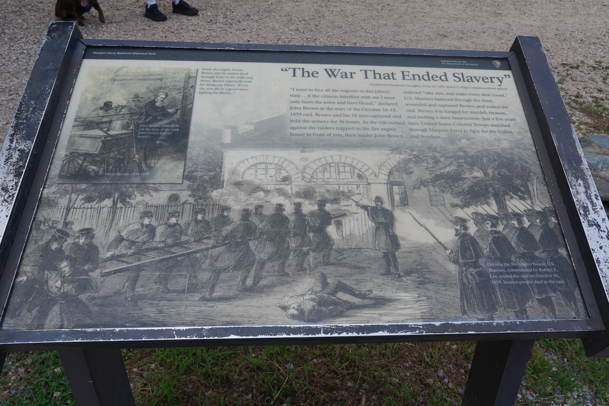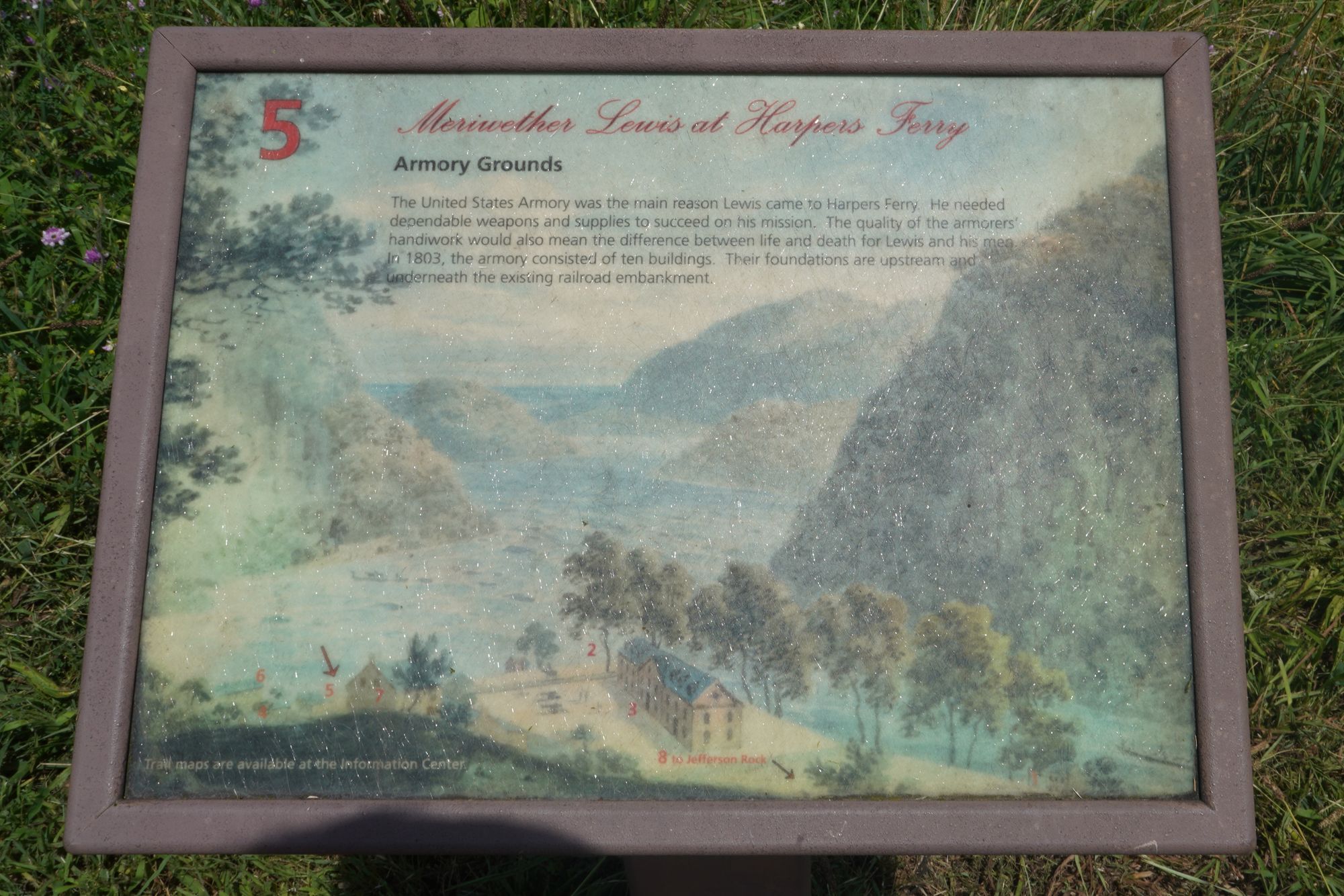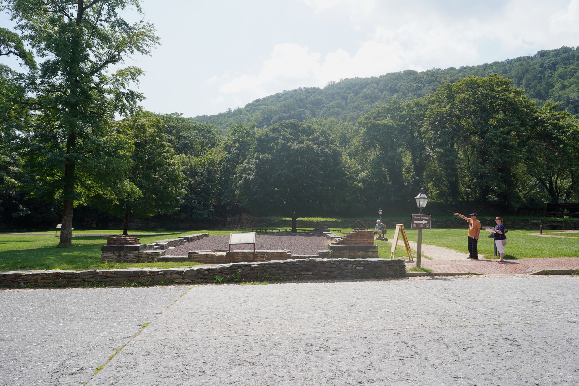One of the Armory buildings, which was destroyed during the Civil War and by later floods, leaving only foundations and interpretive signage.