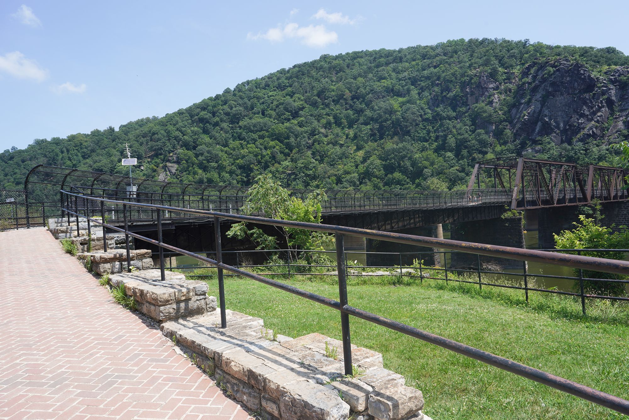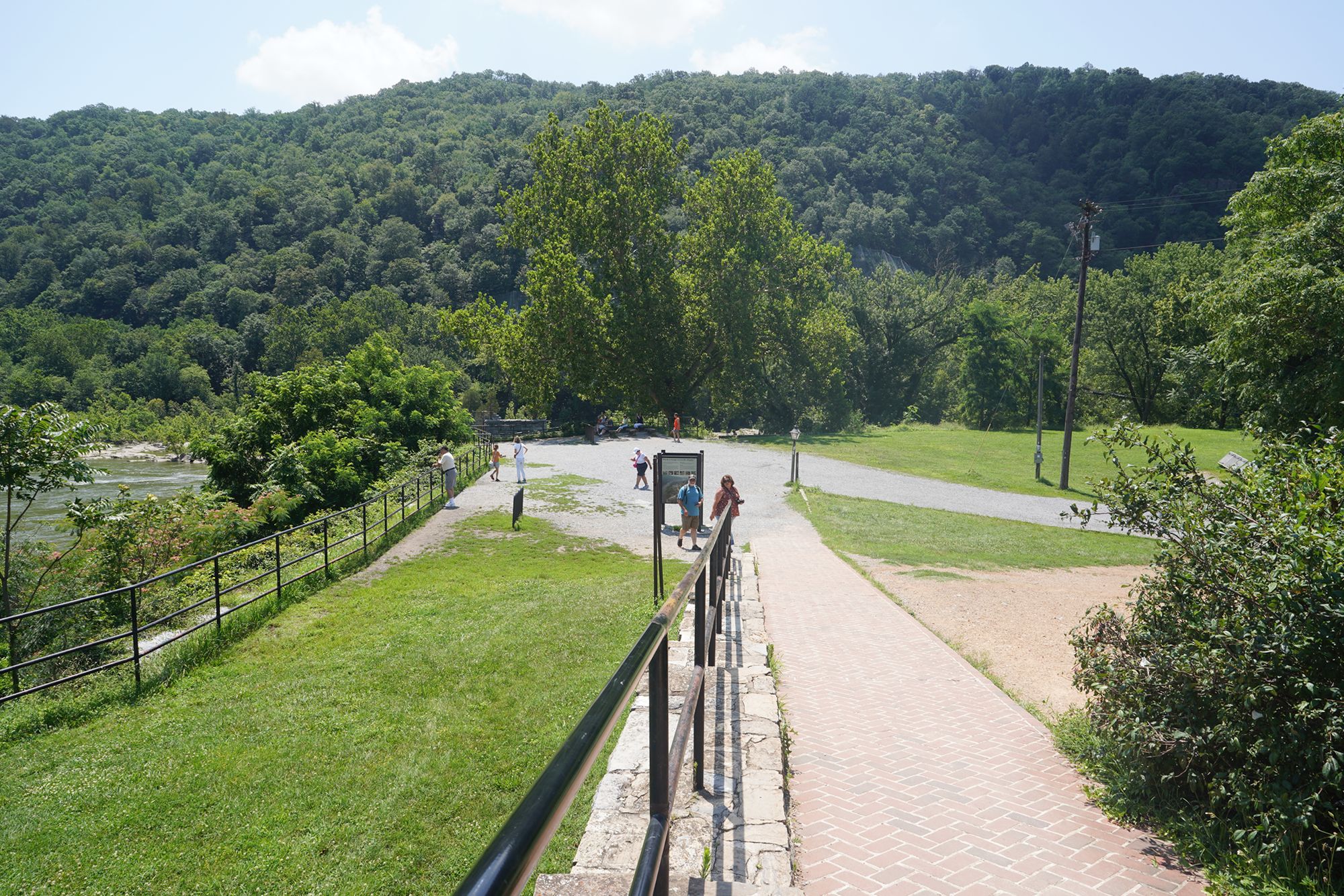 At Harpers Ferry, the Potomac River and the Shenandoah River meet at this location, forming a scenic confluence surrounded by steep, wooded hills.