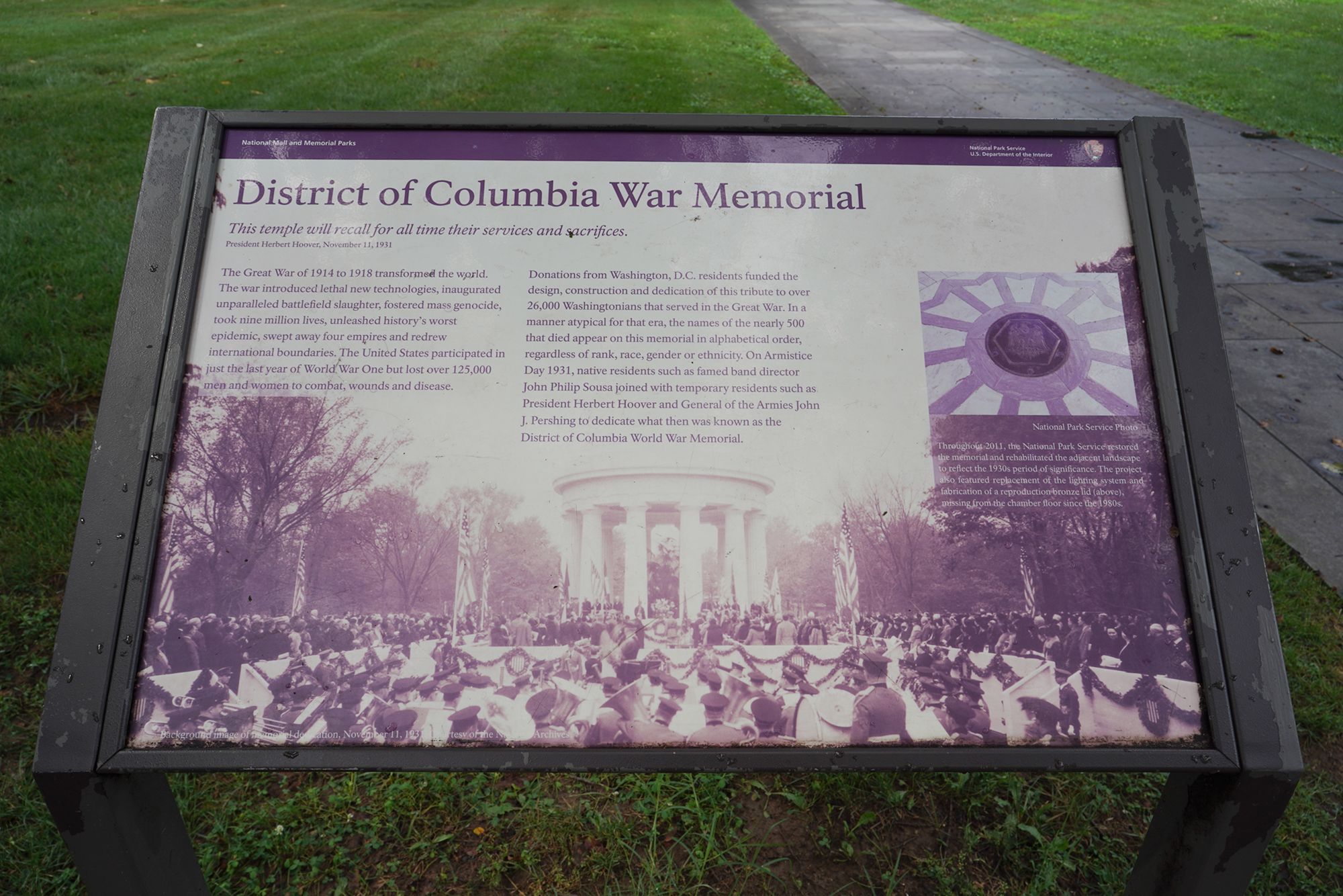 The District of Columbia War Memorial honors the residents of Washington, D.C. who served in World War I.