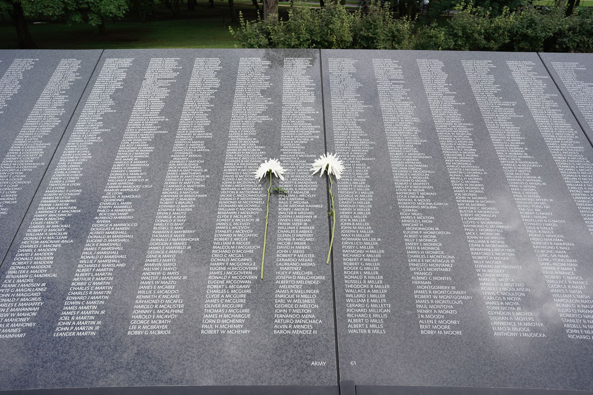 Inscribed on the walls are the names of more than 58,000 service members who died or went missing in action. The names are arranged chronologically by the date of casualty, rather than alphabetically, emphasizing the personal and continuous human cost of the war. Visitors often leave flowers, flags, and personal mementos at the base of the wall, turning the site into a living memorial.