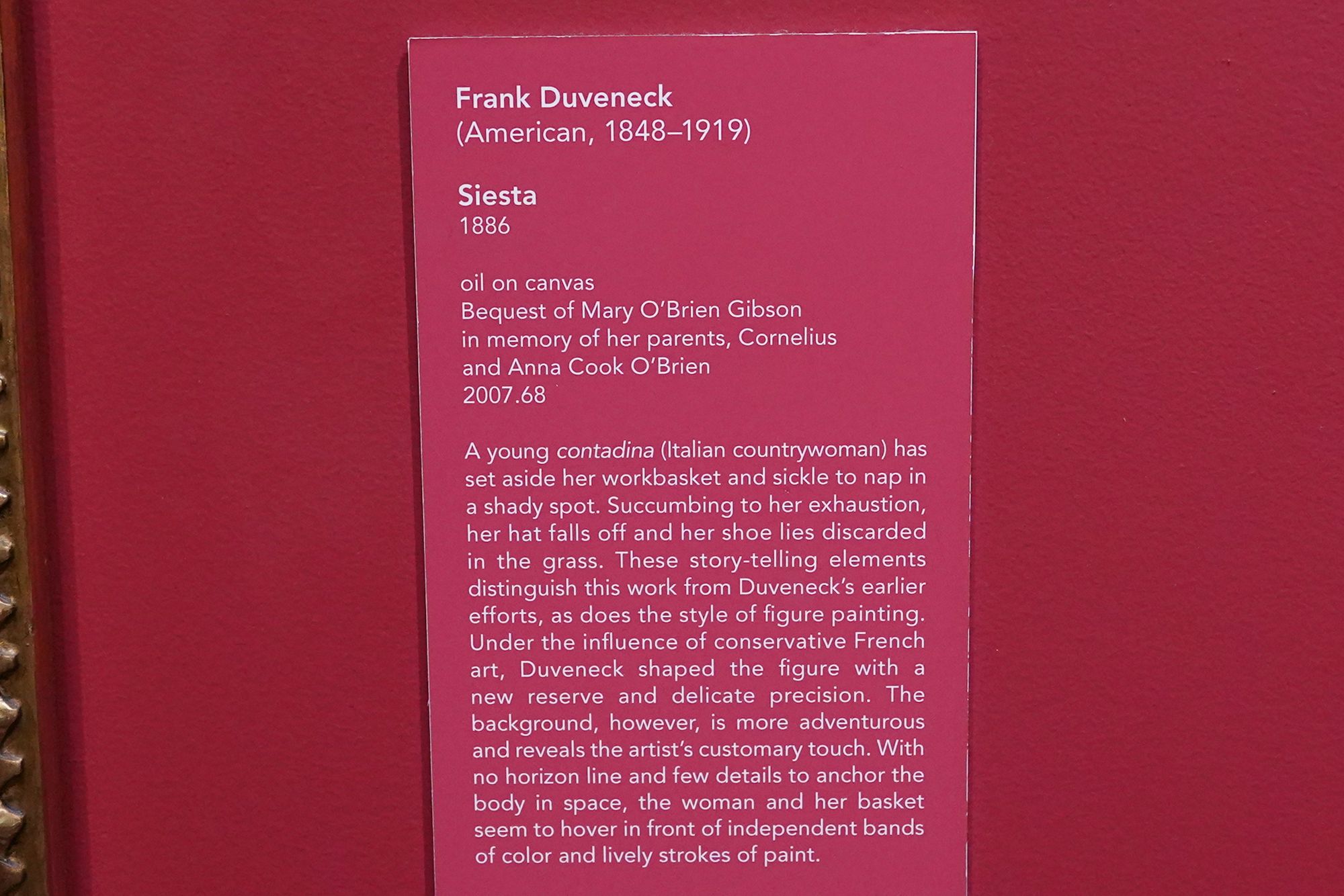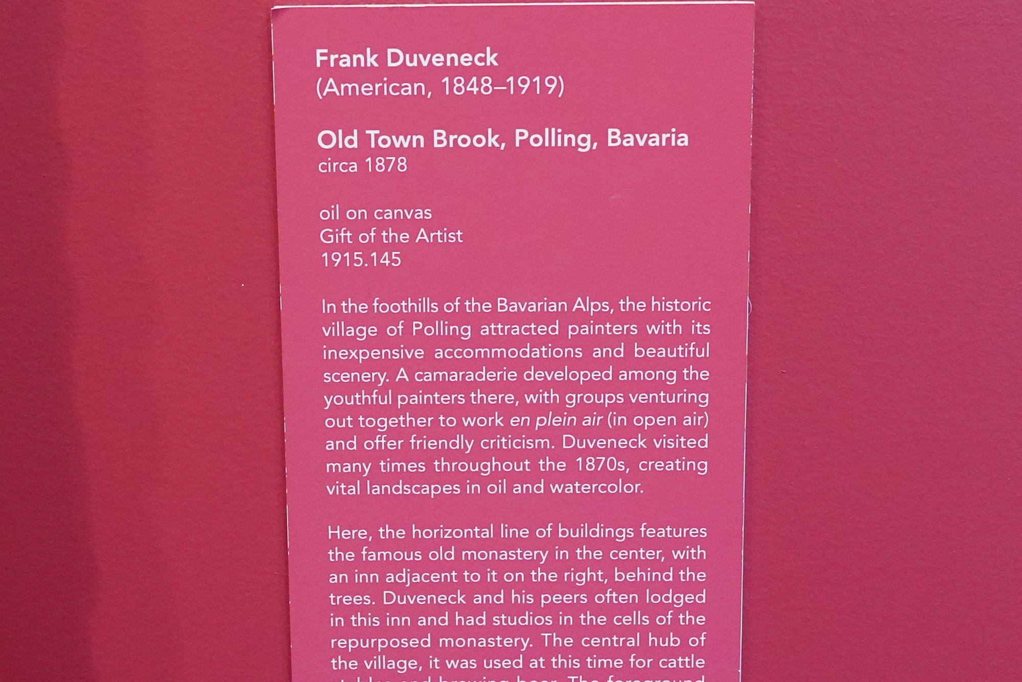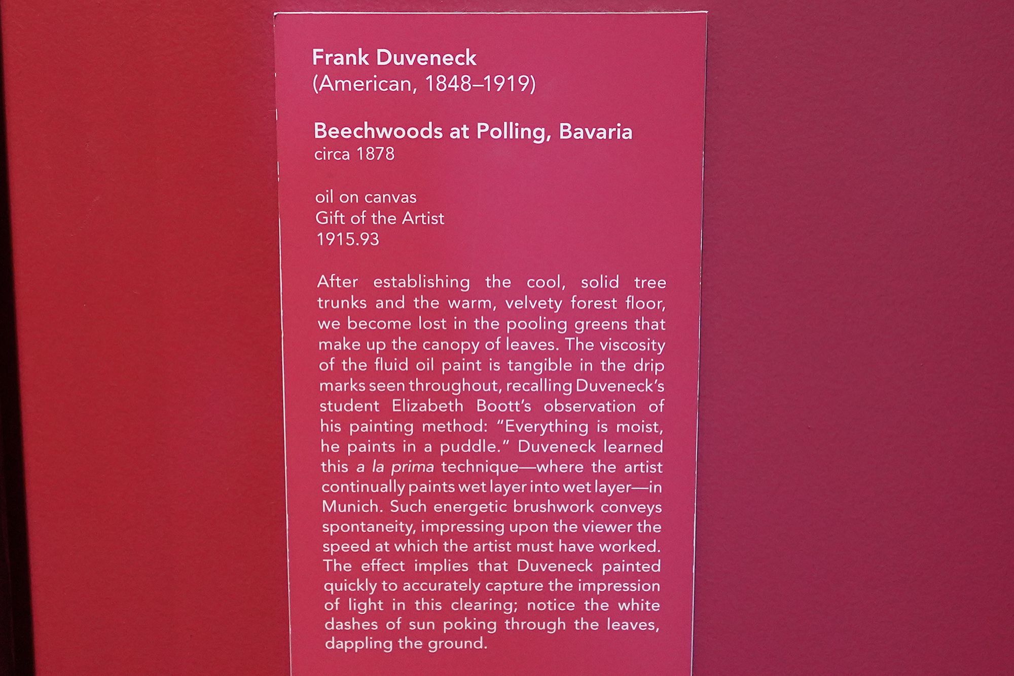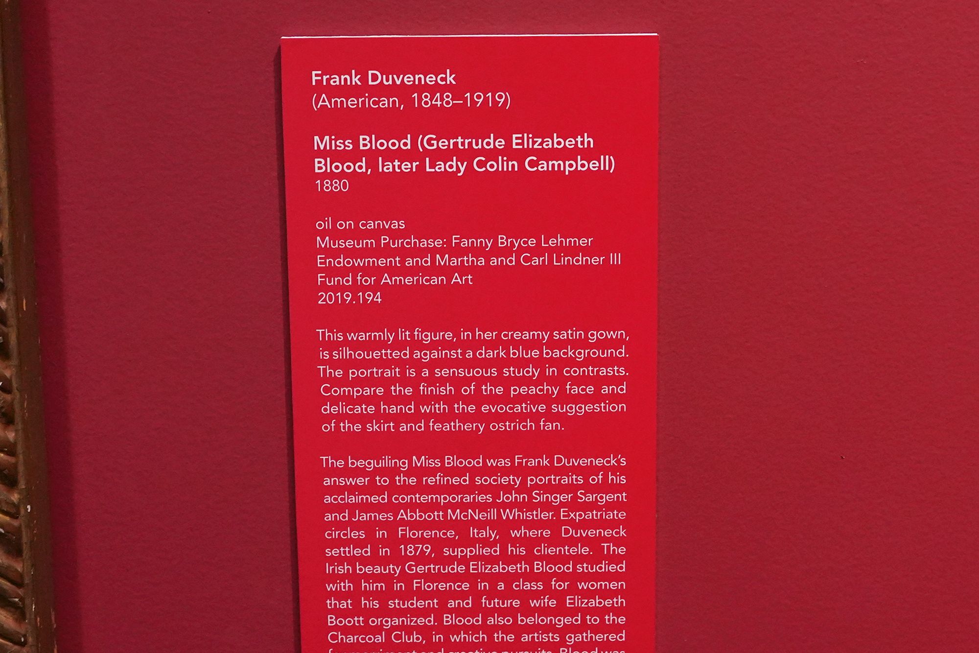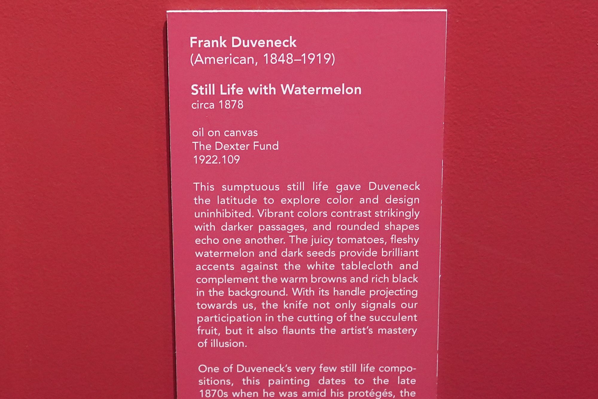 Trained in Munich, he became known for bold, expressive portraits and teaching. Duveneck influenced a generation of American artists and played a key role in establishing Cincinnati as an important center for late-19th-century American art.