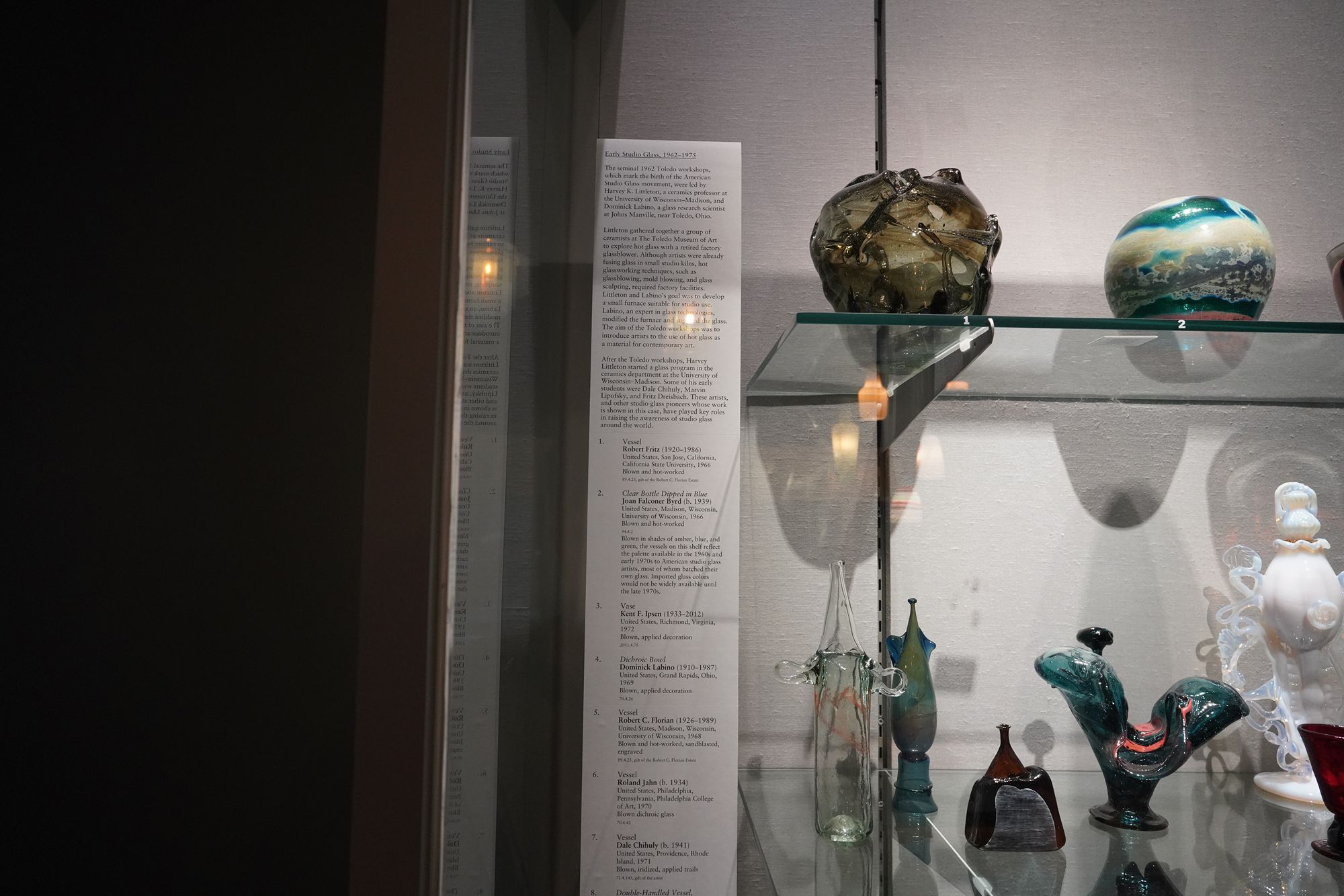 Studio glass began around 1960 when artists like Harvey Littleton and Dominick Labino developed small furnaces for personal use. Glassmaking moved from factories to individual studios, encouraging experimentation, sculptural forms, and glass as independent art rather than industrial product.