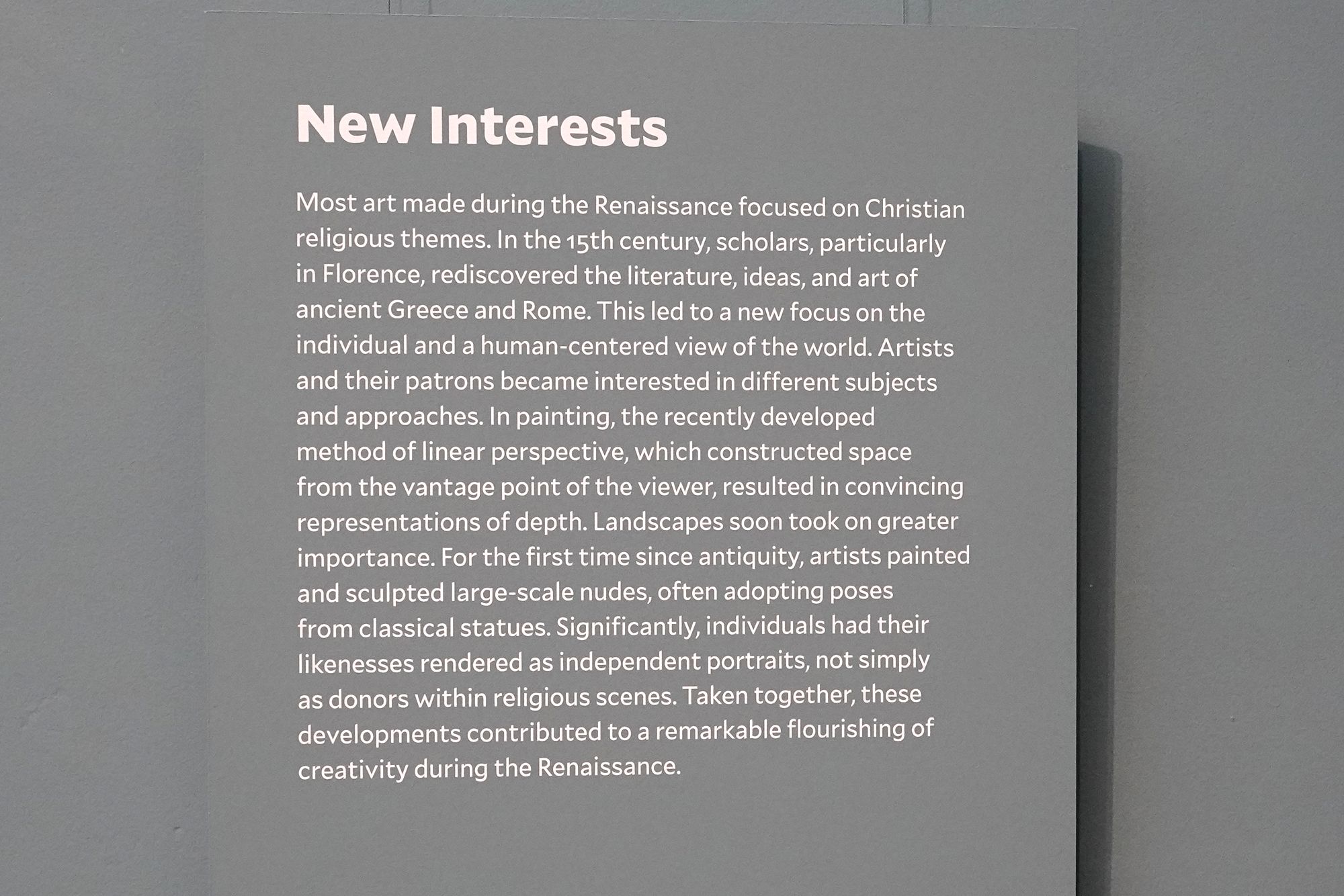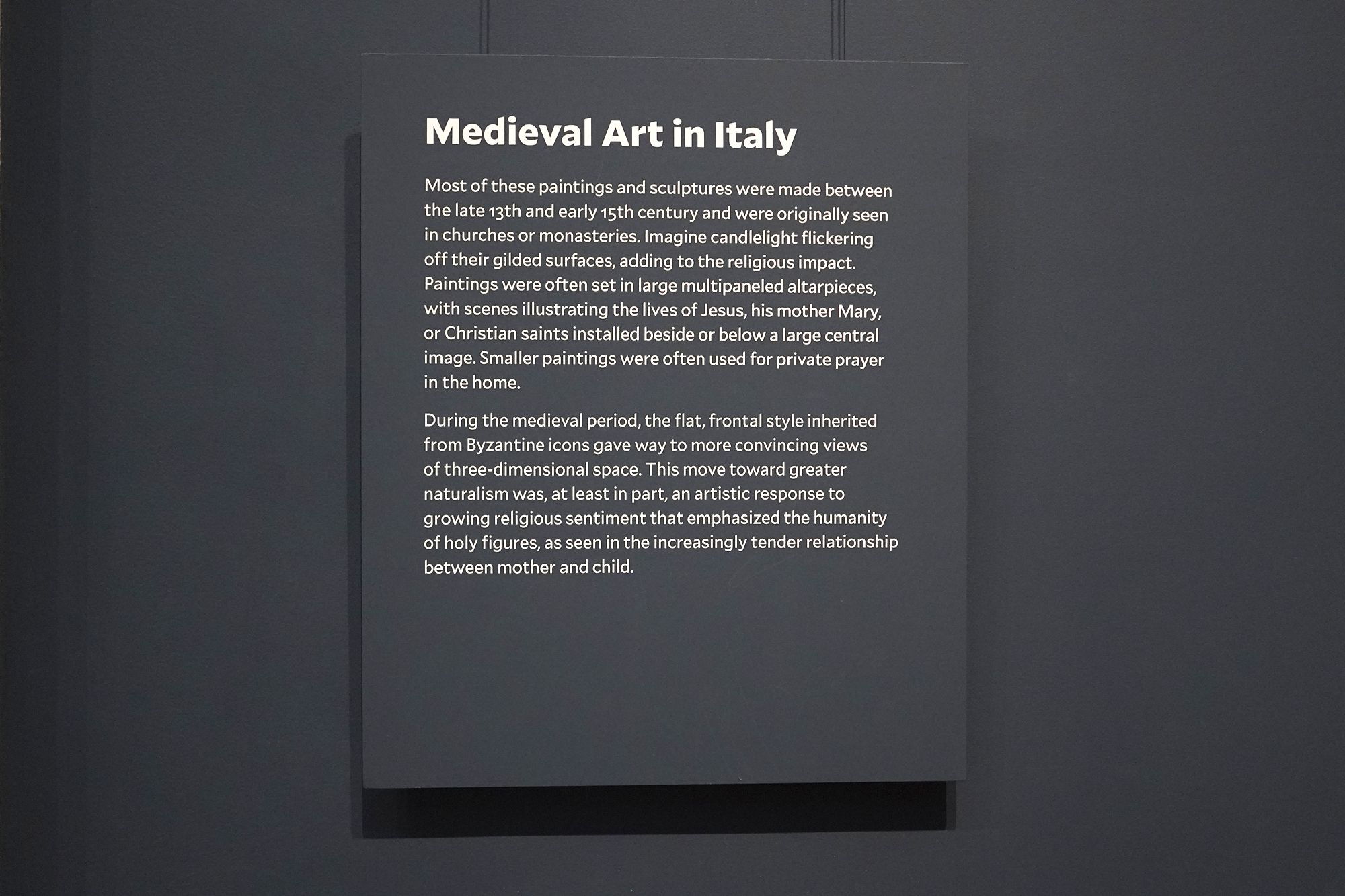 The Italian Art from 1200 to 1500 gallery at the National Gallery of Art traces the evolution from the medieval and Gothic styles to the dawn of the Renaissance. 1126