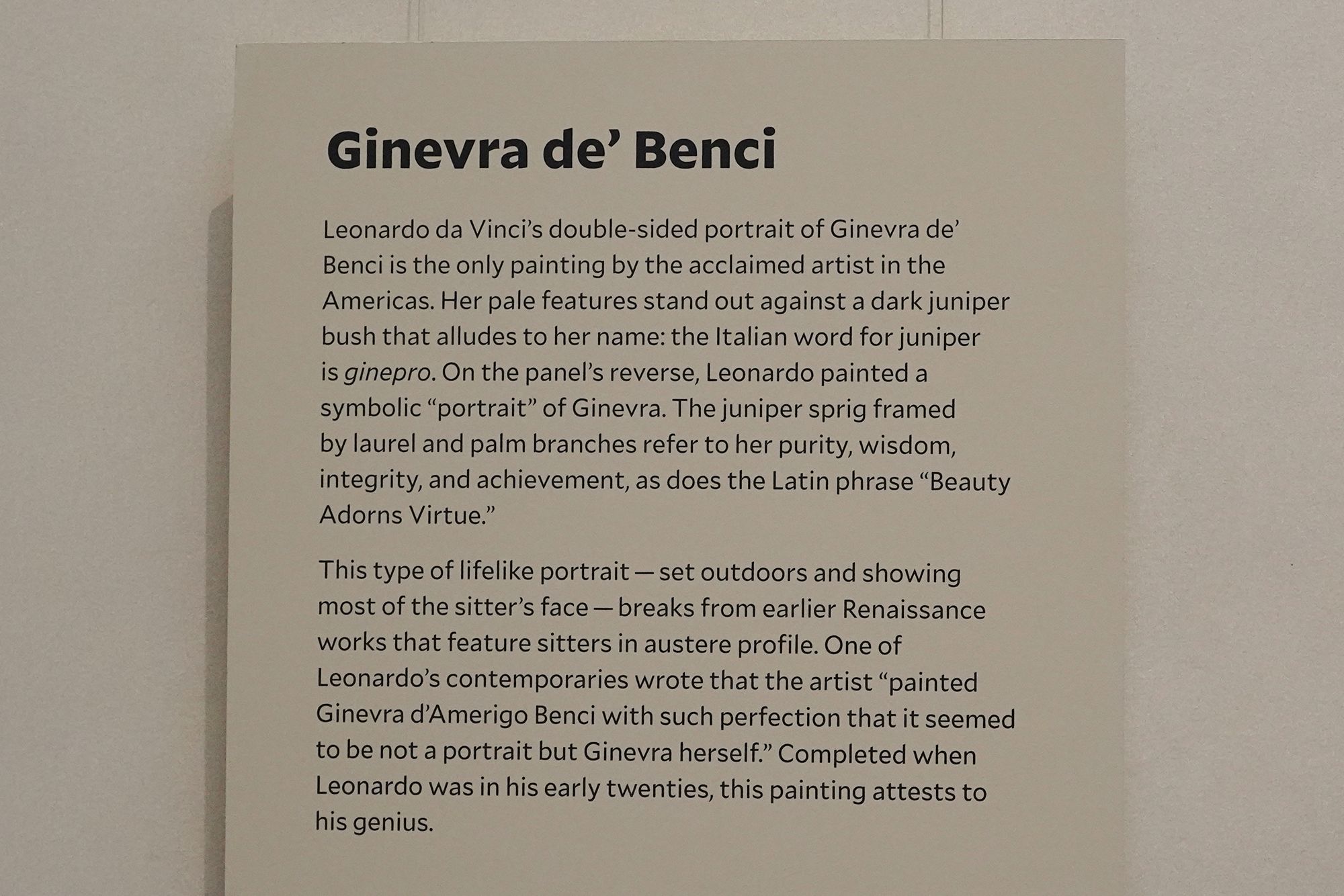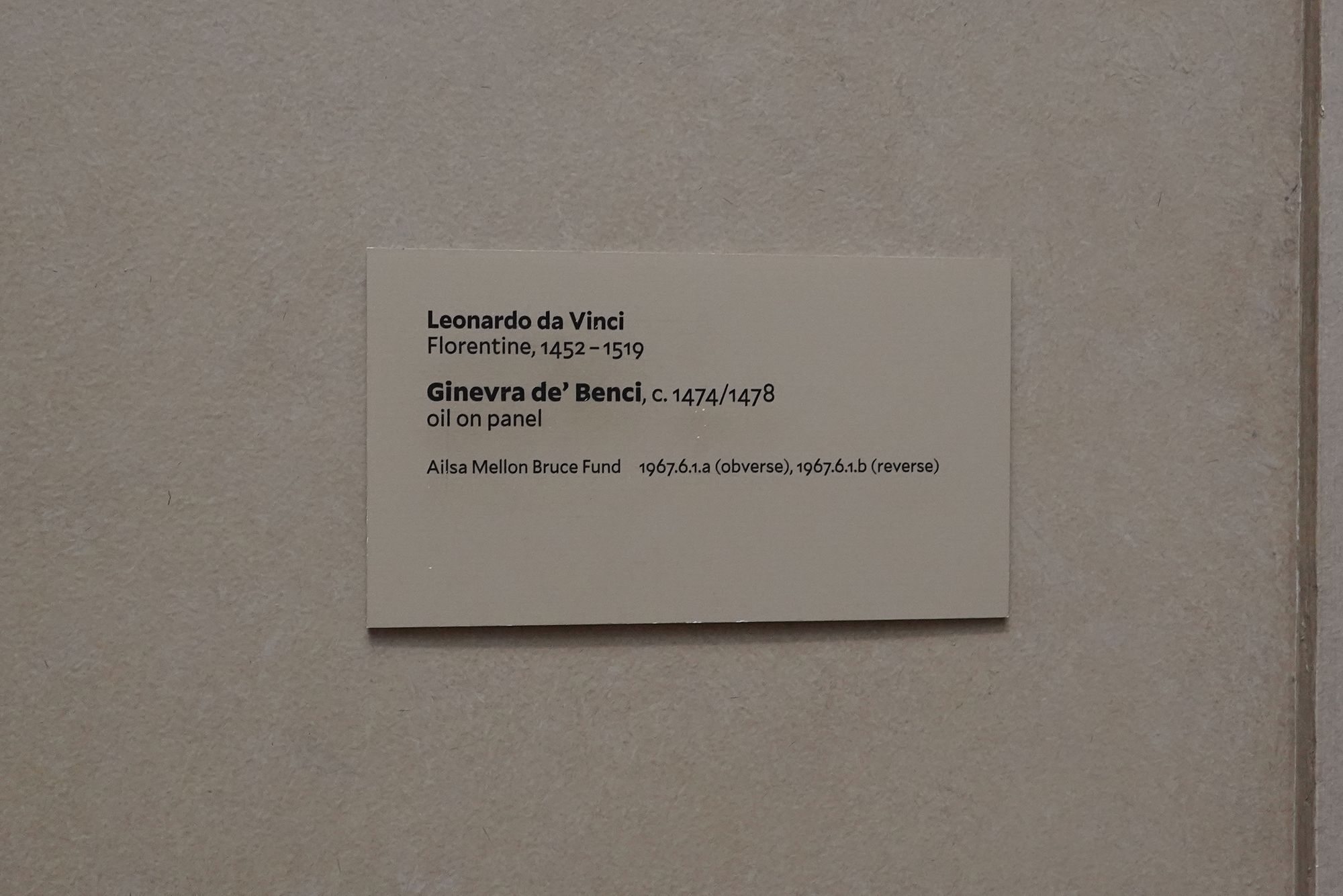 Ginevra de’ Benci is a portrait painted by Leonardo da Vinci around 1474–1478, and it is the only Leonardo painting in the Americas, housed at the National Gallery of Art in Washington, D.C.