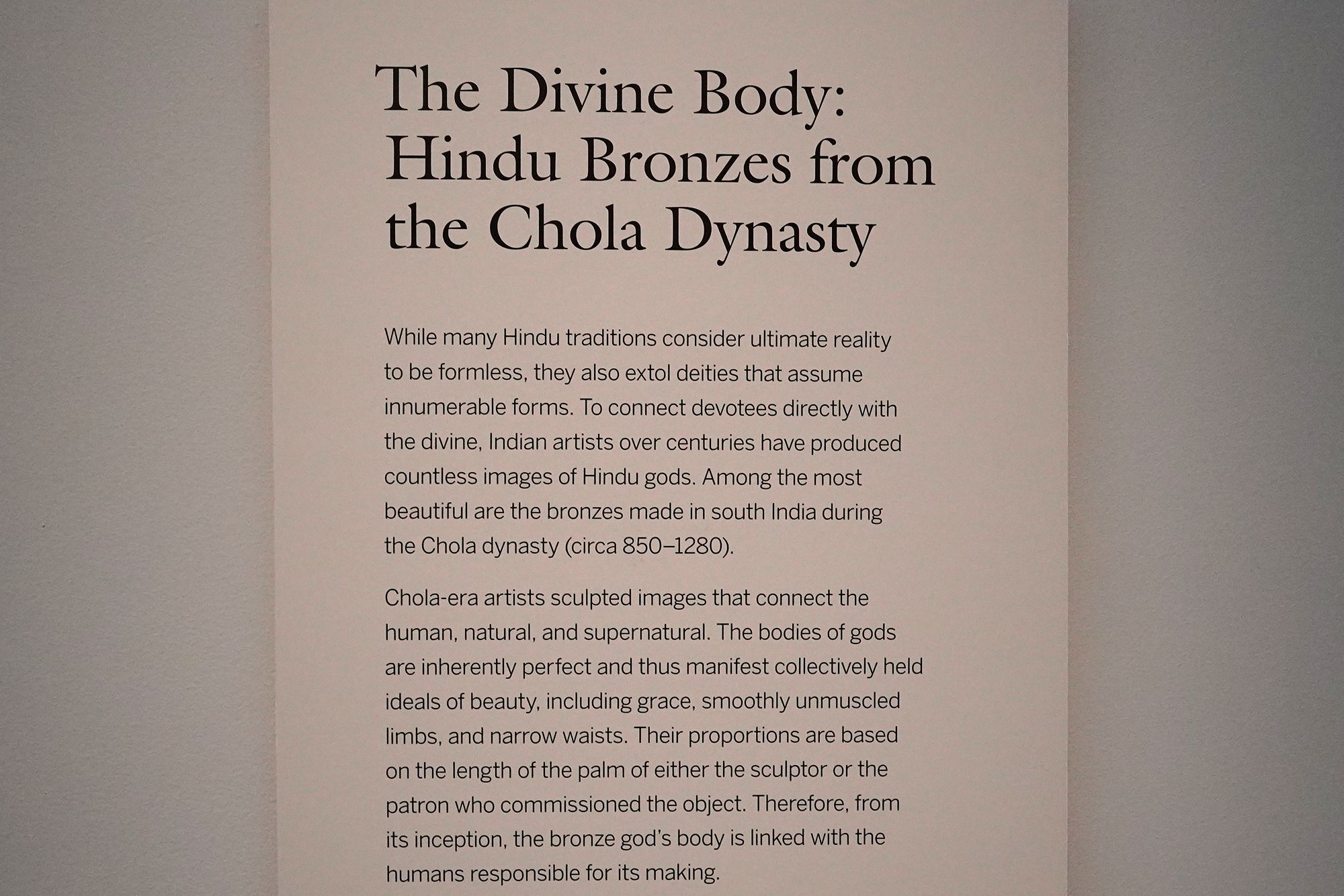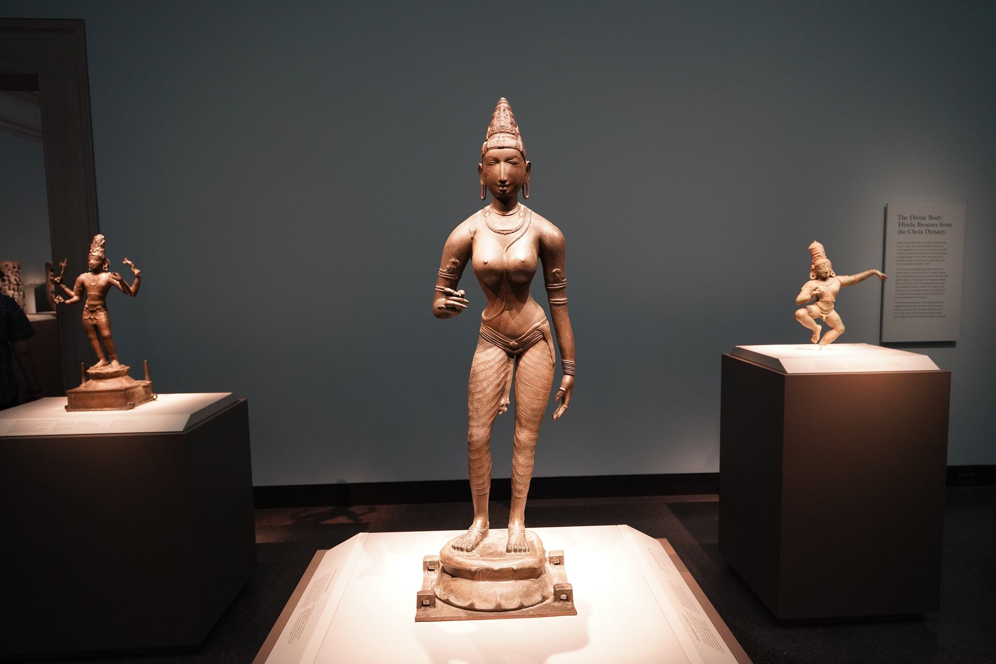 Divine Body explores how Hindu bronze sculptures from South India express the idealized forms of gods and goddesses. The exhibit highlights the elegance, movement, and spiritual presence found in Chola-period bronzes, showing how artists used the human form to convey divine power and sacred beauty.