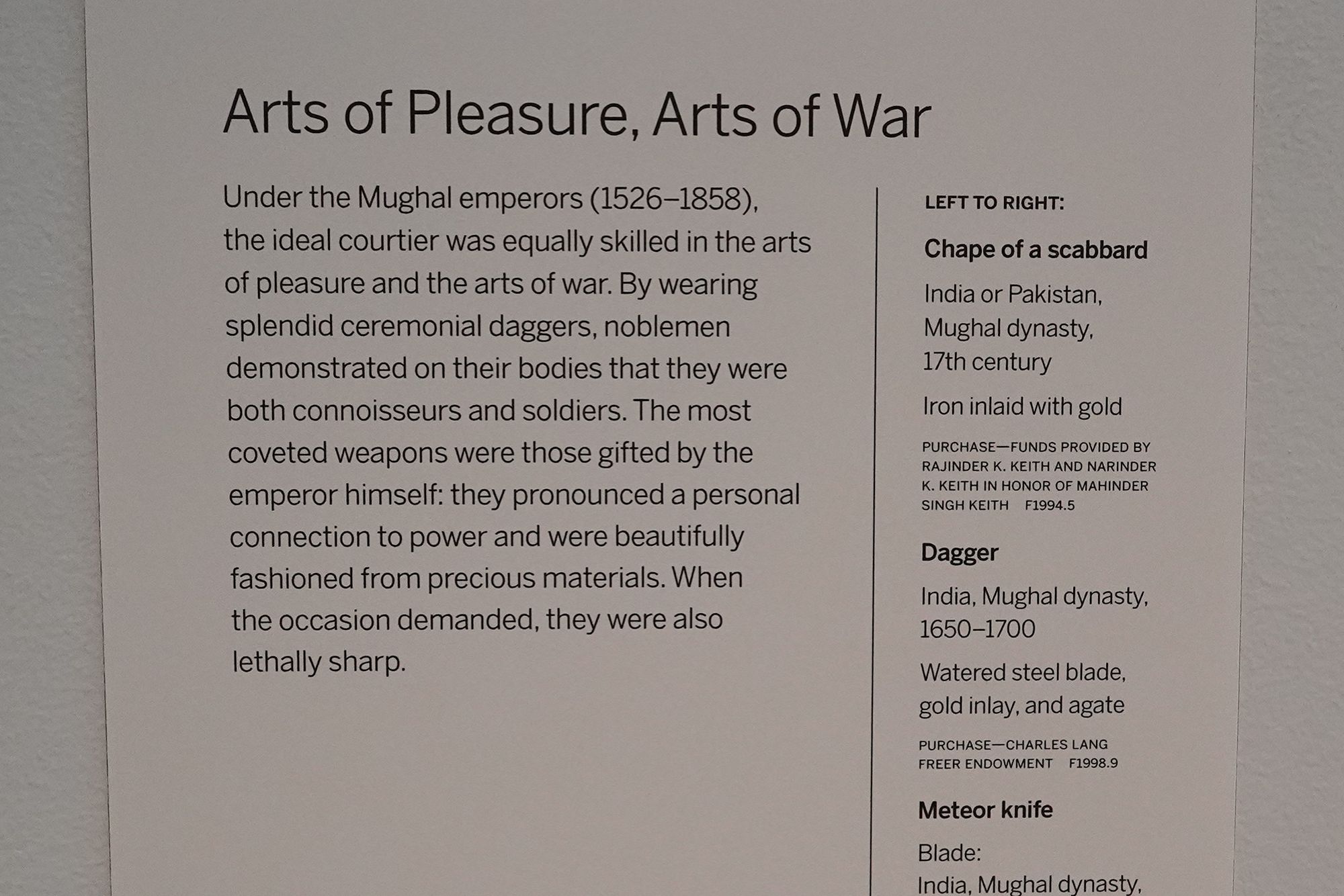Its galleries present artworks from East Asia, South Asia, Southeast Asia, Central Asia, and the Islamic world, spanning several thousand years of history. Visitors can see ancient sculpture, religious figures, Buddhist and Hindu temple art, and finely crafted bronzes.