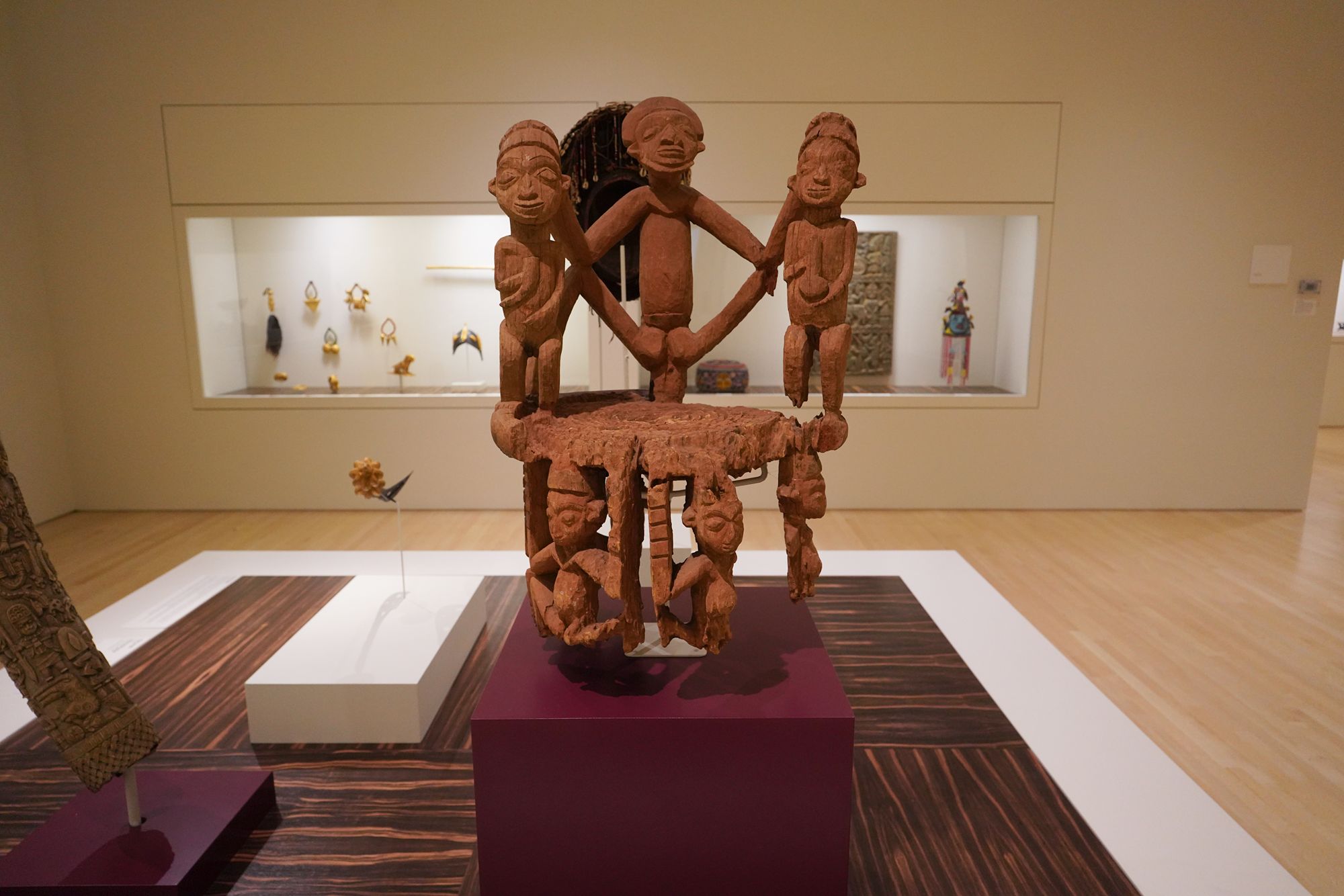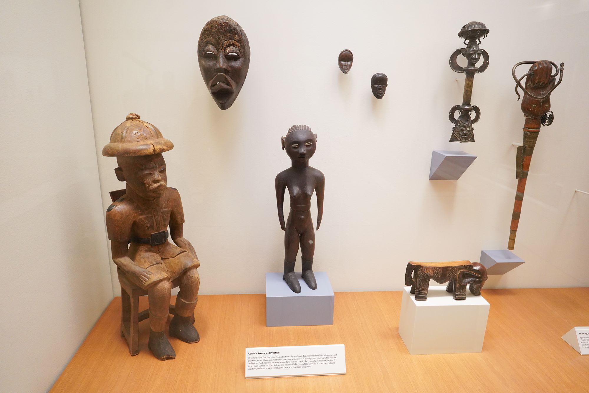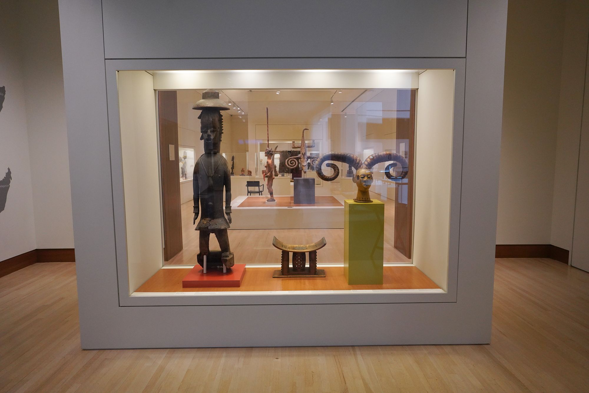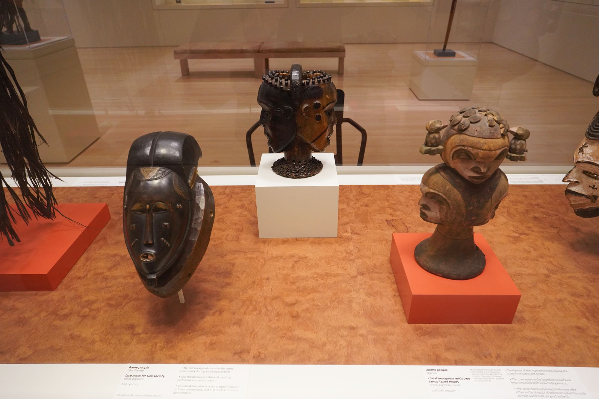 Newfields presents Asian art from East, South, and Southeast Asia alongside African masks, figures, and ritual objects, highlighting religious beliefs, social structures, craftsmanship, and artistic expression across diverse cultures and historical periods.