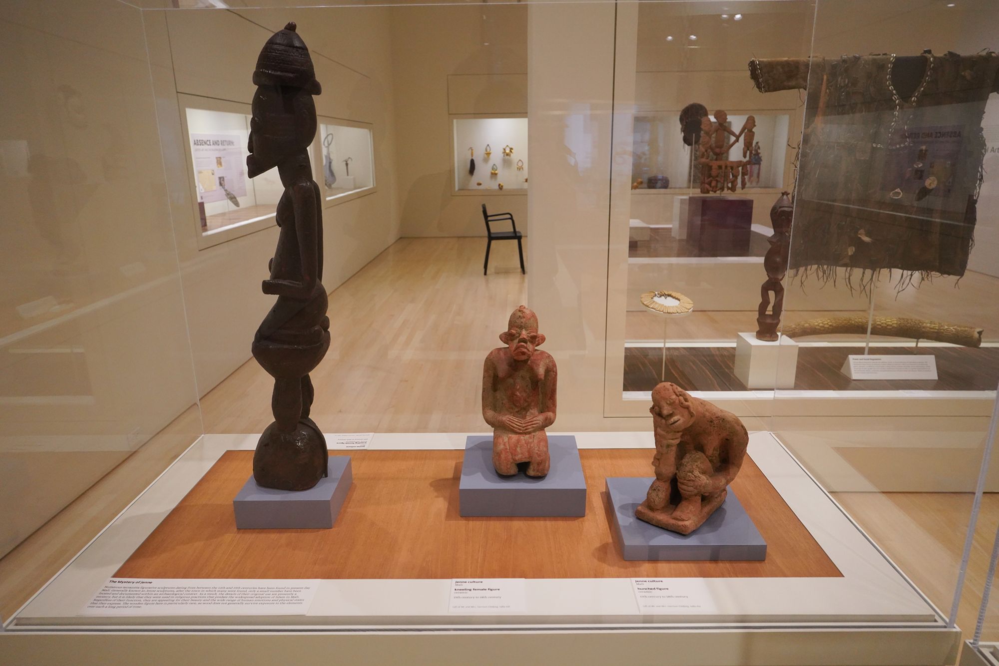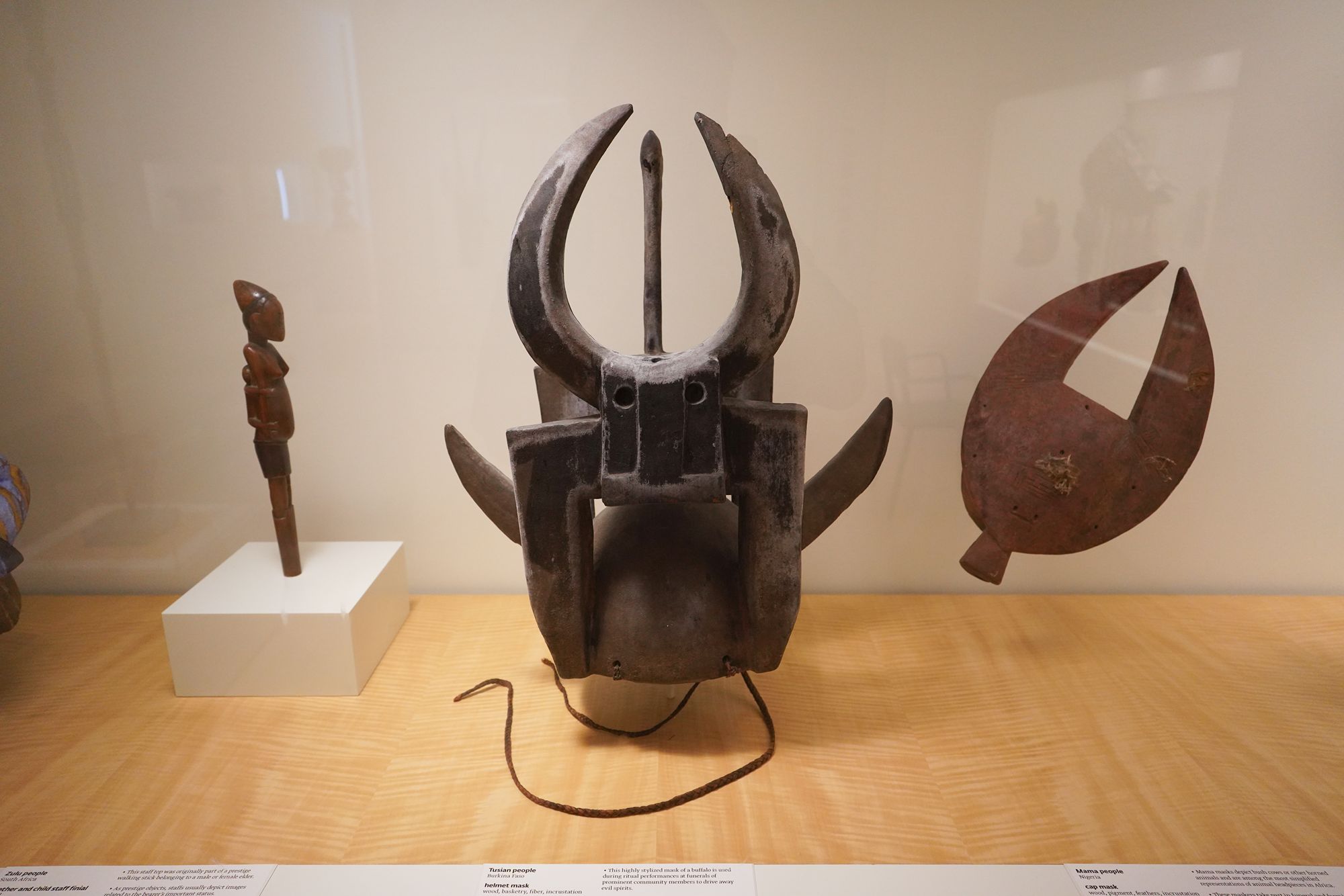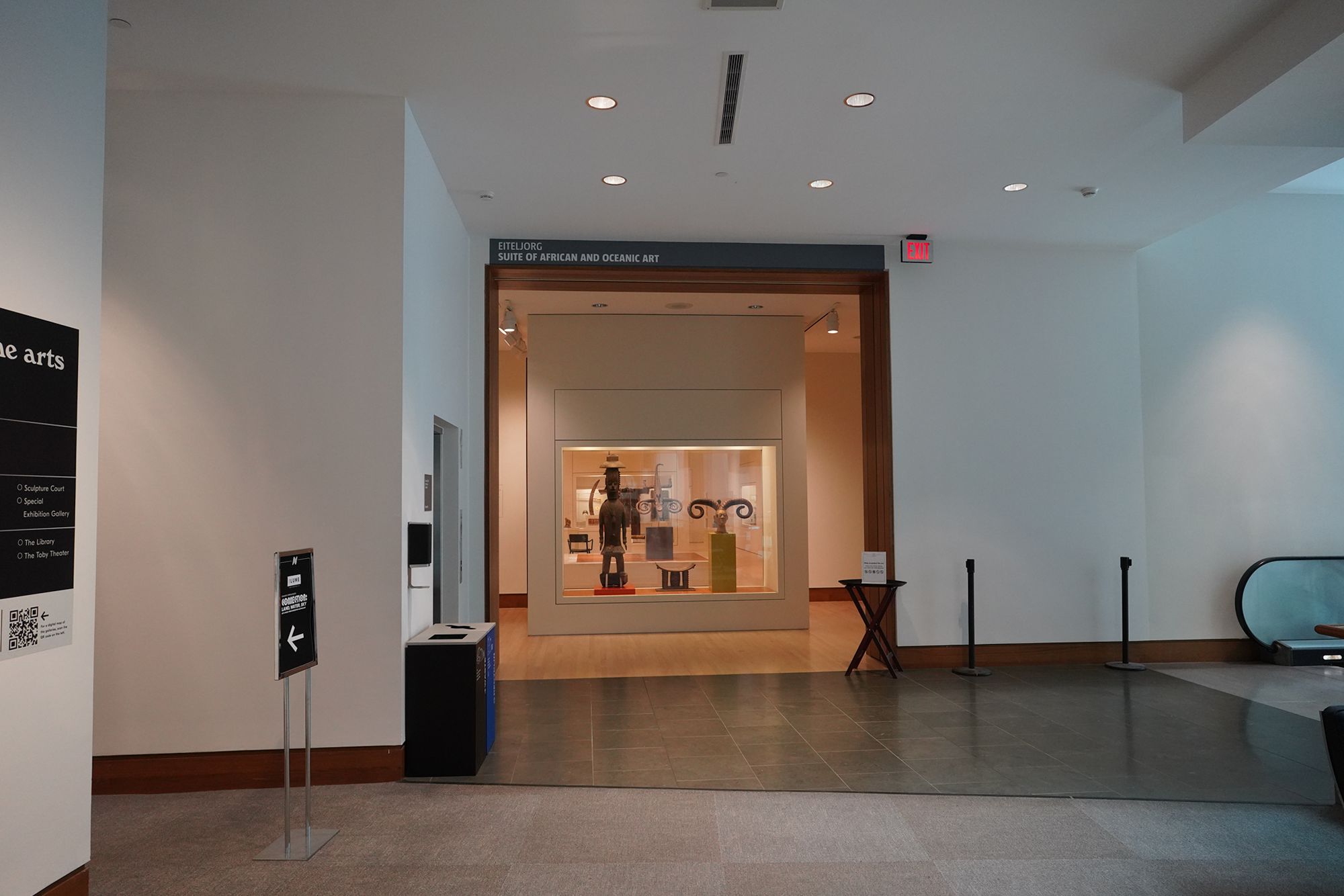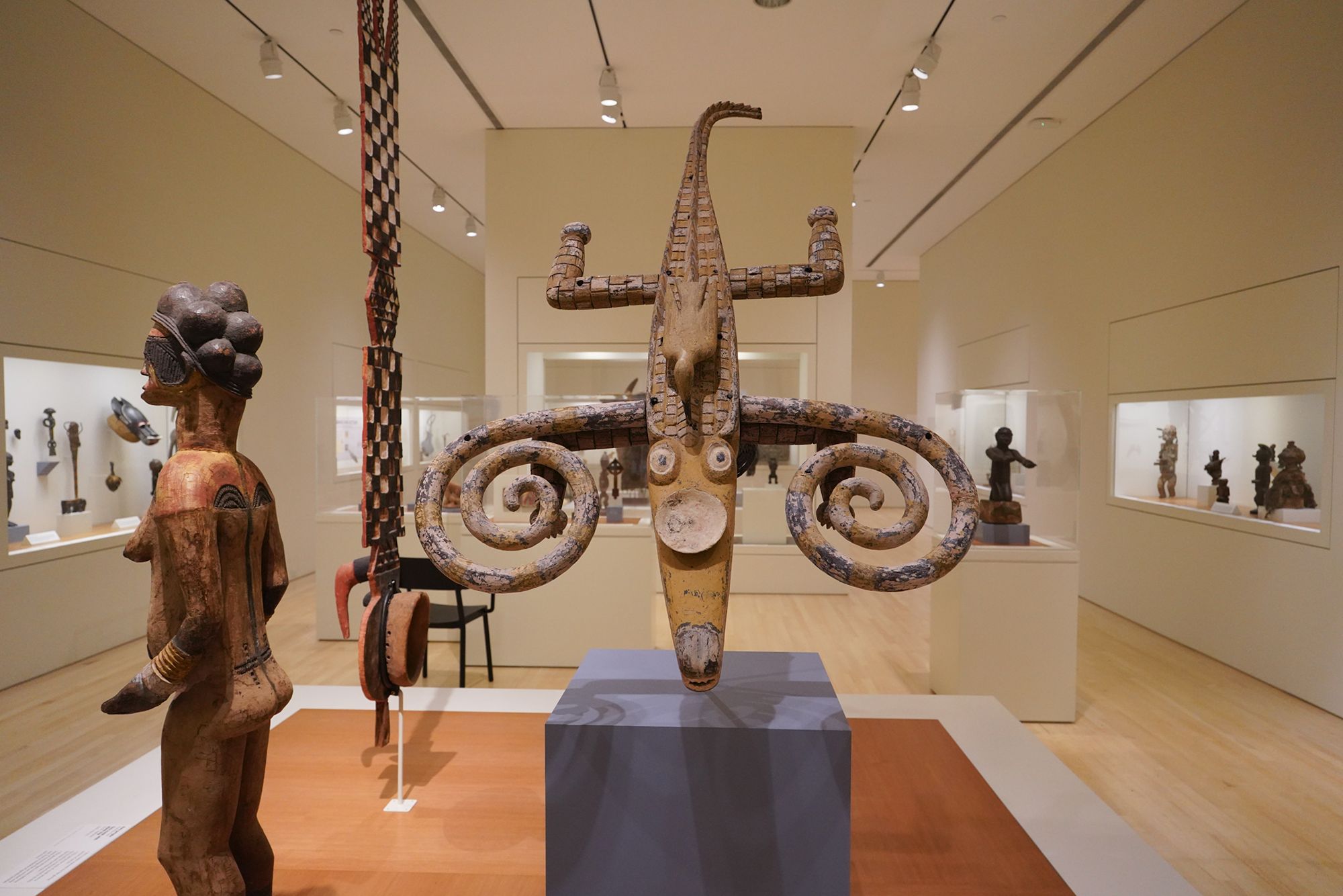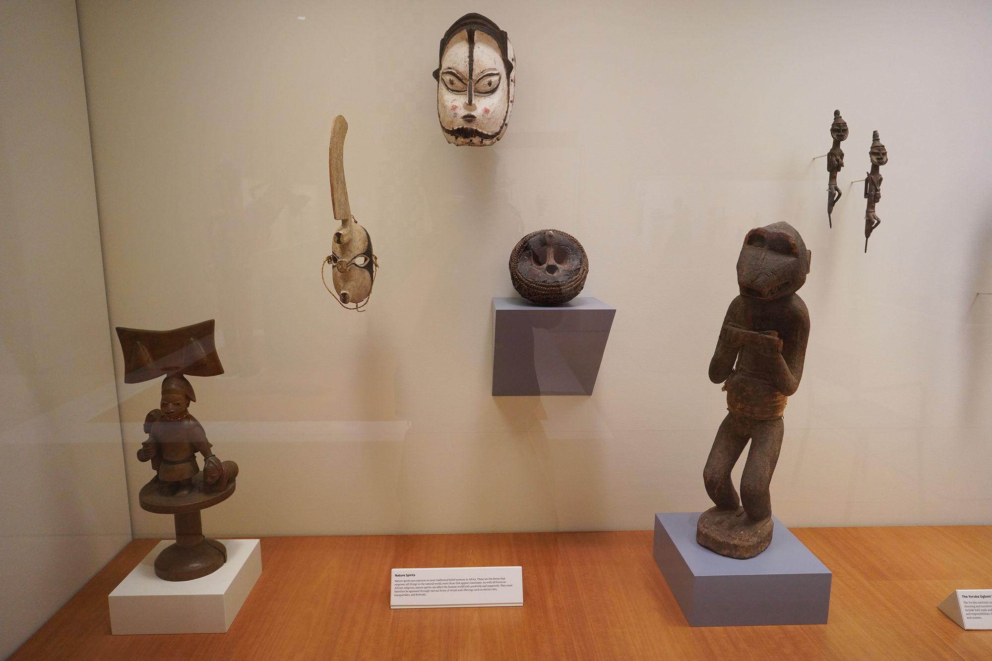 Newfields presents Asian art from East, South, and Southeast Asia alongside African masks, figures, and ritual objects, highlighting religious beliefs, social structures, craftsmanship, and artistic expression across diverse cultures and historical periods.