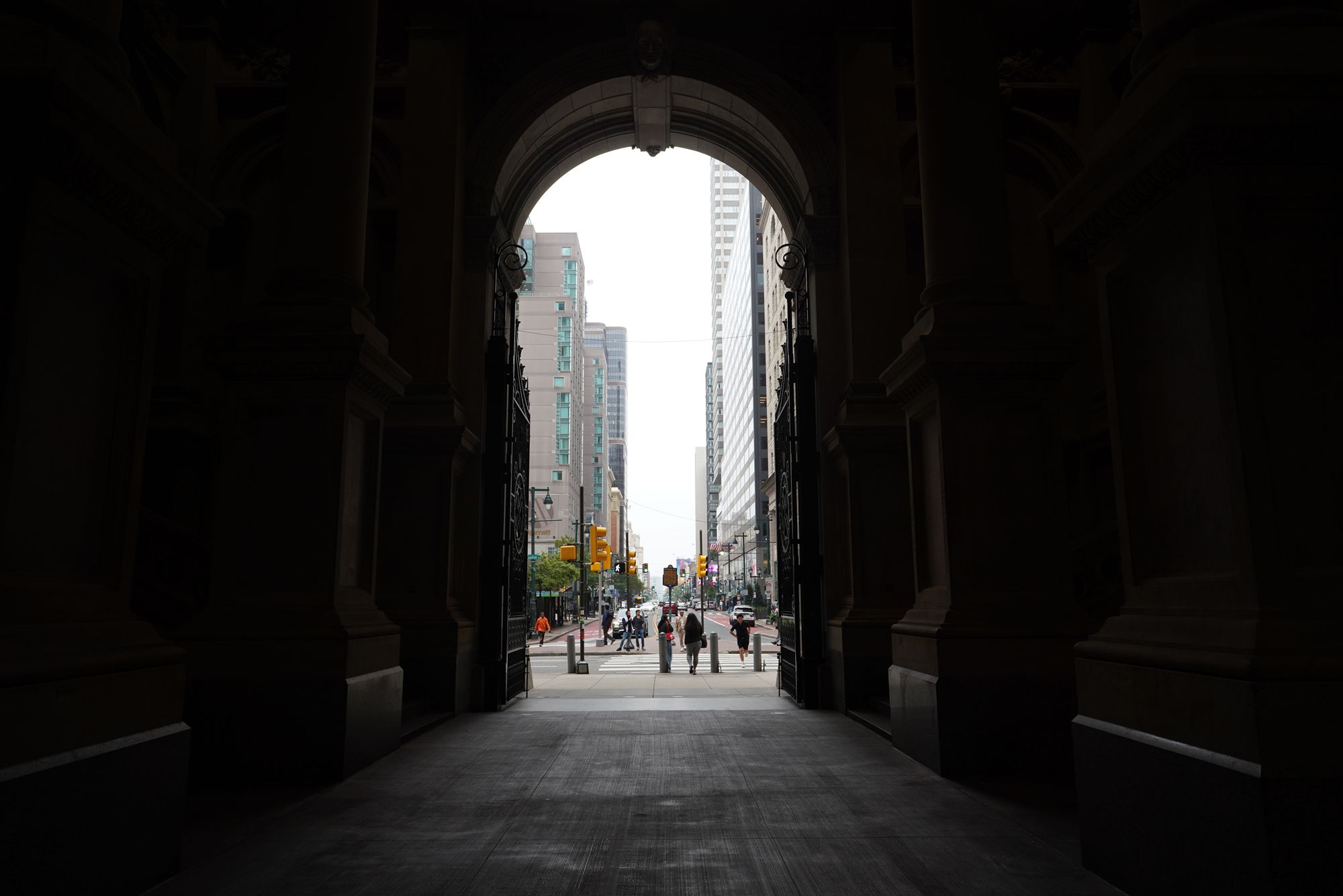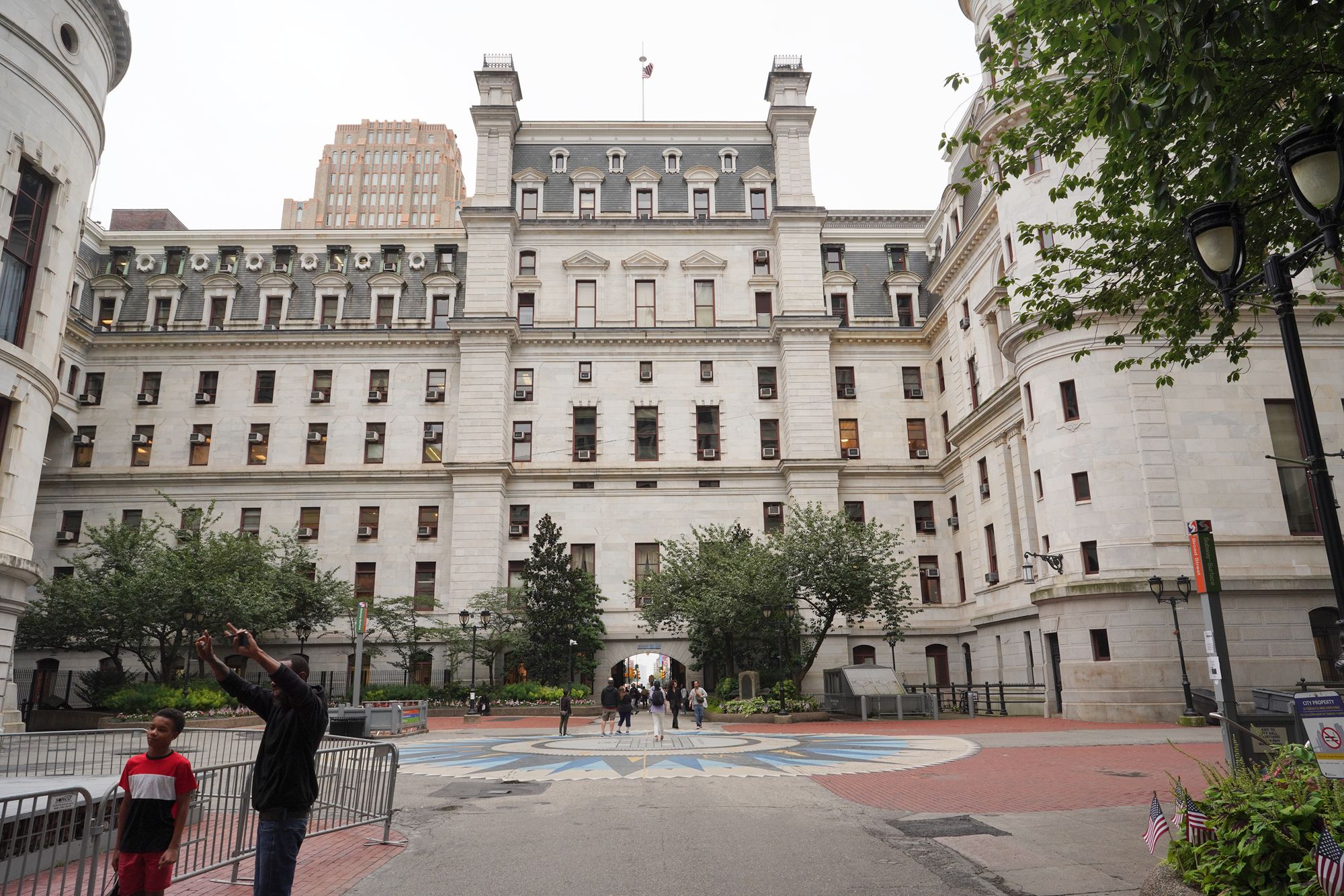 I walked through one of the arched tunnel entrances of City Hall, emerging into an open plaza at its center.